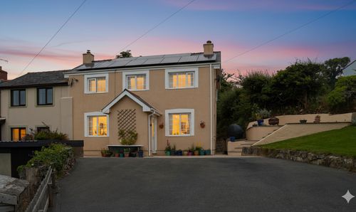 Front aspect with extensive views over Aberaeron, the sea and lane.