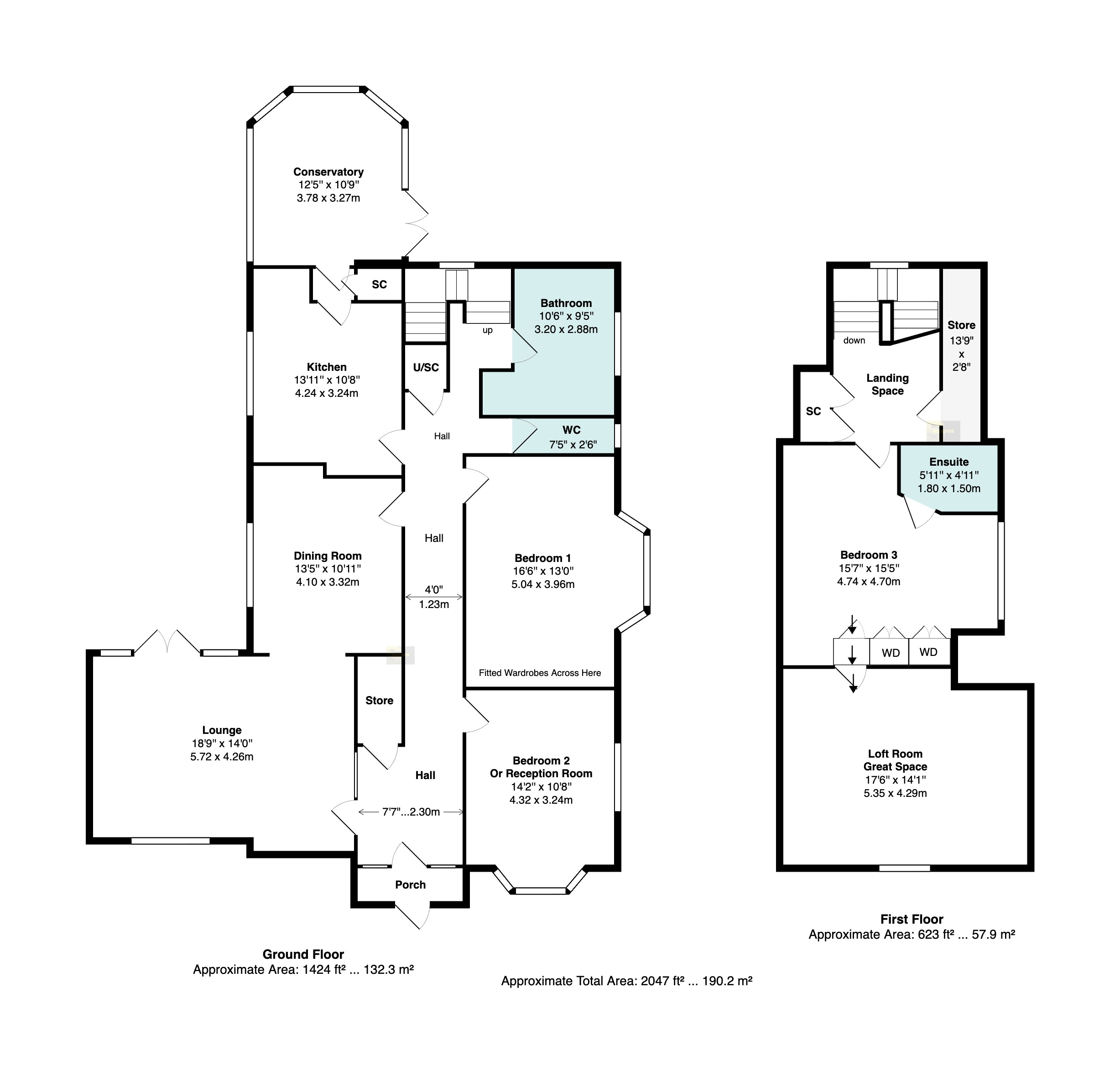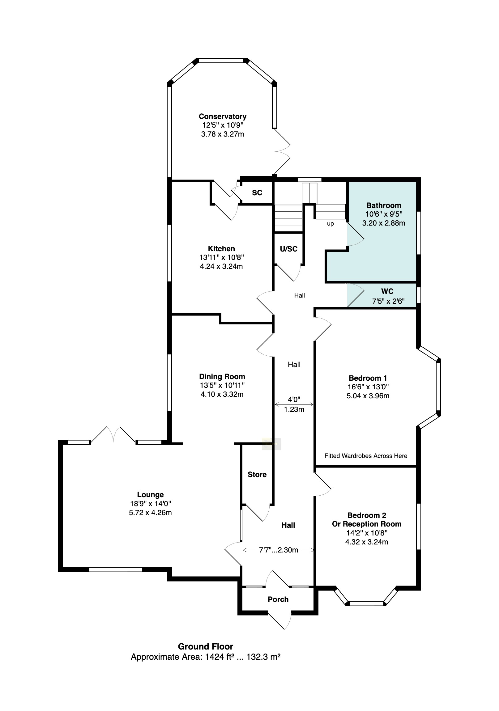 In brief the accommodation has: an entrance porch, leading into the impressive 44ft long hallway, which runs from the front to the rear of the accommodation. Off the hall, you can access the large 19ft+ lounge, which leads into the dining room. The dining room can also be accessed via the hallway, and adjacent to the dining room is the kitchen which leads into the conservatory. There are several storerooms positioned around the ground floor space, and on the opposite side of the hall to the reception areas just described, you have what was 2 large double bedrooms, one has been used as a home office and sitting room. Serving the ground floor space there is a spacious bathroom and extra separate WC.