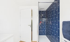 The modern bathroom features a walk-in double shower, WC and hand basin—creating a fresh, calming space to start or end your day.