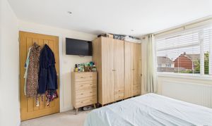 Carpet flooring, Velux window, walk in storage cupboard (housing boiler)