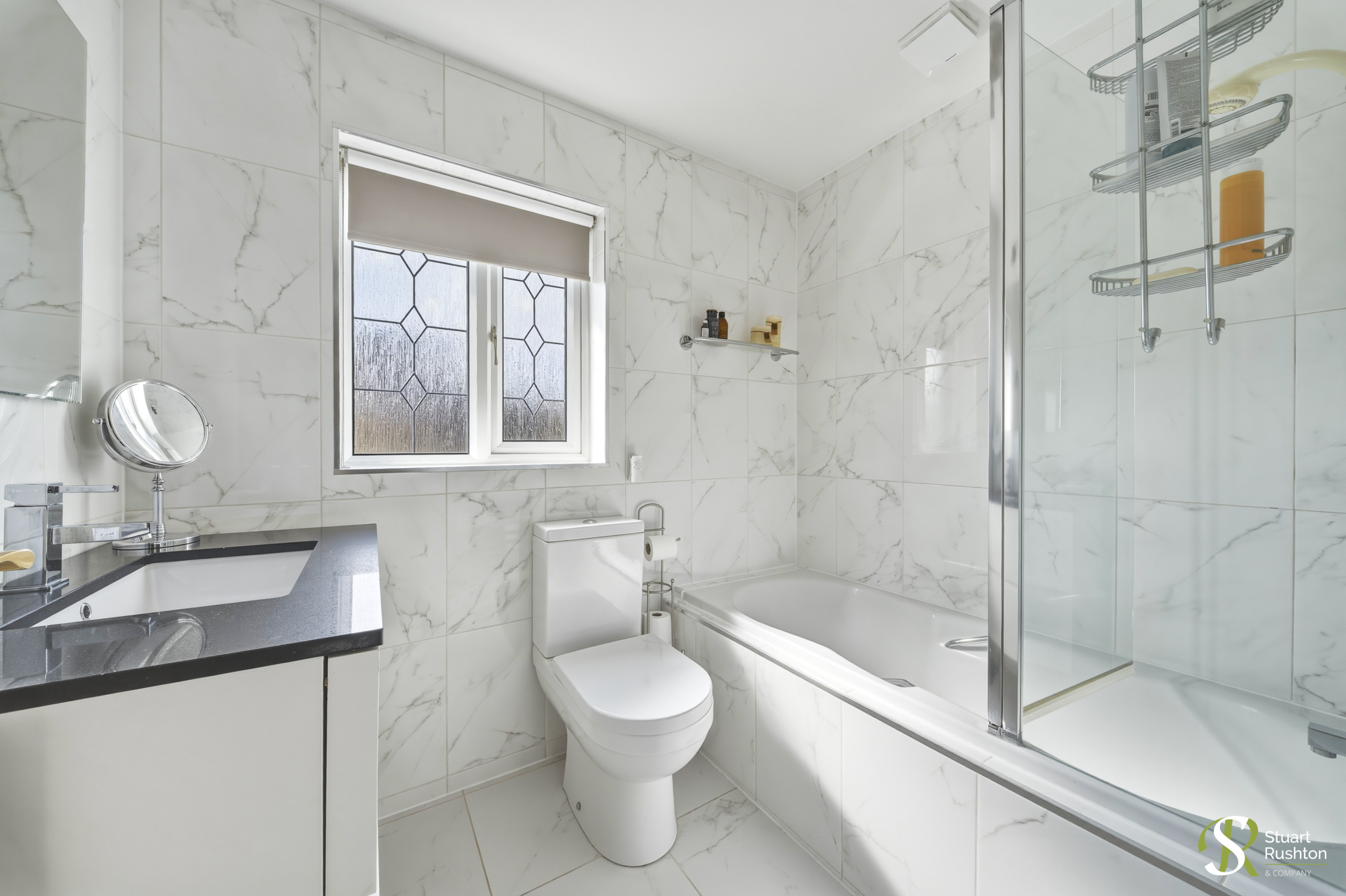 To the first floor, there are two well-proportioned double bedrooms, both benefiting from fitted wardrobing, alongside two stylish and contemporary bathrooms. The loft has been boarded for additional storage space.