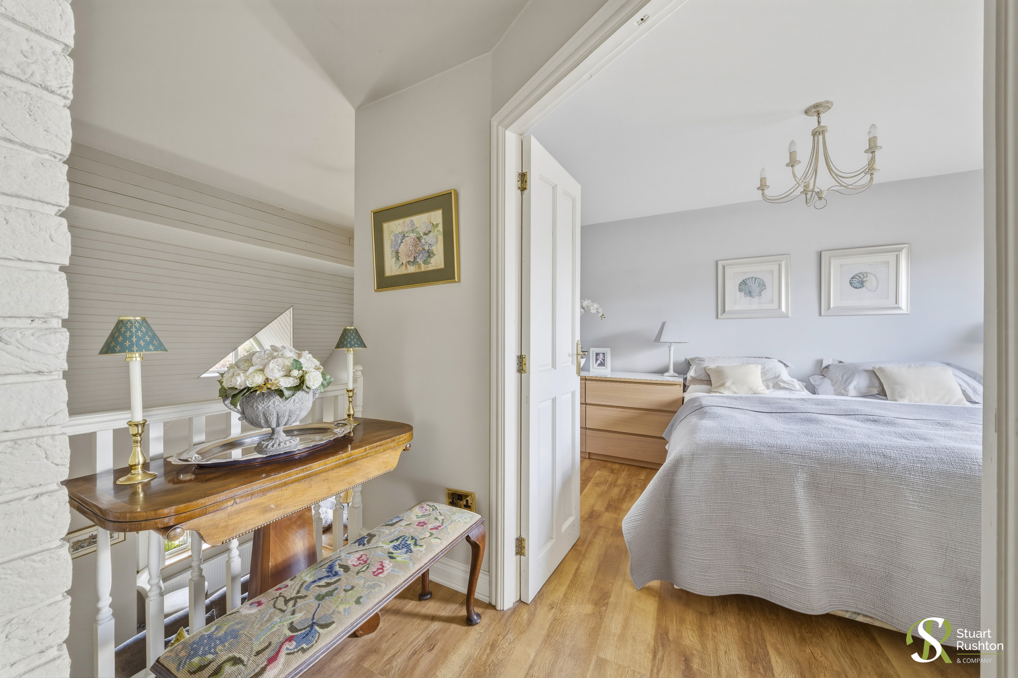 The accommodation is light-filled and flows effortlessly, offering a semi-open plan layout that is perfectly suited to modern living and ideal for those looking to downsize without compromise. The ground floor is particularly impressive, boasting three versatile reception rooms, a generous dining kitchen, a separate study, and a utility area with downstairs WC. The flexible layout also provides the option to utilise one of the reception rooms as a ground floor bedroom if required.