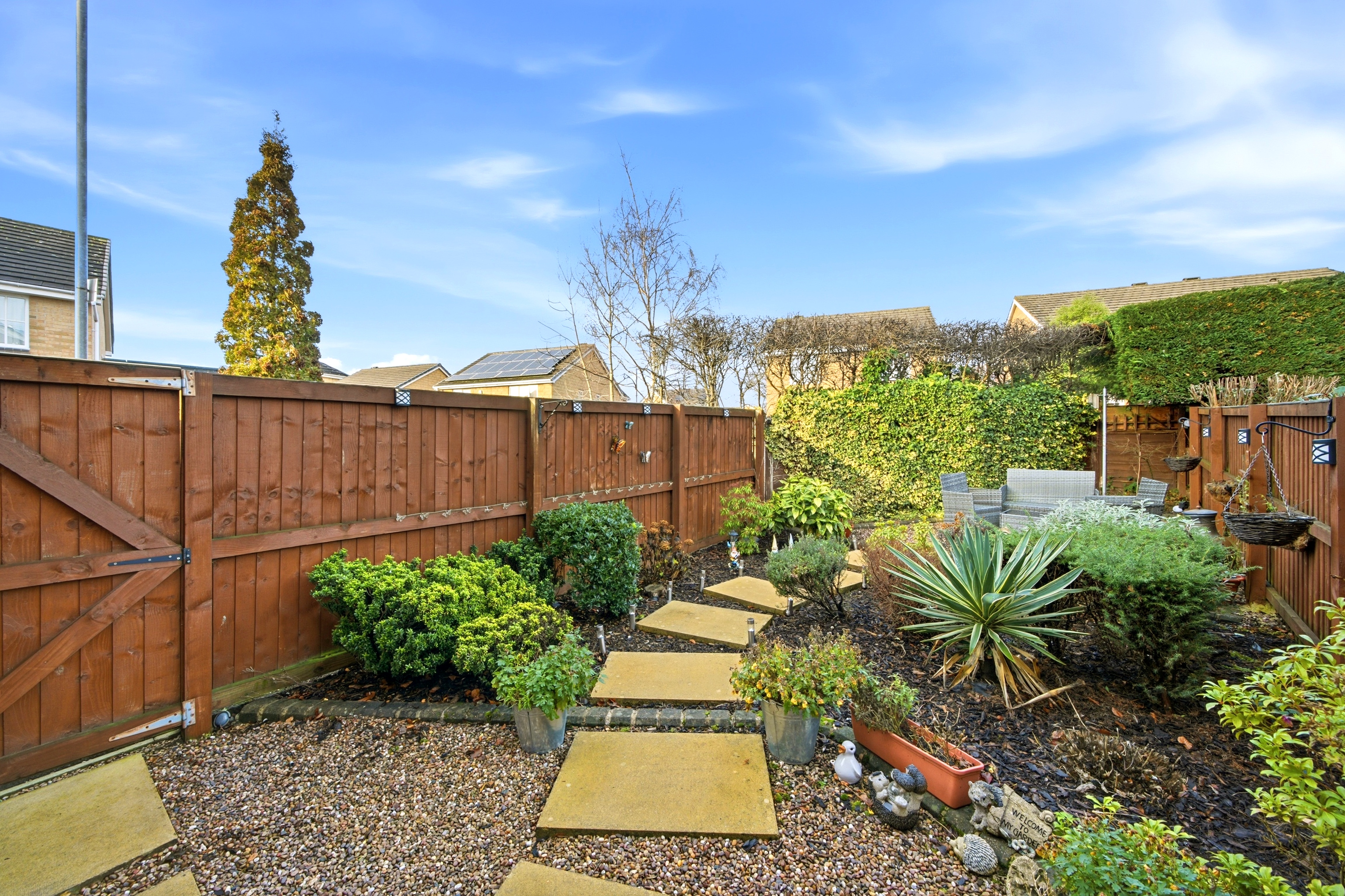 To the front of the property there is an open plan lawned garden, planted shrubs and a flagged pathway giving access to the front door, to the left hand side of the driveway there is a small area with planted trees and shrubs whilst the rear garden is enclosed and offers a good degree of privacy and designed to be low maintenance with flagged pathway, gravelled patio and planted trees and shrubs. To one side a timber hand gate opens onto the enclosed section of the driveway. There is also an outside cold-water tap.