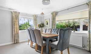 This beautifully presented detached family home situated on an enclosed development offers an excellent balance of space, comfort, and versatility, perfectly suited for modern family life. As you step through the front door, you are welcomed into a bright and inviting entrance hall that provides access to three generous reception rooms. These flexible living spaces offer something for everyone, whether it’s a formal dining room for special occasions, a cozy sitting room to unwind, or a more casual lounge area for everyday family time and entertaining guests. Natural light floods these rooms, creating a warm and airy atmosphere throughout.