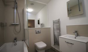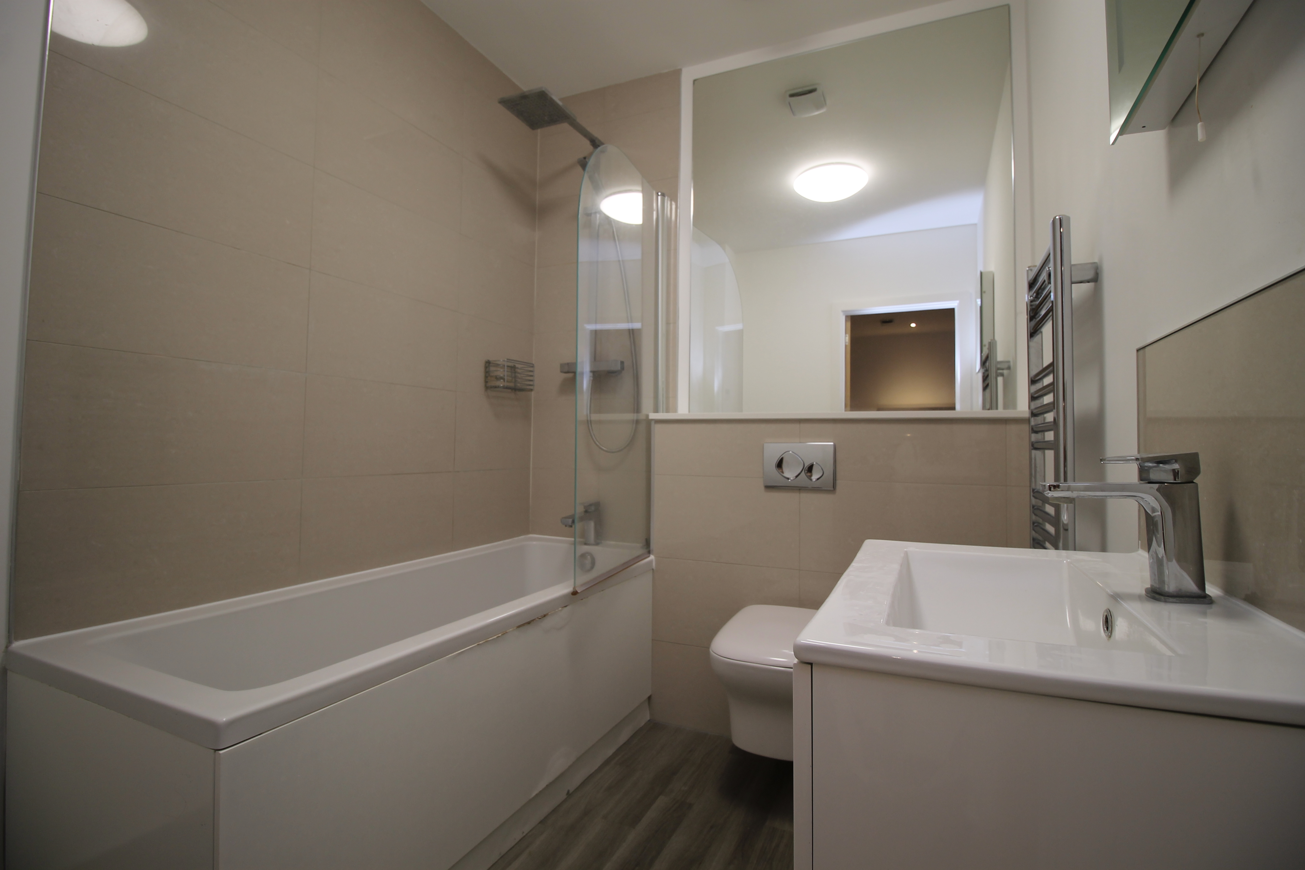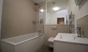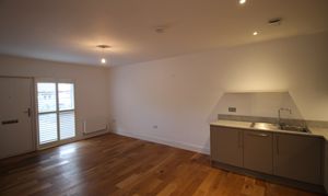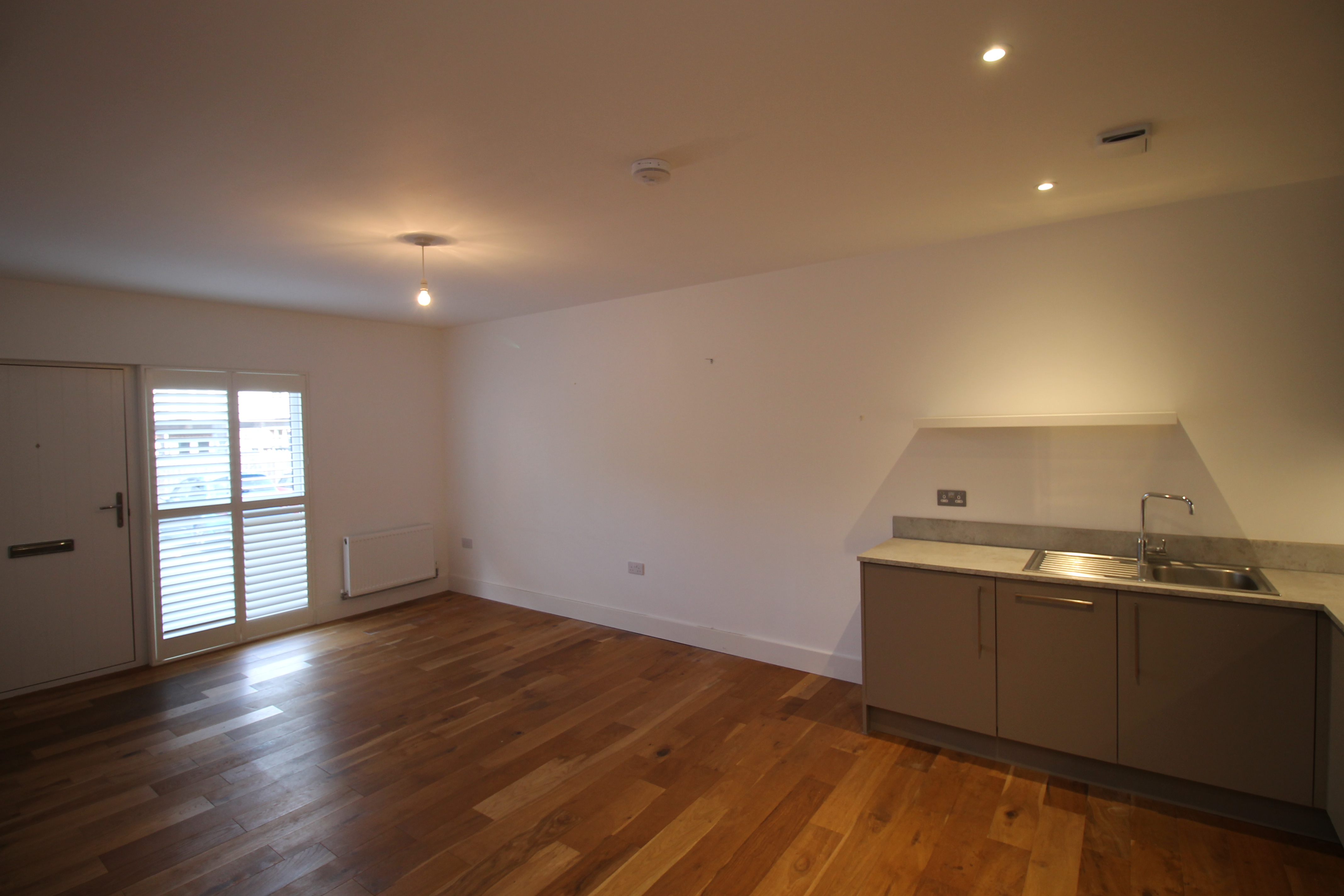 The apartment benefits from having its own entrance door which leads directly into the open plan kitchen/dining/living room which has engineered oak flooring throughout. The living area has a full length window whilst the kitchen is fitted with a range of modern units, integrated Neff oven and induction hob, extractor, fridge, freezer, dishwasher and washing machine. There is a double bedroom which also has a full length window with shutter and a fitted wardrobe. The bathroom has a white suite and includes a rainfall shower over the bath and a vanity unit housing the wash hand basin.