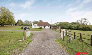 Outside, the property really stands out. The house sits well back from the road with a gated entrance, ample parking, and fenced boundaries. There's a large outbuilding—roughly 64.5 sqm—made up of multiple sections that could be used for storage, workshops or converted (subject to planning). With this much land, the setup could work well for equestrian use or anyone wanting more outdoor space to work with.