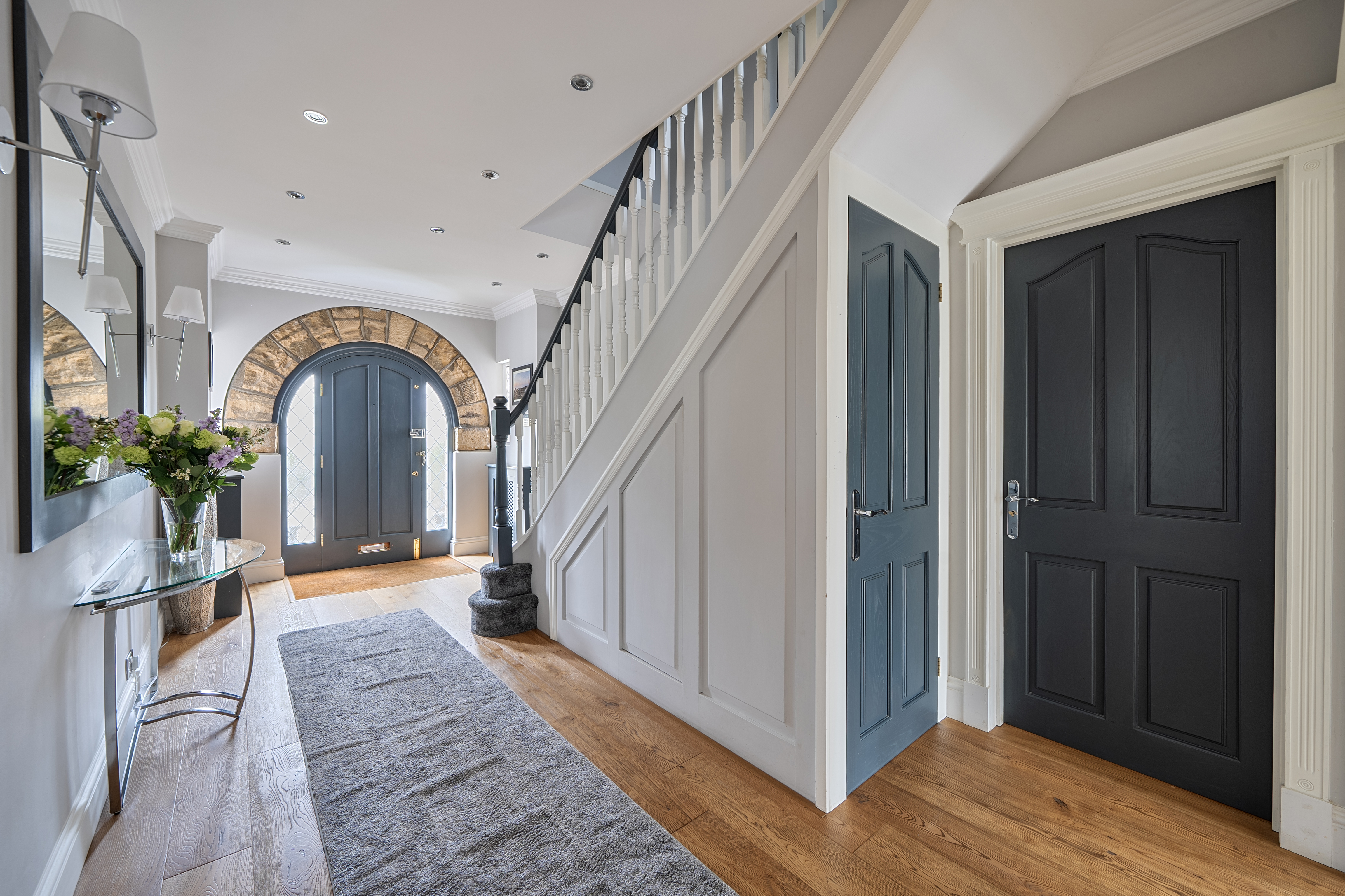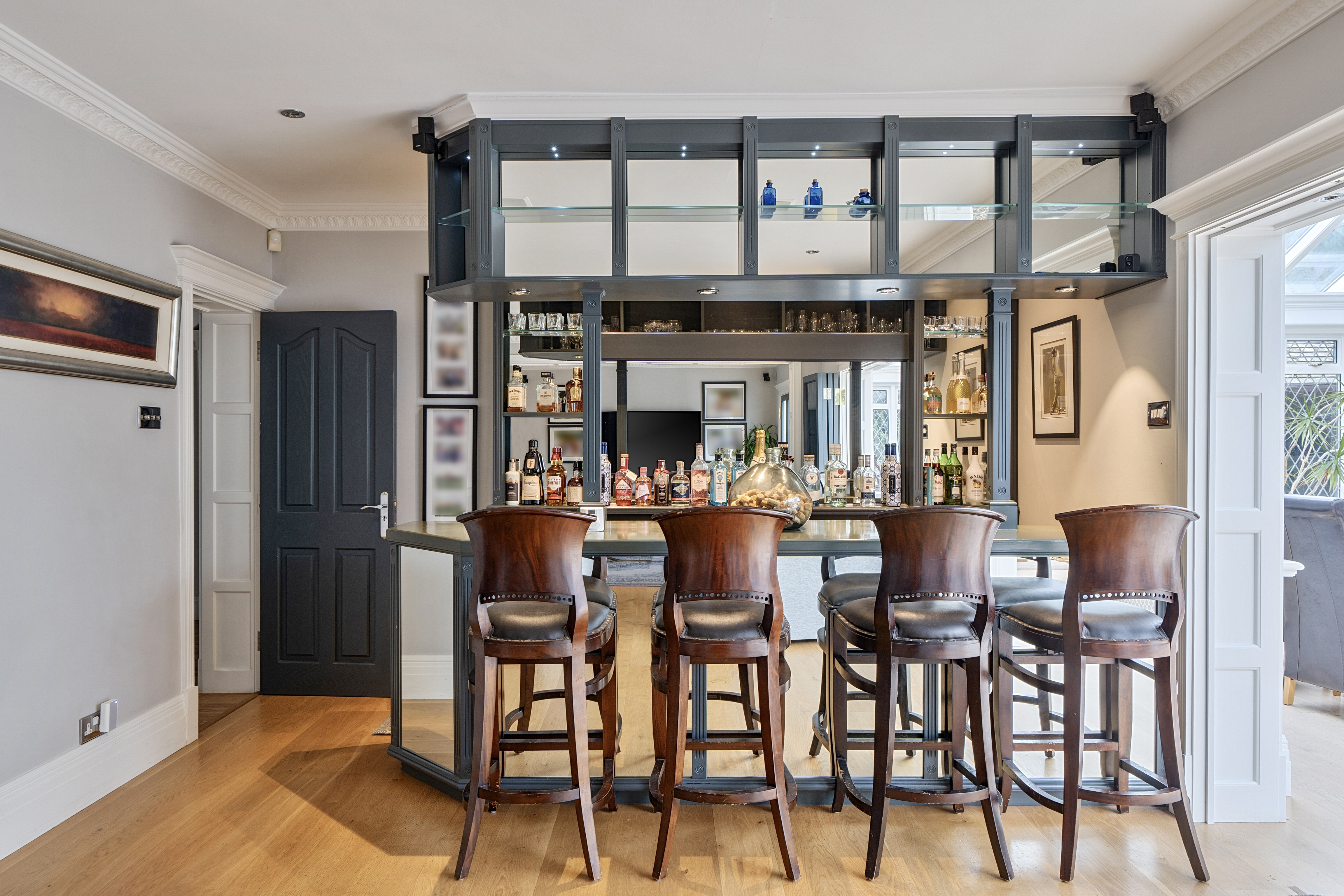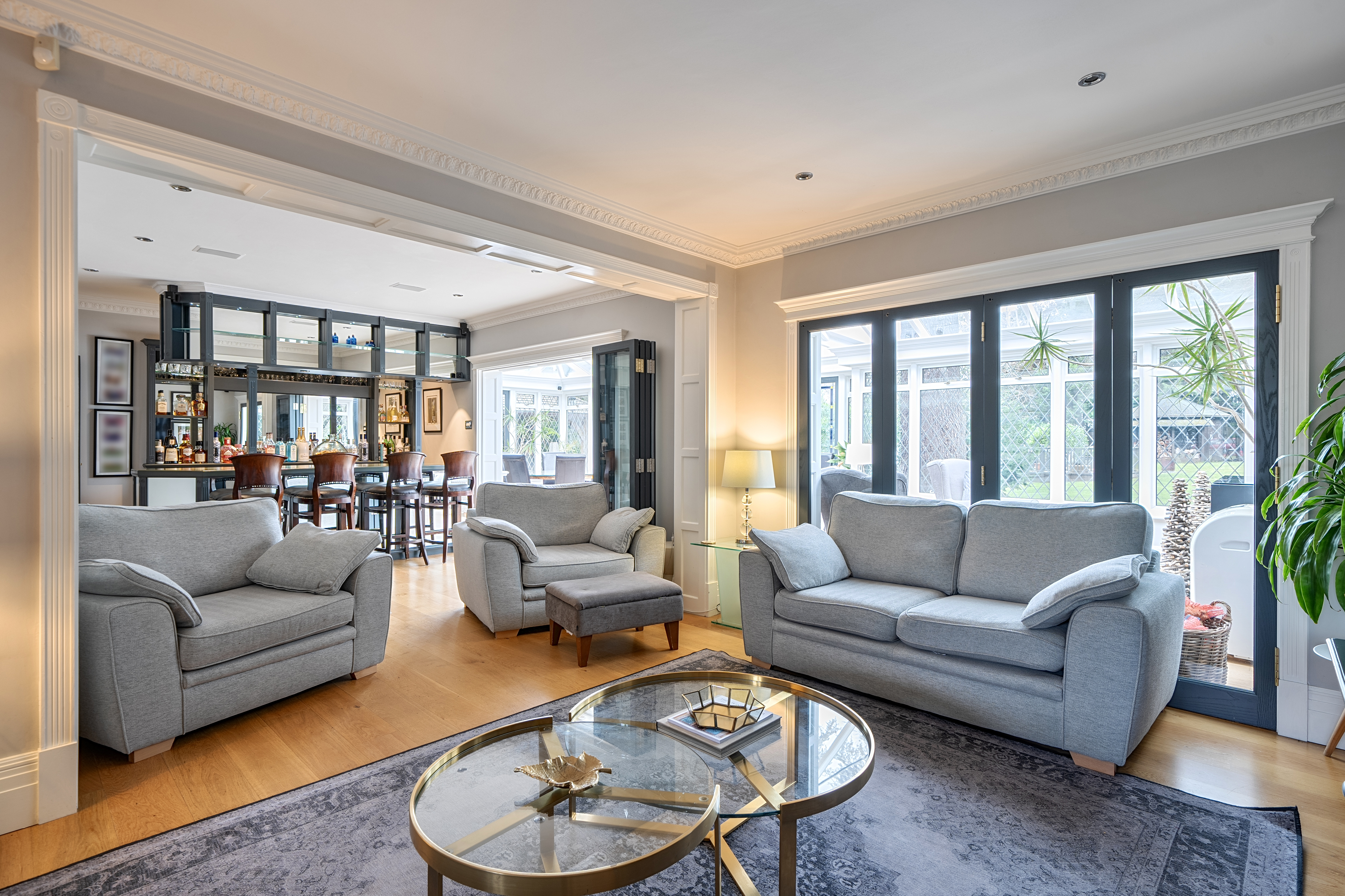 Designed with both style and practicality in mind, the home boasts a spacious kitchen/breakfast room with separate utility and generous living spaces perfectly suited to modern family life and entertaining. At its heart is a striking bespoke bar area, ideal for hosting, complemented by a spacious conservatory, with attractive feature log-burning stove, that creates a seamless flow between indoor and outdoor living. The principal suite features a luxurious en-suite bathroom, while three additional bedrooms are served by a contemporary family bathroom. A convenient ground-floor W.C. enhances the functionality of the layout. Finished to an exceptional specification throughout, the property offers an elegant yet comfortable environment, with flexible accommodation, well-proportioned rooms, and an abundance of natural light.