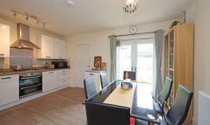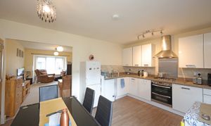 Entrance hall with modern composite door and turn staircase. Spacious lounge with large square bay window and under stair storage. Open to a spacious family dining kitchen with hard flooring and double patio doors onto the rear garden. The kitchen area is fitted with white gloss units with fitted electric oven/grill and gas hob with splash back and extractor above. Additional freestanding appliances comprising dishwasher, fridge/freezer can also be included within the sale. A utility/rear porch with a modern composite door gives access to the rear. Further free standing washing machine and separate dryer can also be included within the sale. Off the utility/porch is a cloaks/WC with central heating boiler.
