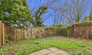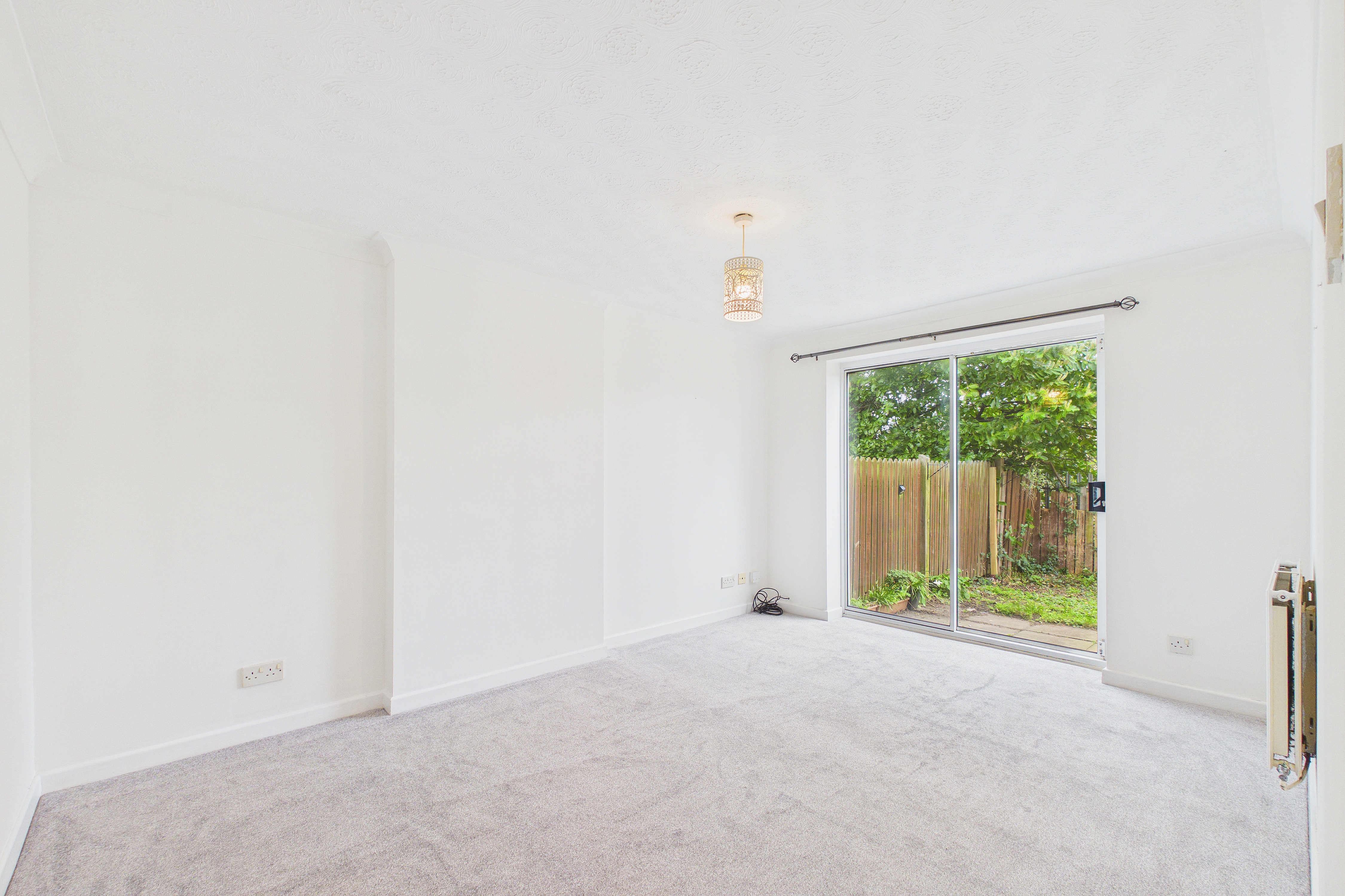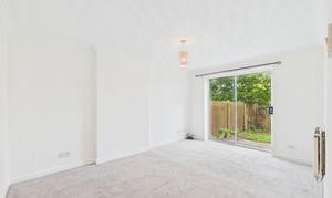 - Spacious living/dining room with sliding patio doors opening into a private, enclosed rear garden