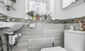 The property opens into a welcoming hallway that leads through to a large open-plan lounge and dining room, creating an excellent space for relaxing and entertaining. To the rear sits a well-sized kitchen with ample storage and workspace, offering direct access to the garden. A ground floor bathroom is conveniently located off the kitchen, complemented by a separate WC, ideal for busy households.