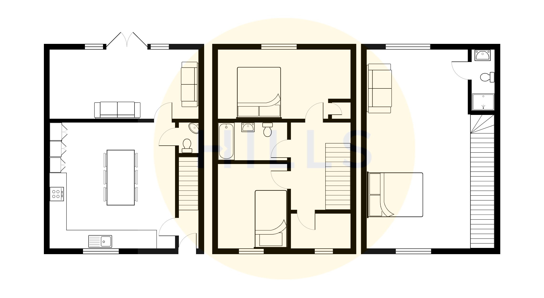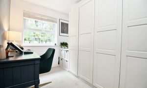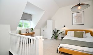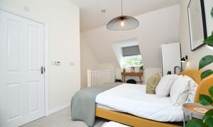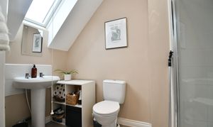 On the first floor there are two well-proportioned bedrooms, a modern, three-piece bathroom and a vestibule/office area that leads to the top floor. The top floor houses a HUGE main bedroom, with vaulted ceilings bringing an air of space, and it also benefits from access to an ensuite shower room.