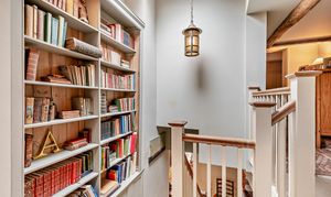 - Versatile first floor landing. Vaulted ceiling and exposed beams currently used as a study and movie den with potential for a projector setup.
