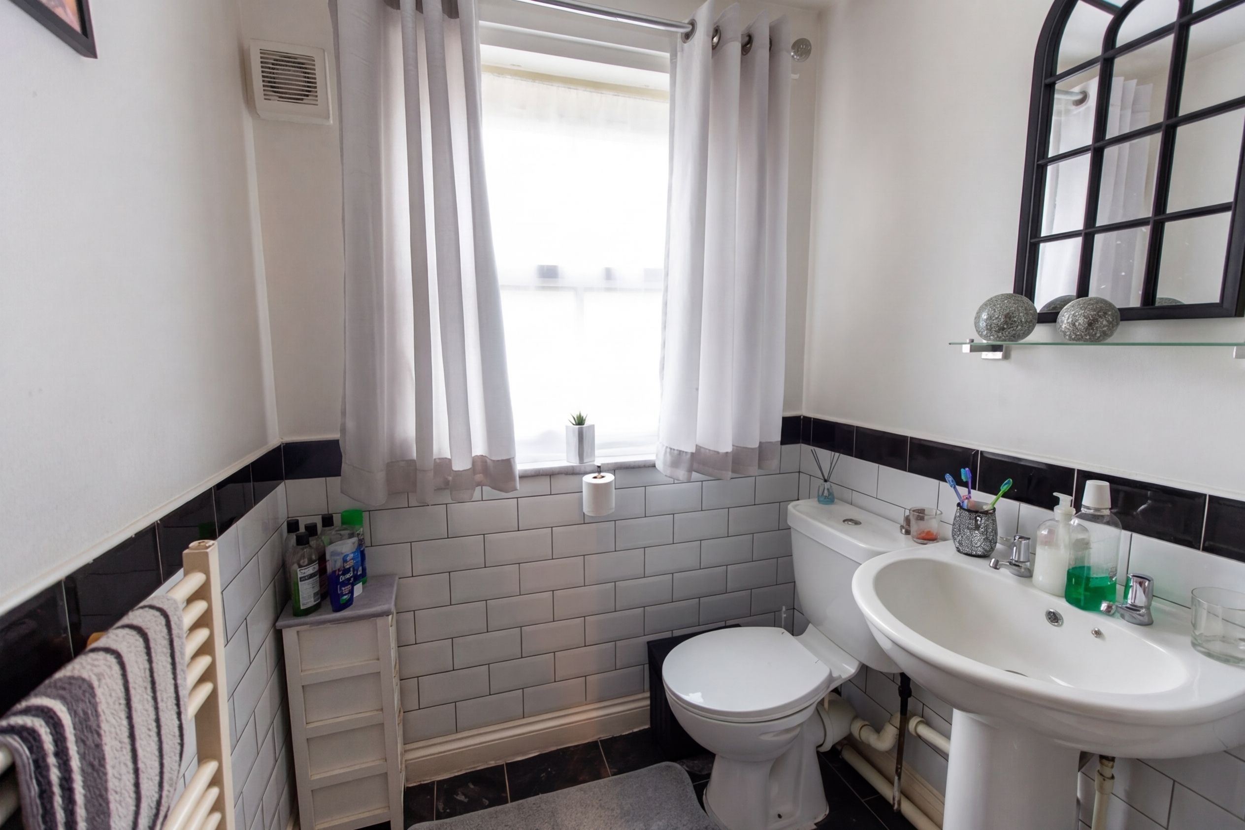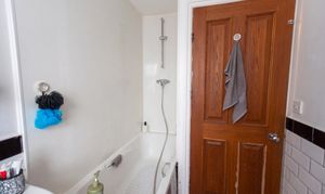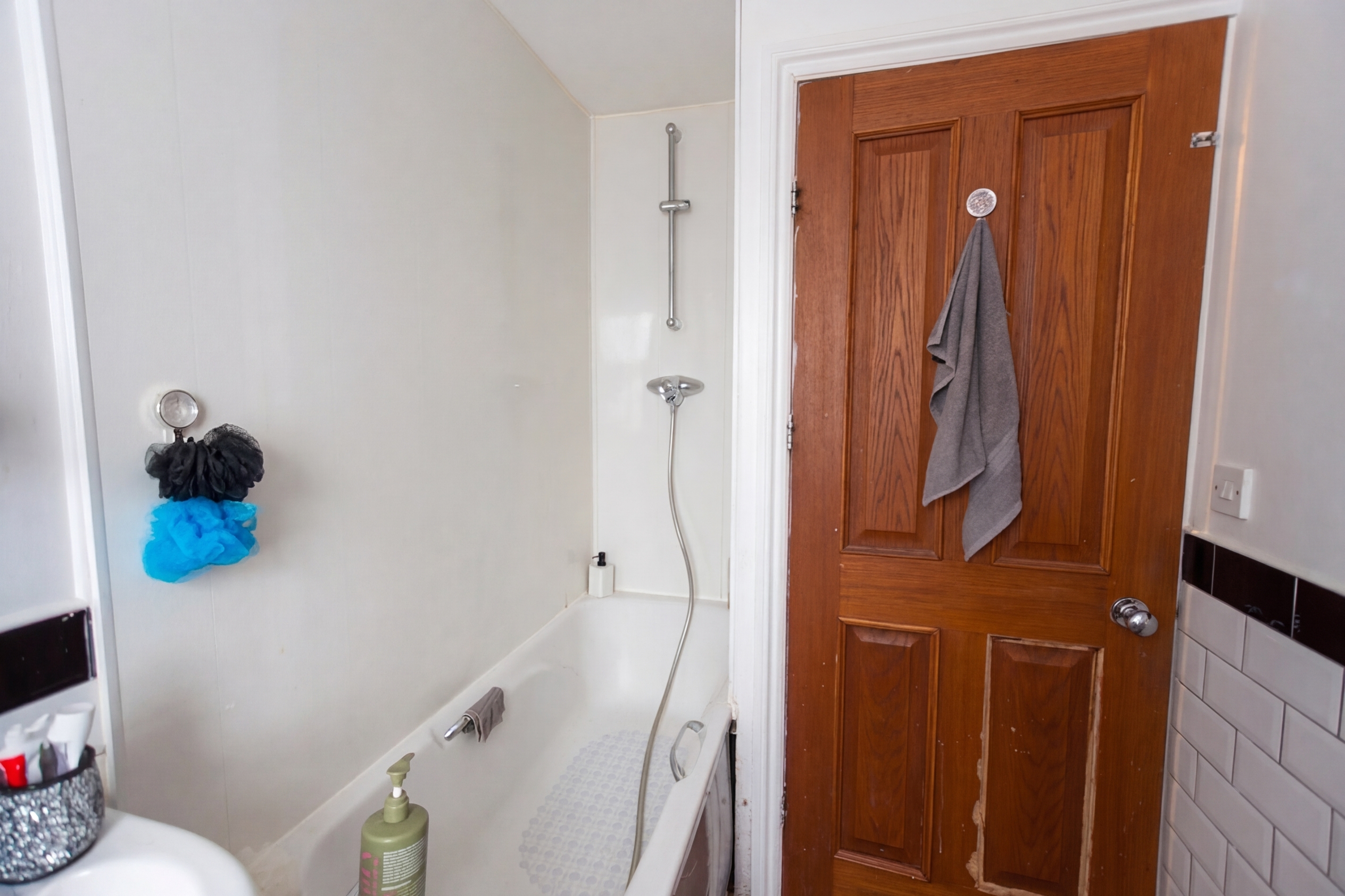 The modern bathroom benefits from a bath with shower, adding to the feel of the property.