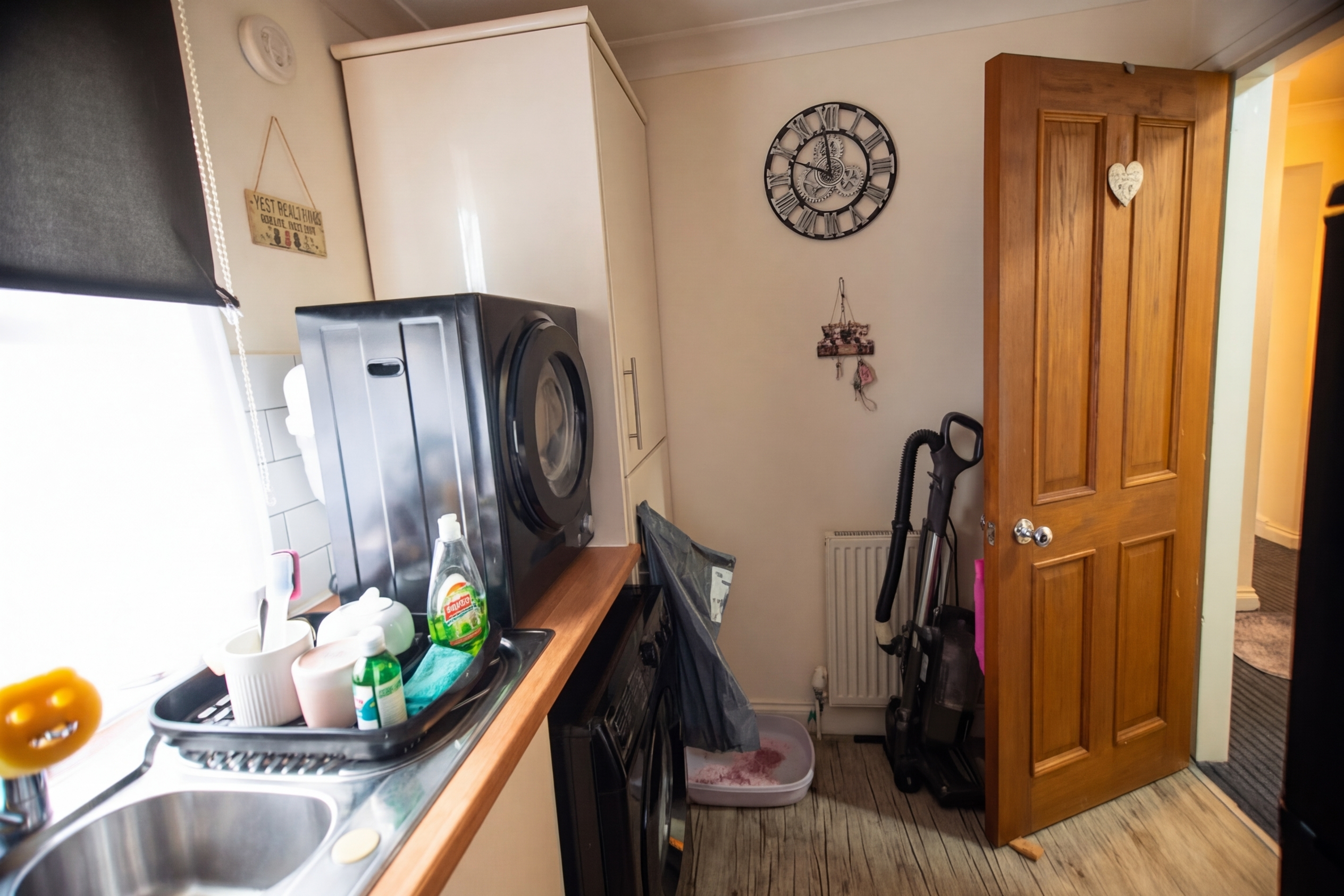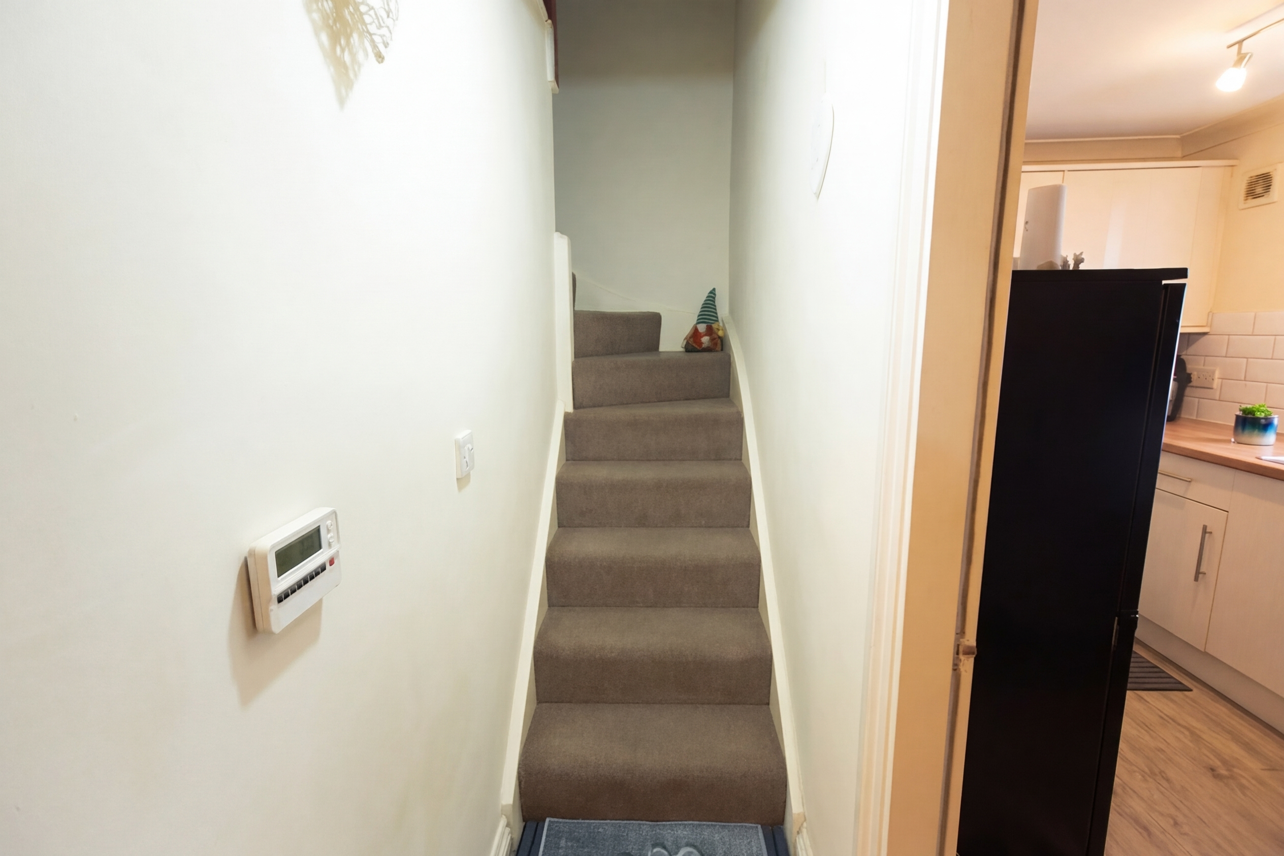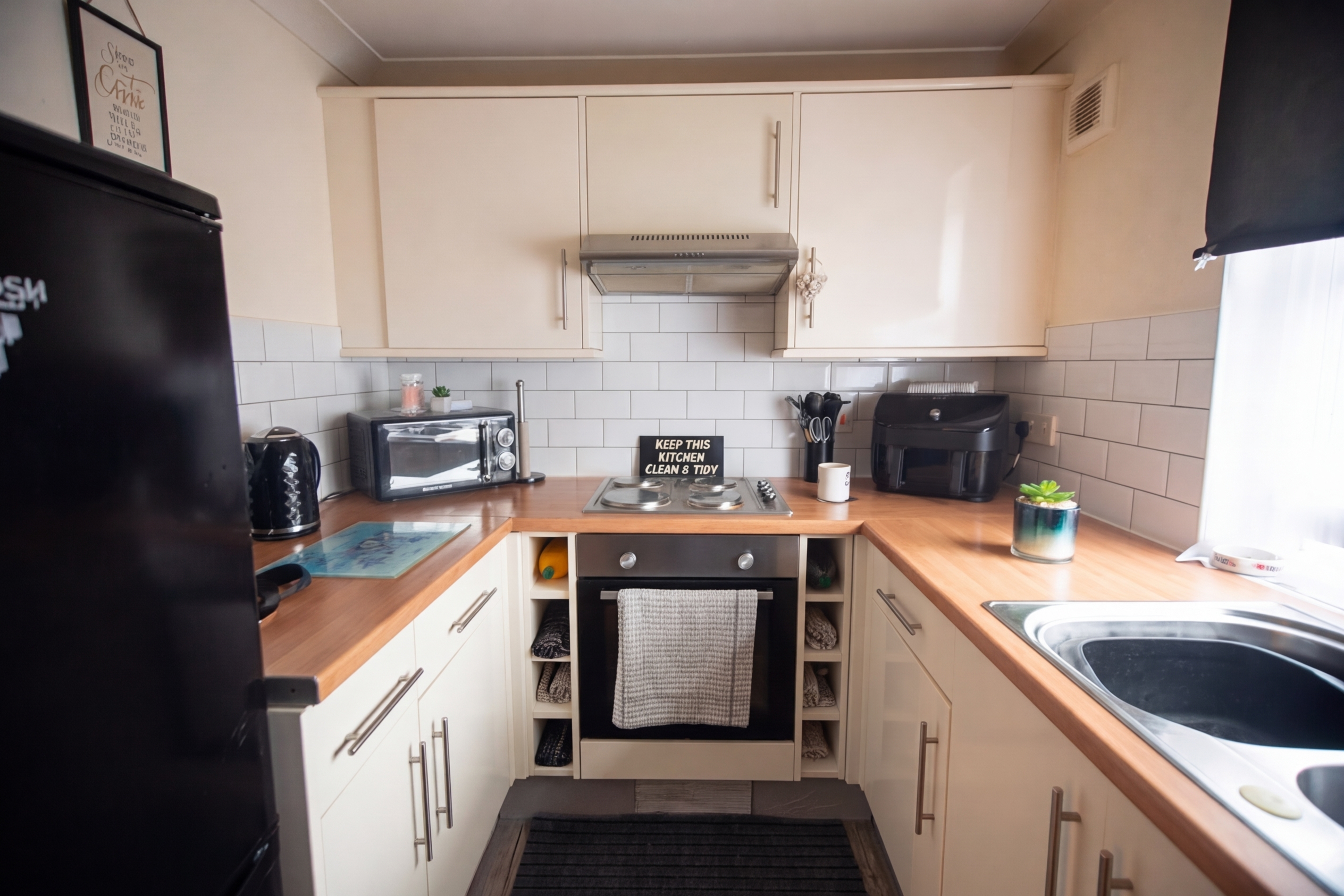 Upon entering, you are welcomed by a hall way that is filled with natural light. This leads to the 2 double bedrooms and well equipped kitchen.