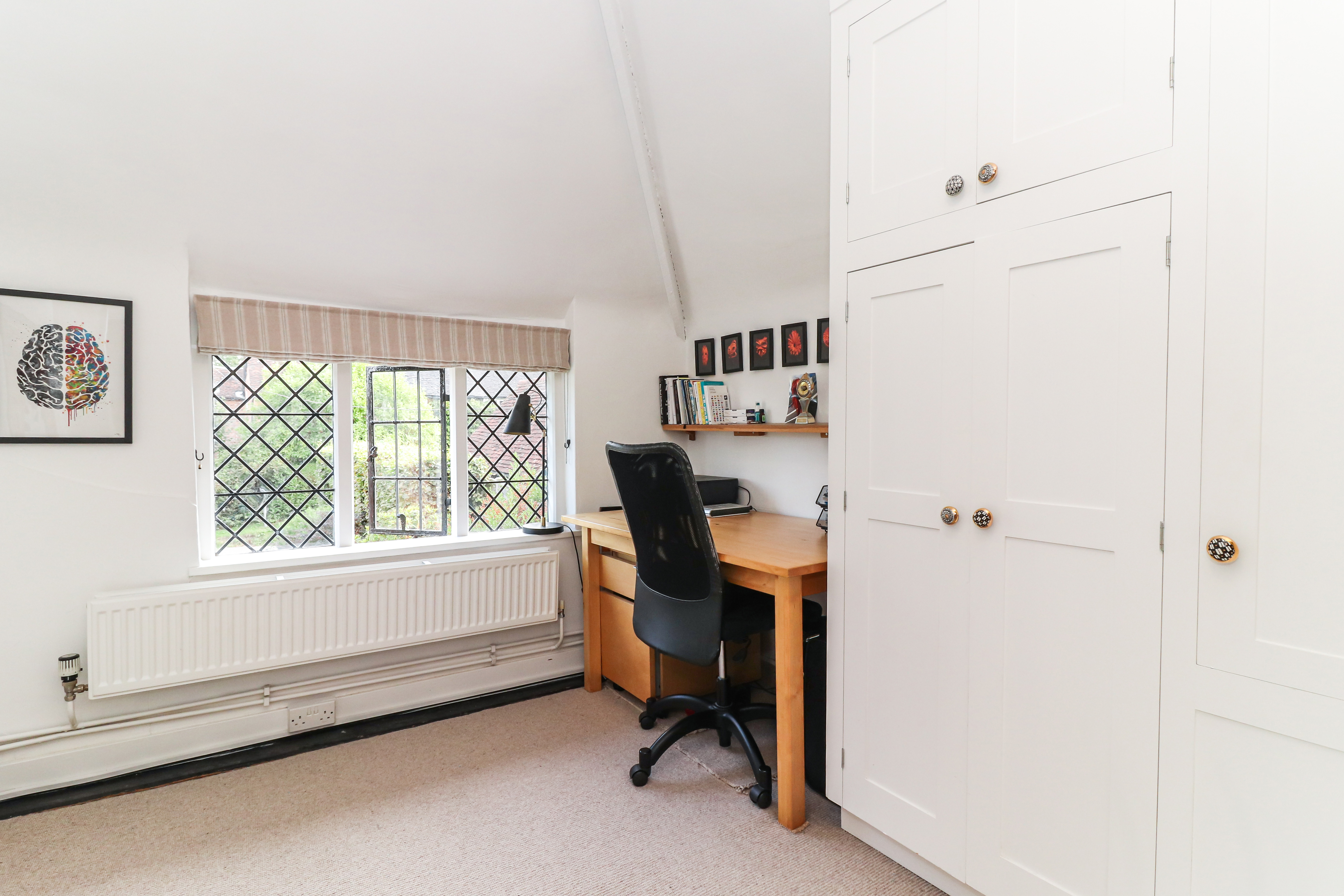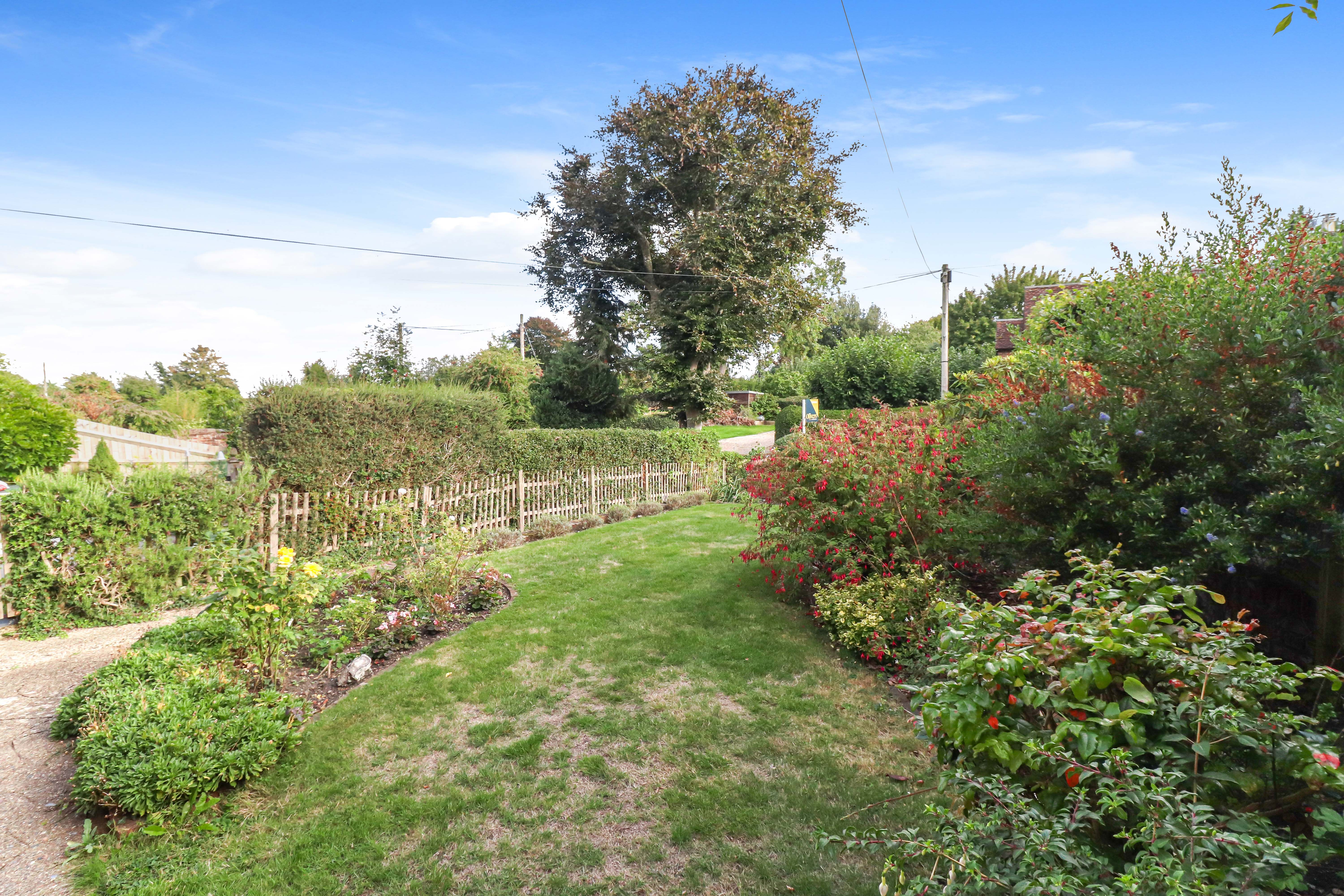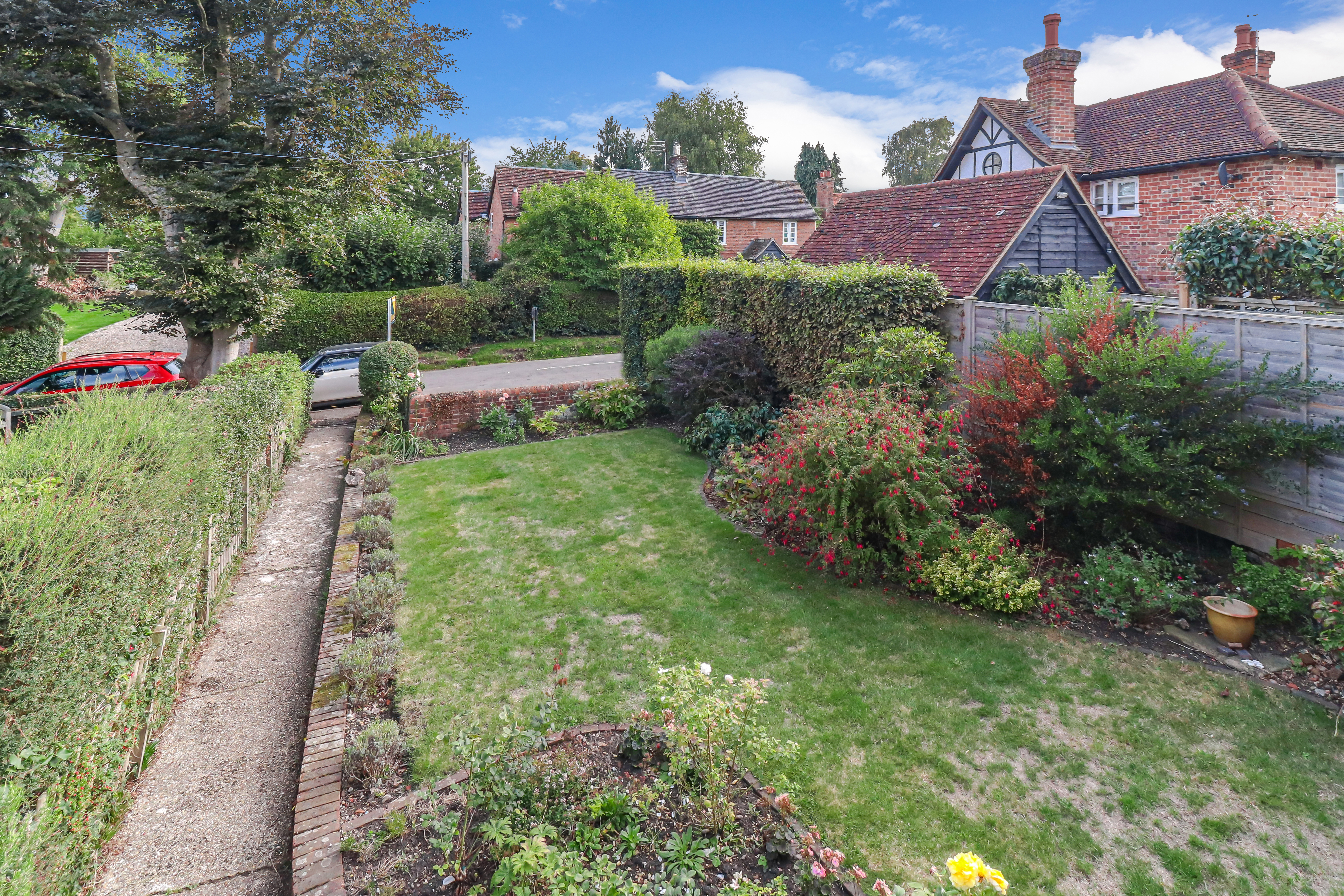 The rear garden is a particularly charming and private space, blending a mixture of lawned spaces, mature trees and borders, as well as multiple seating areas. This beautiful space settles perfectly in to the quiet environment that Flaunden offers. Side access leads you to the front of the house, where there is a similarly attractive garden and off street parking for multiple vehicles.
