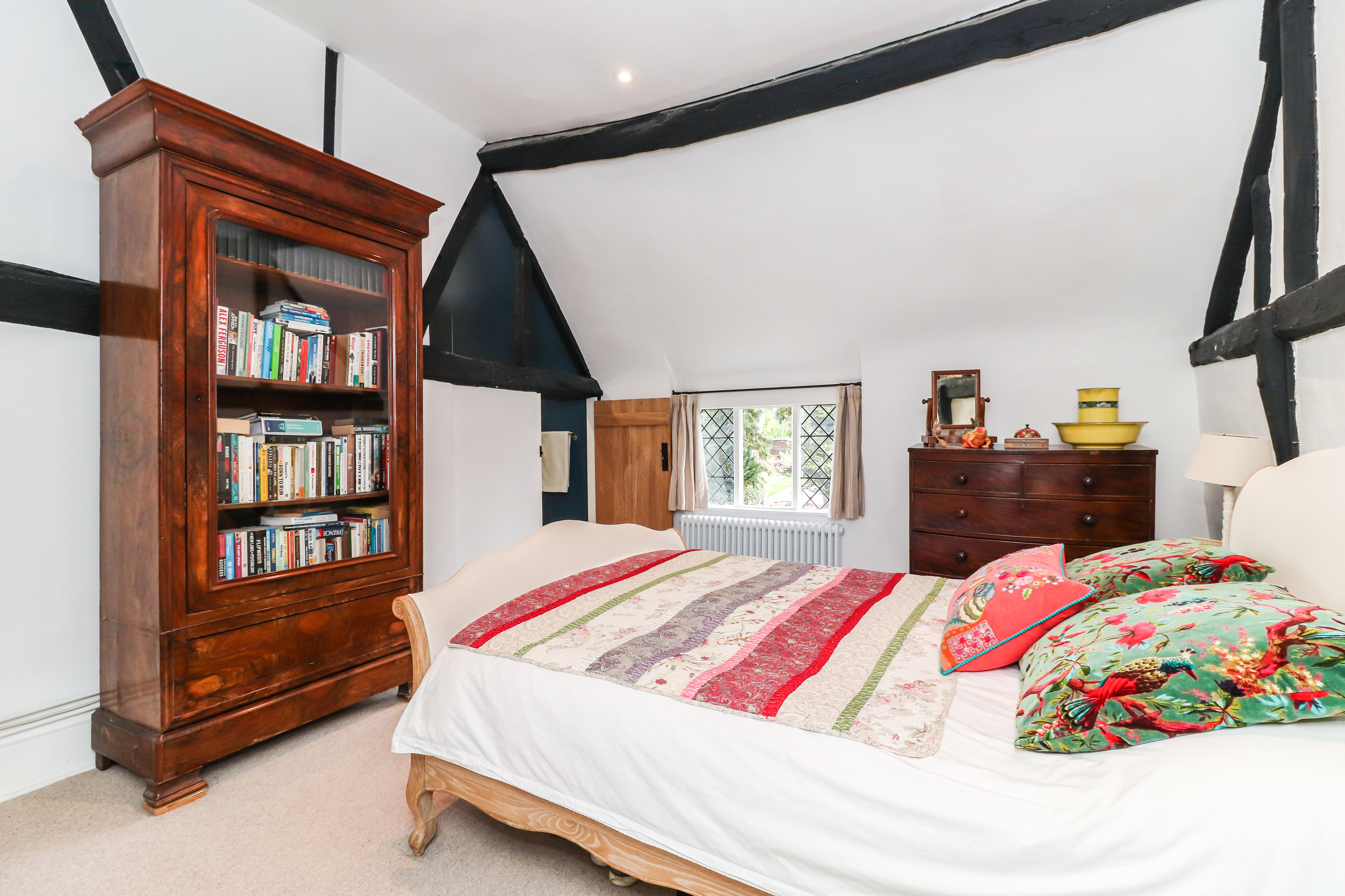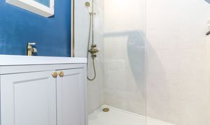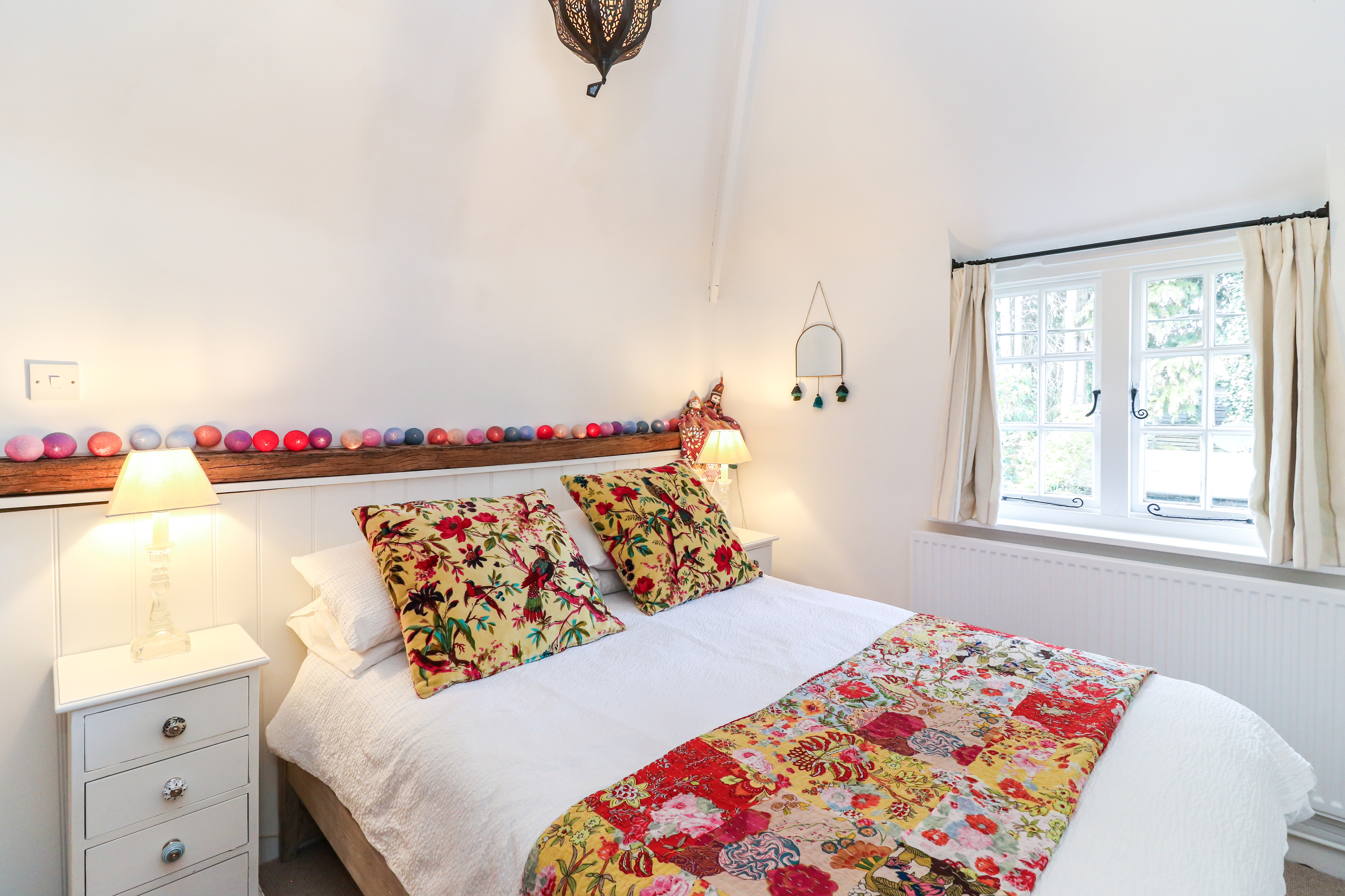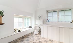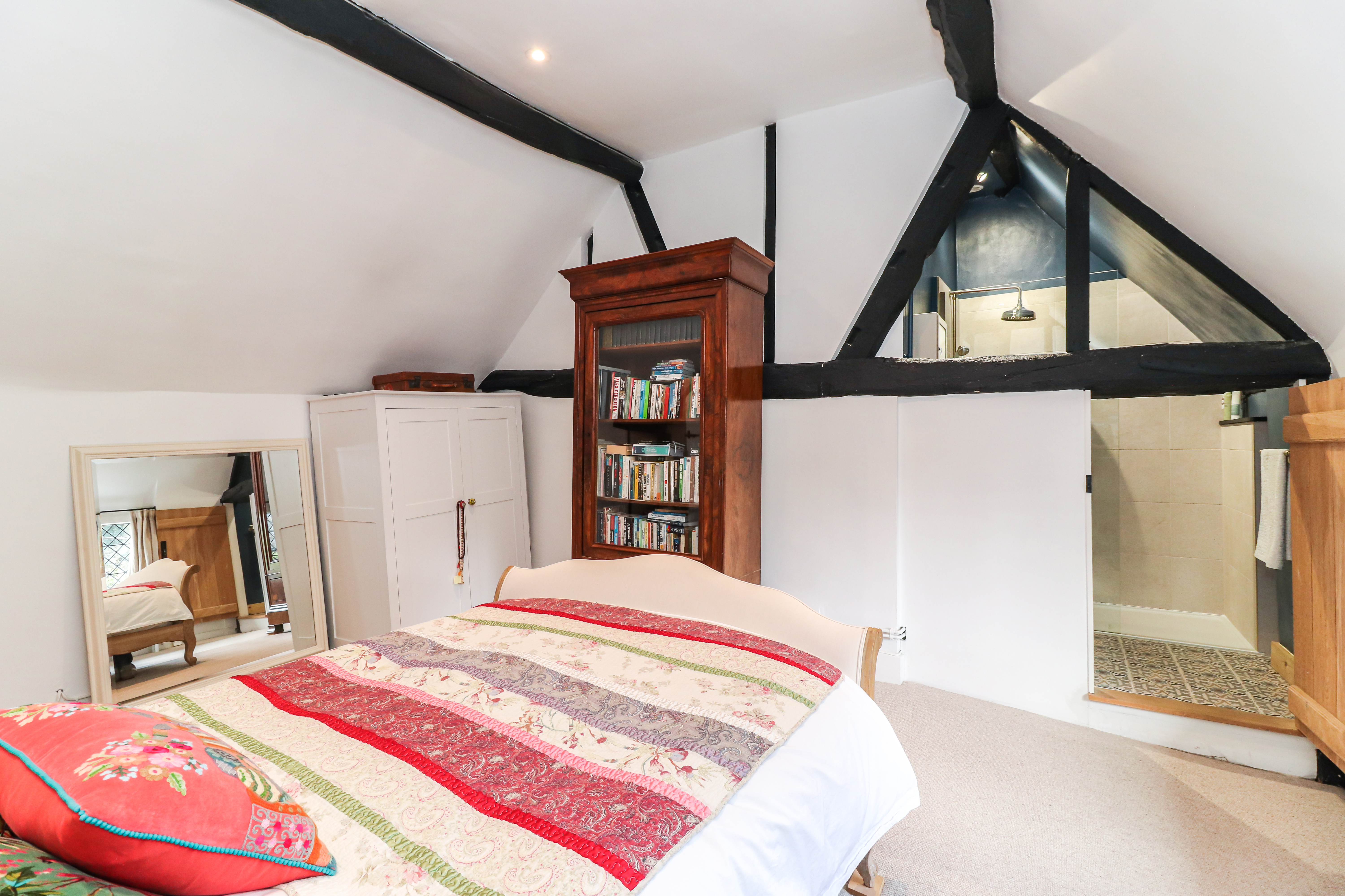 The first floor exudes character and charm, particularly in the Master bedroom, where the vaulted ceiling gives a lovely sense of space. The en-suite shower room has been cleverly designed around the original framework of the house, preserving the history in a playful way. The other 2 bedrooms are comfortable rooms, one of which benefits from fitted wardrobes. Additionally, there is a spacious family bathroom and separate toilet, both accessed from the landing.
