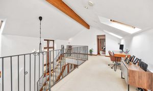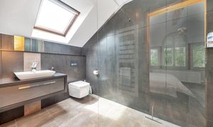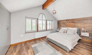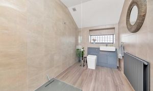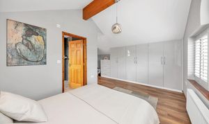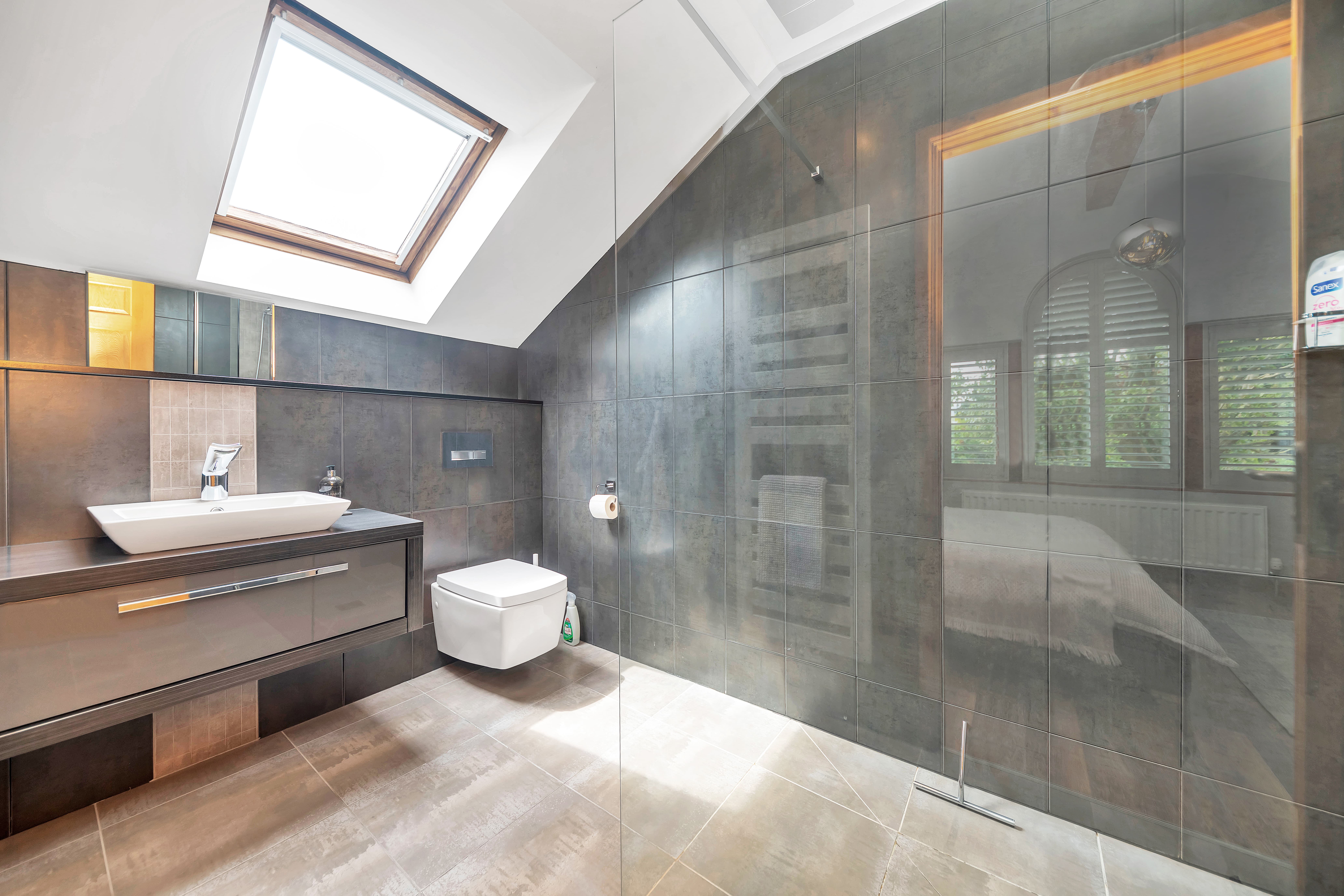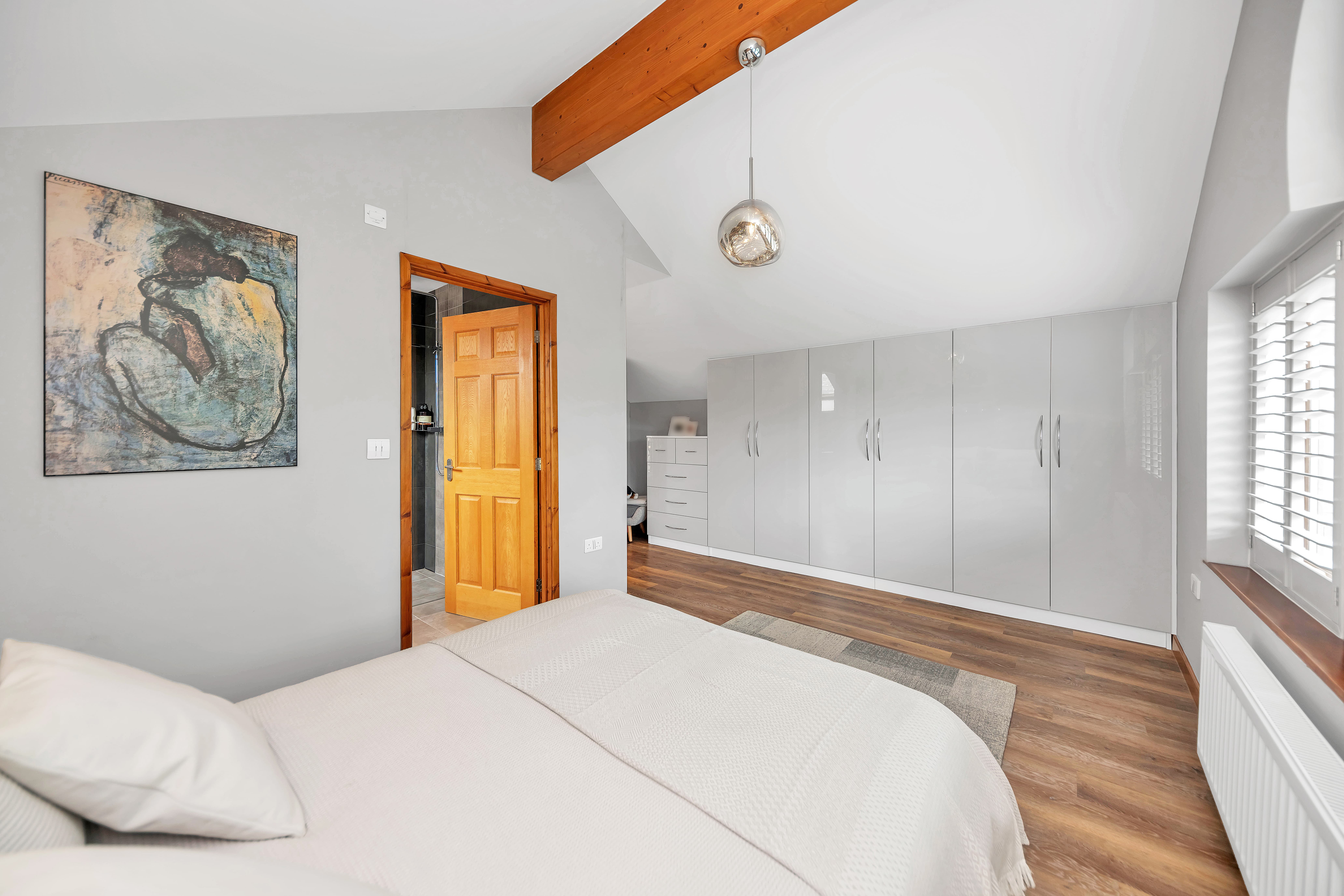 Upstairs to the first floor, this stunning home continues to offer impressive accommodation, enjoying a beautiful landing with space for office furniture, Velux windows, 2 well-proportioned double bedrooms, excellent integrated storage/wardrobes, and a family bathroom comprising a shower, WC and hand wash basin. The primary bedroom is particularly generous and enjoys its own en-suite, with a shower, WC and sink.