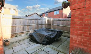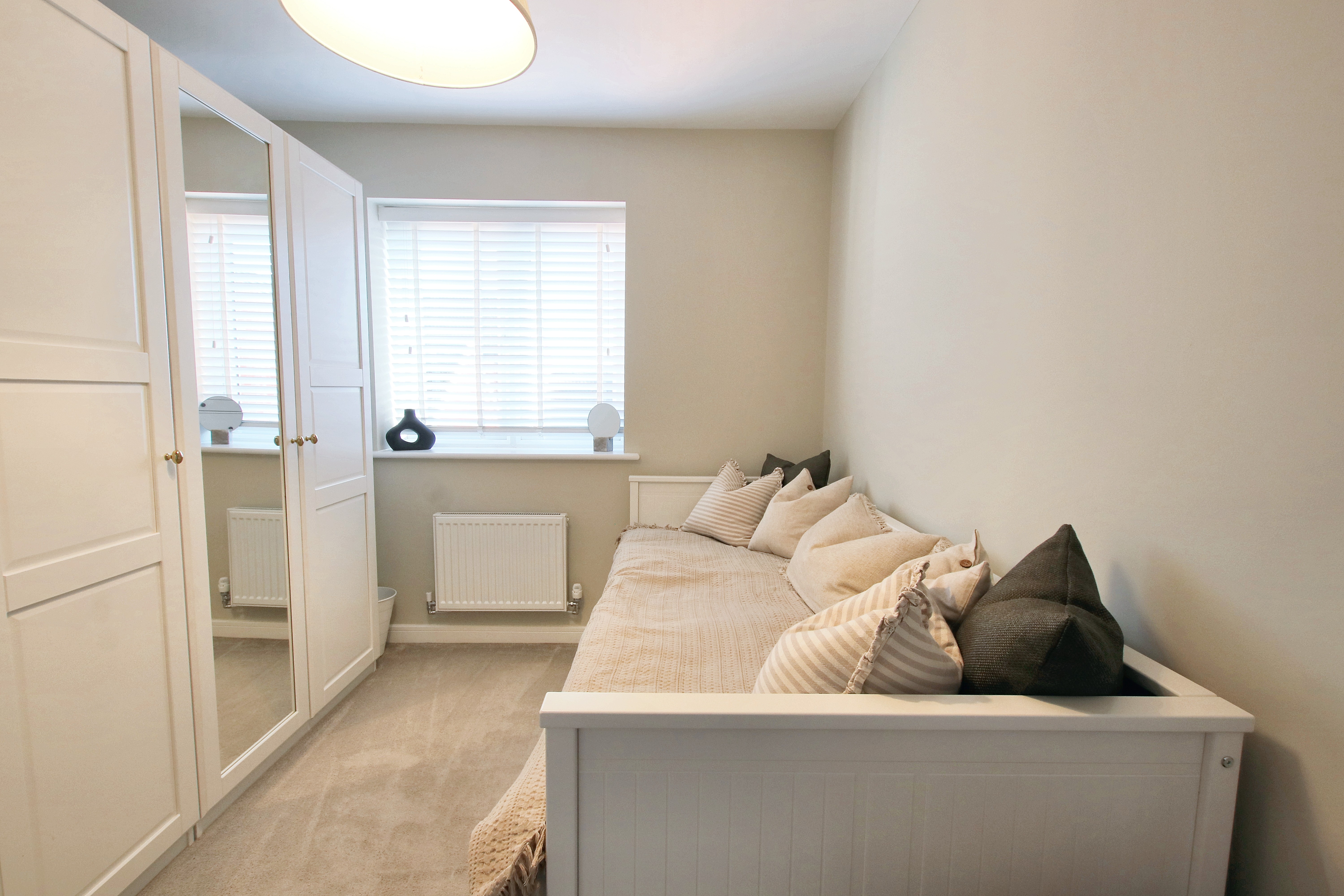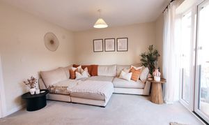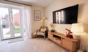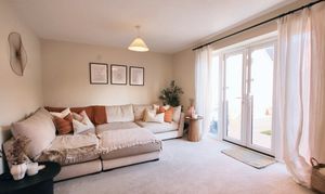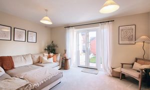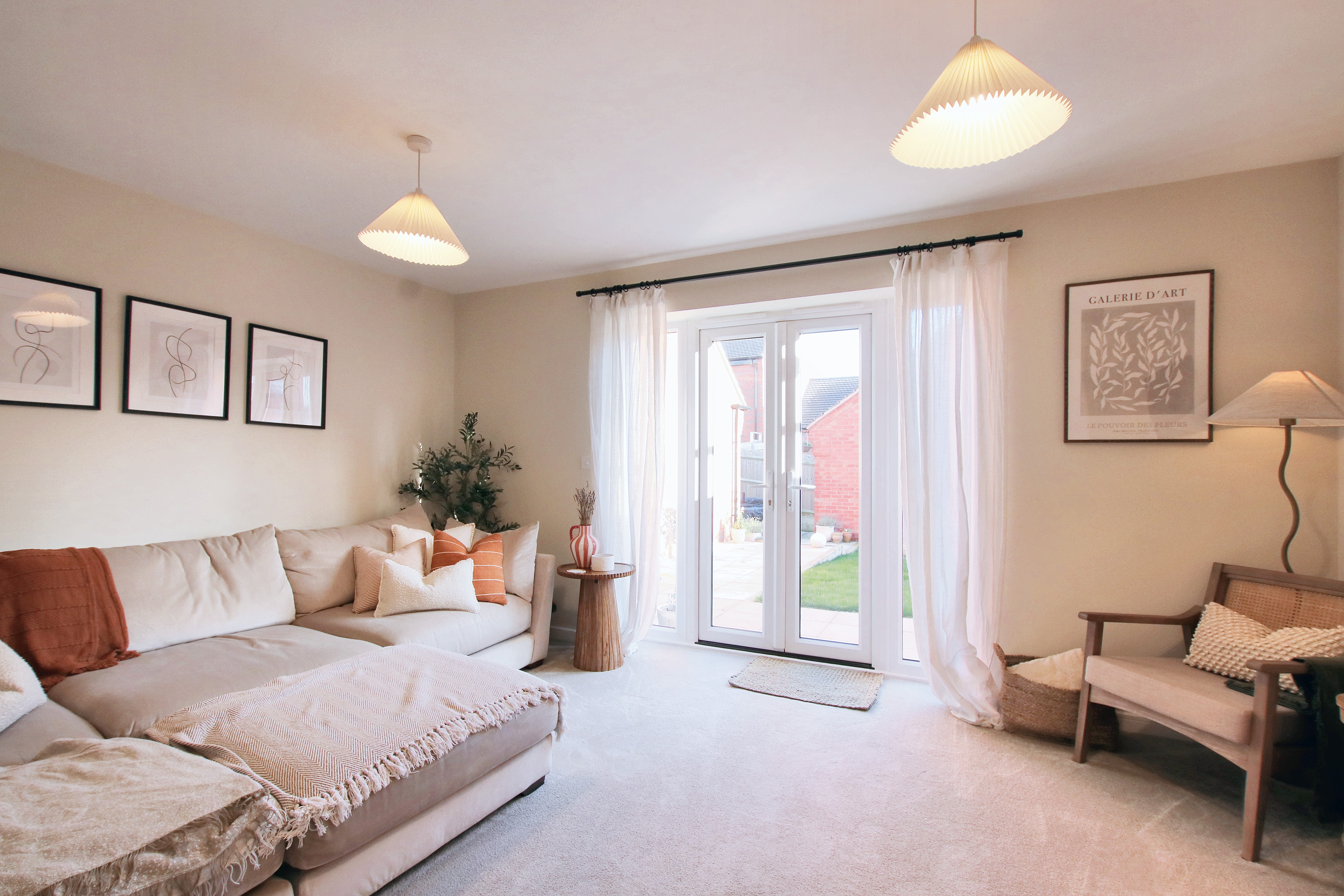 At the rear, the spacious living room offers a generous, cosy retreat. Neutral décor and patio doors opening onto the garden make this space perfect for relaxing evenings or summer gatherings.