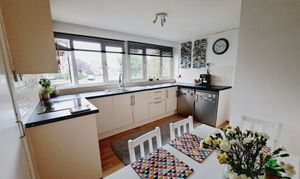 Upon entering the apartment, you are greeted by a spacious living/dining room bathed in natural light, creating a bright and welcoming atmosphere perfect for relaxation or entertaining. The large fitted kitchen boasts ample storage space and provides an excellent setting for culinary endeavours.