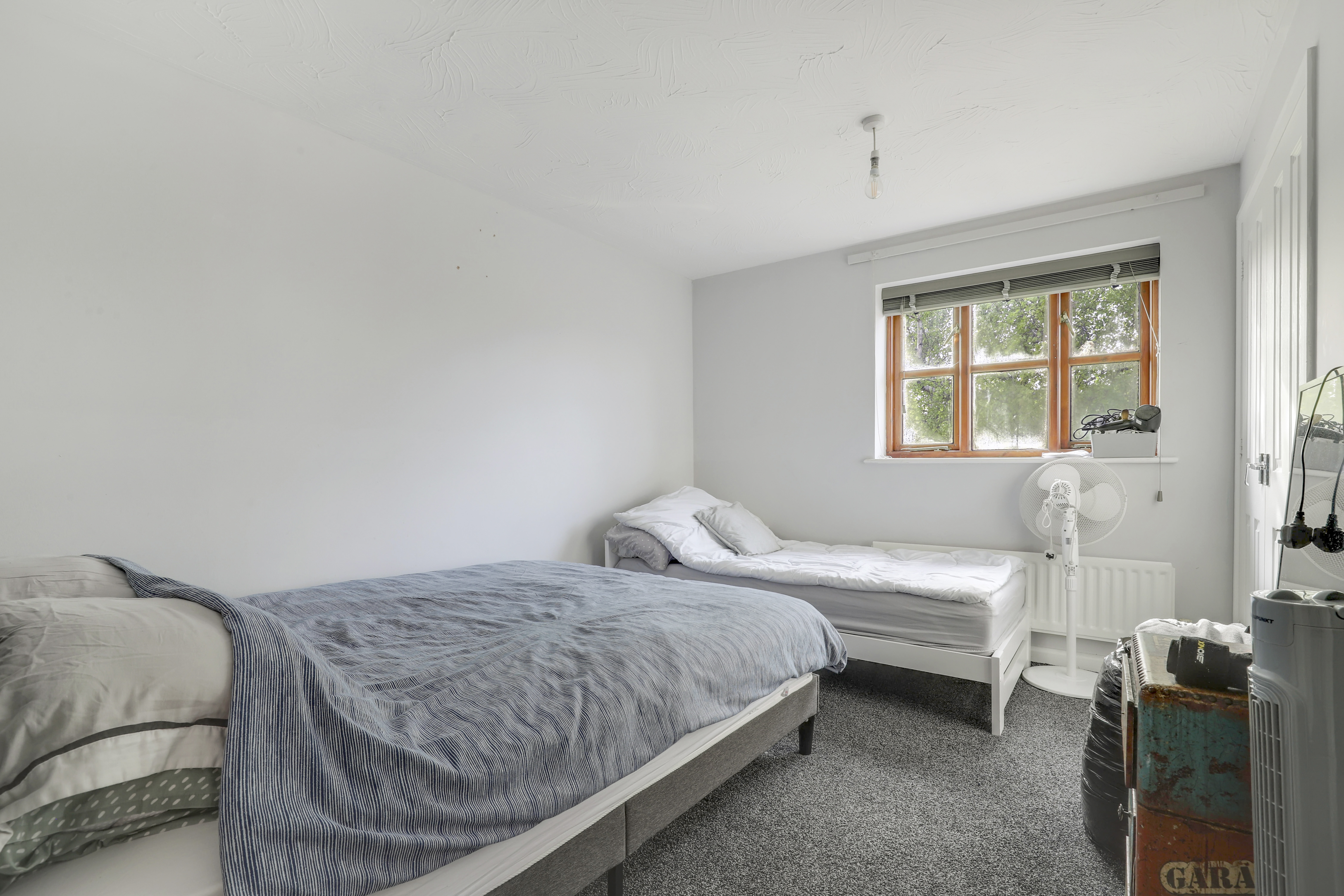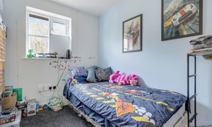 The second bedroom has carpeted flooring, a radiator, an in-built cupboard and a window to the rear elevation.