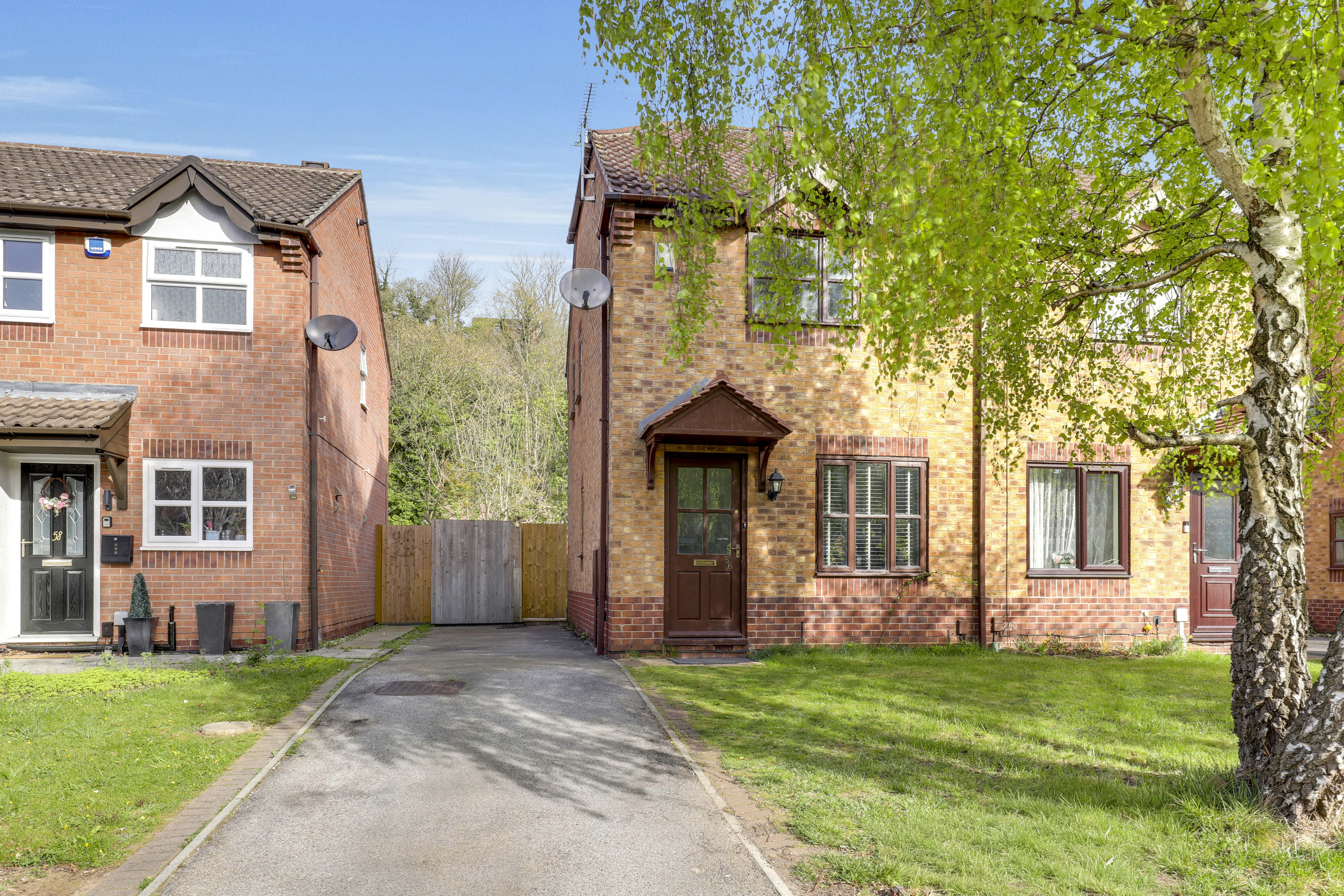 To the front of the property is a driveway providing off-road parking, gated access to the rear garden and a lawned garden.
