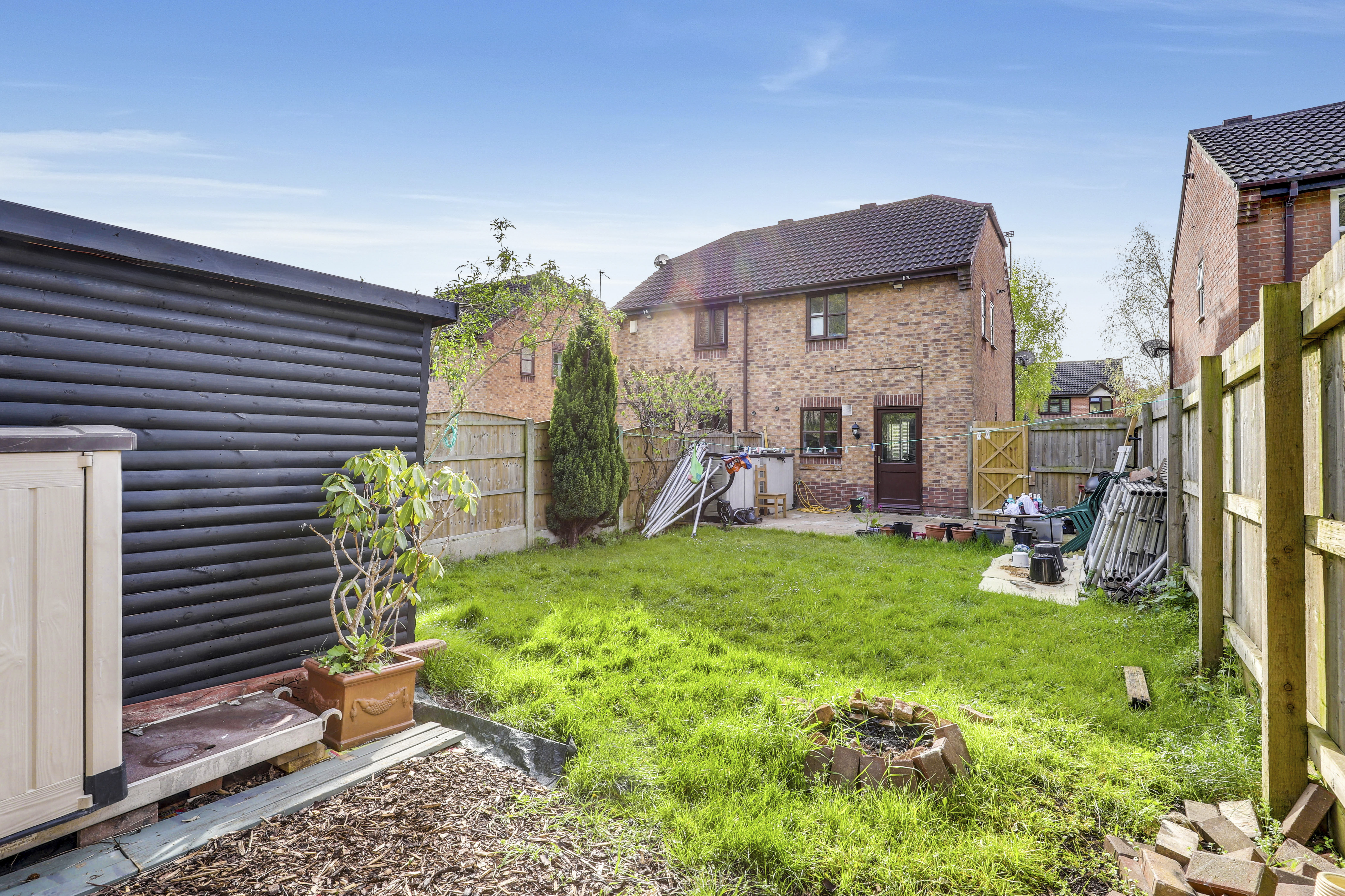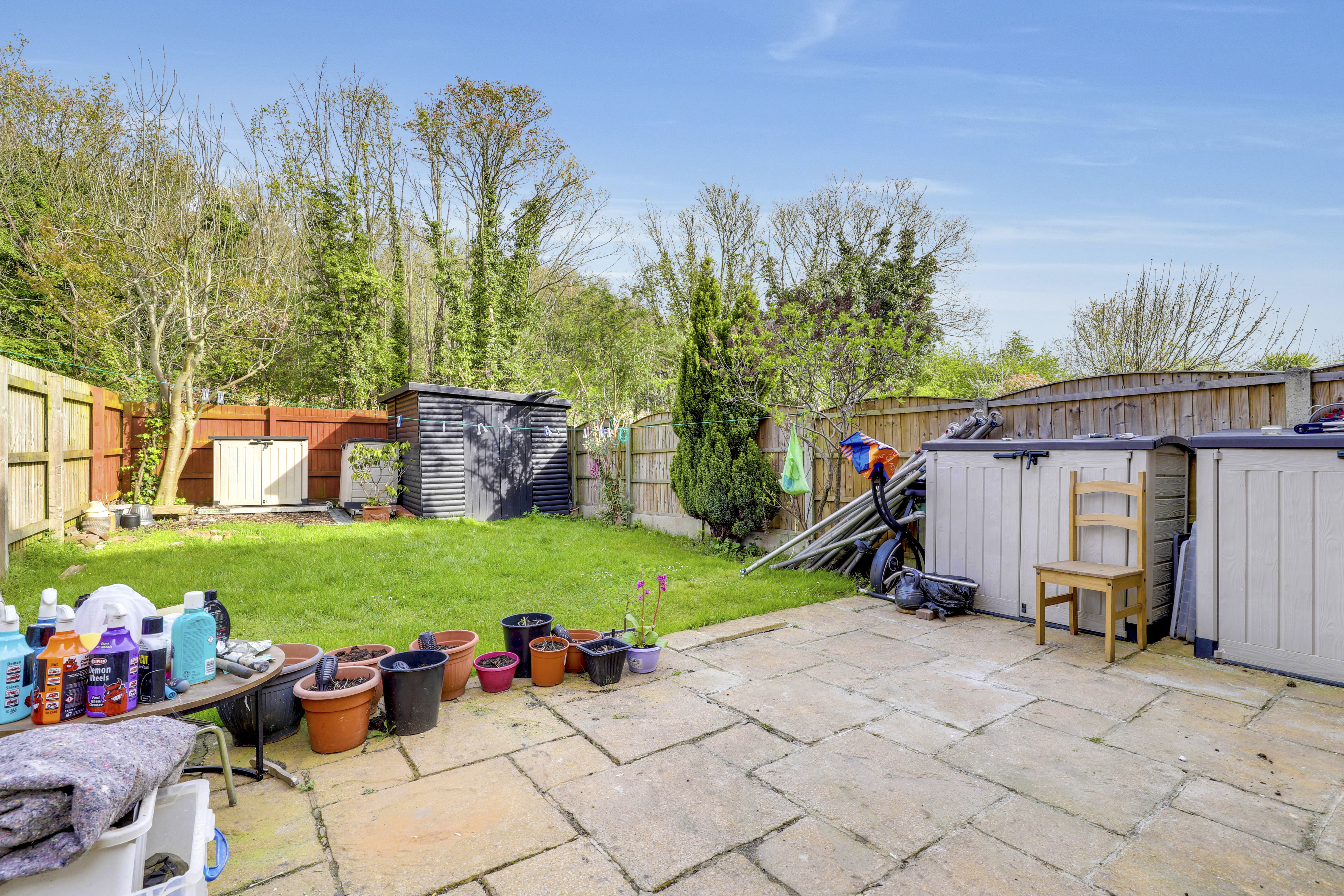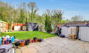 To the rear of the property is an enclosed garden with a paved patio area, a lawn and fence panel boundaries.