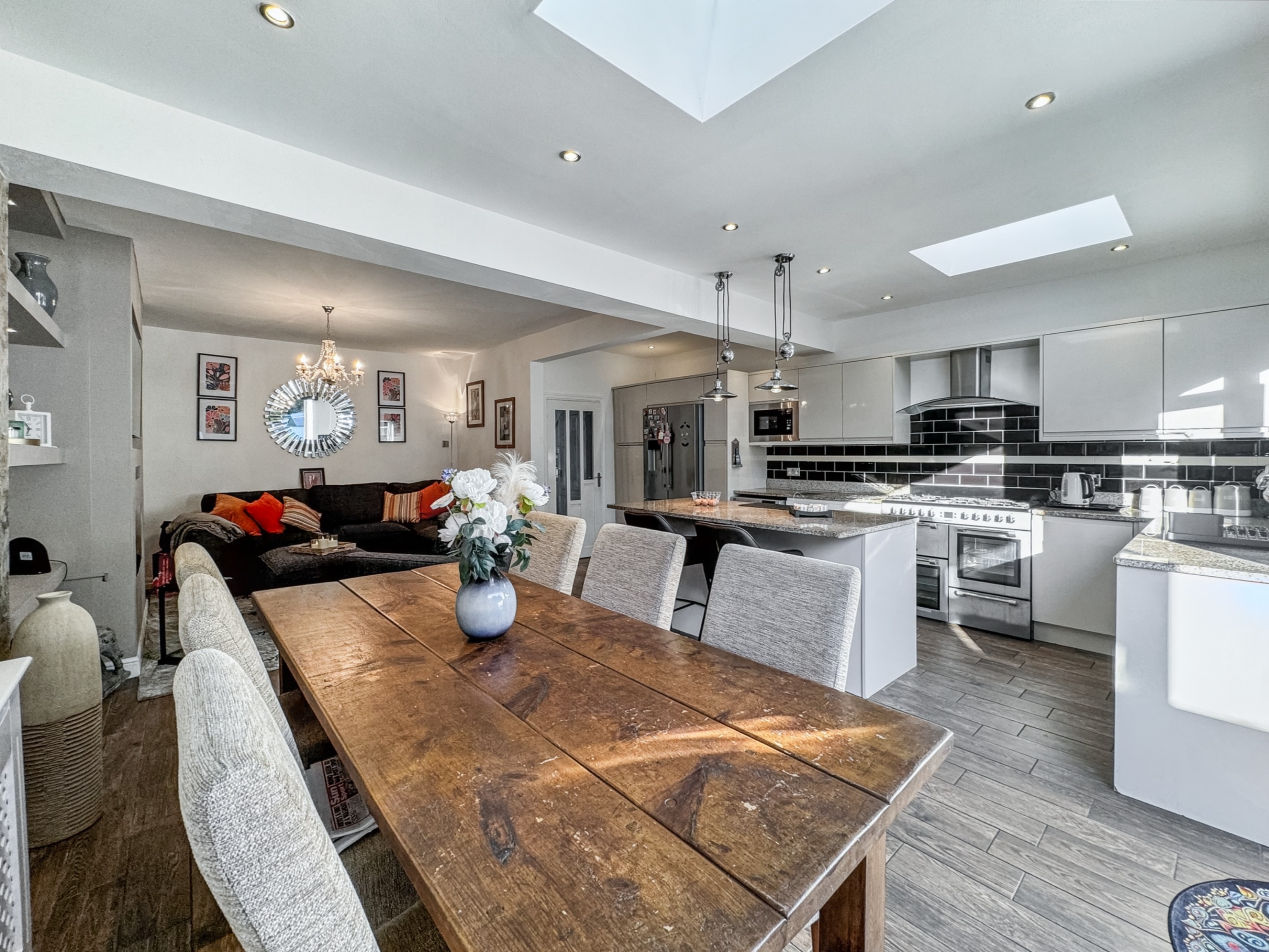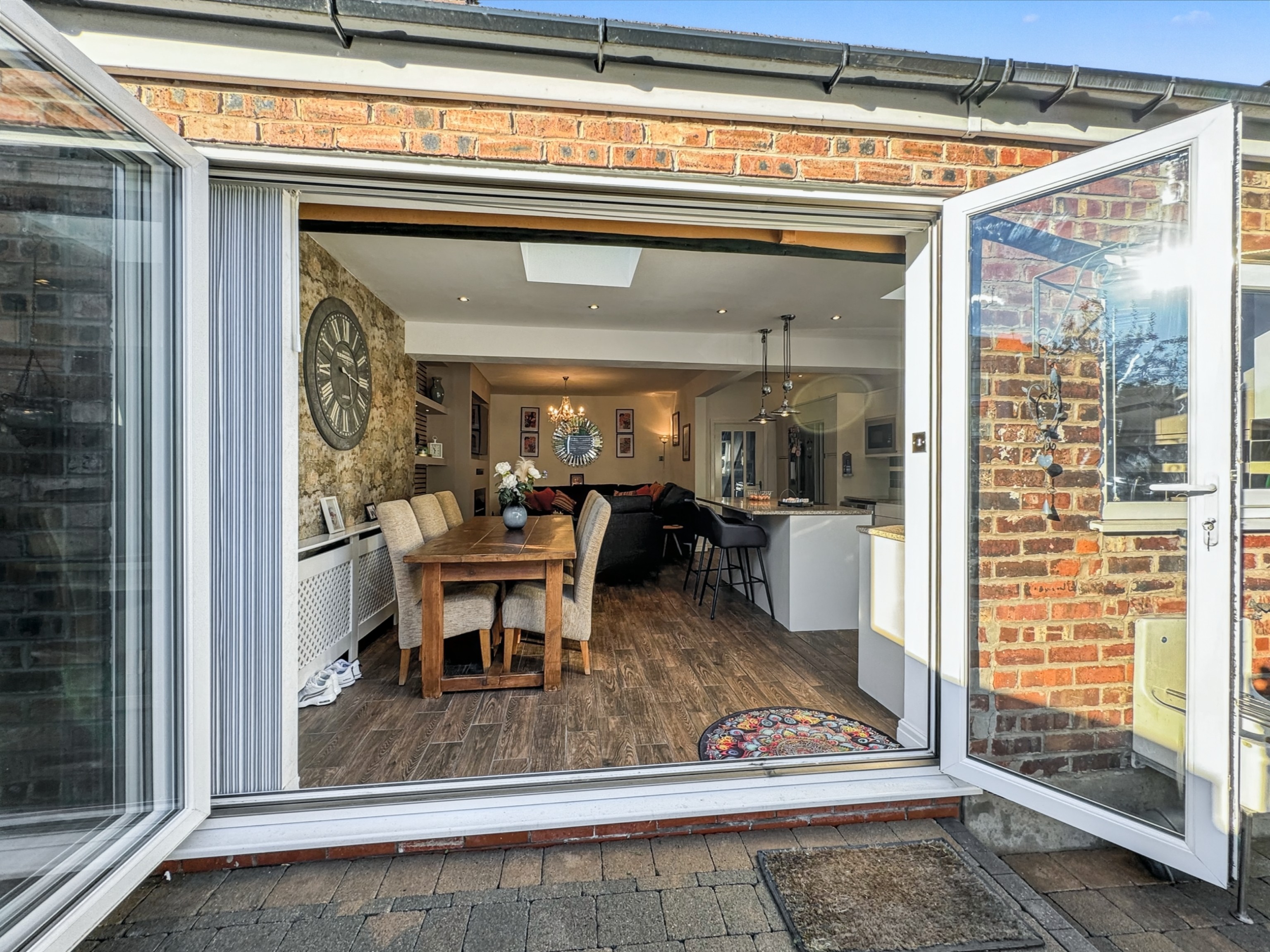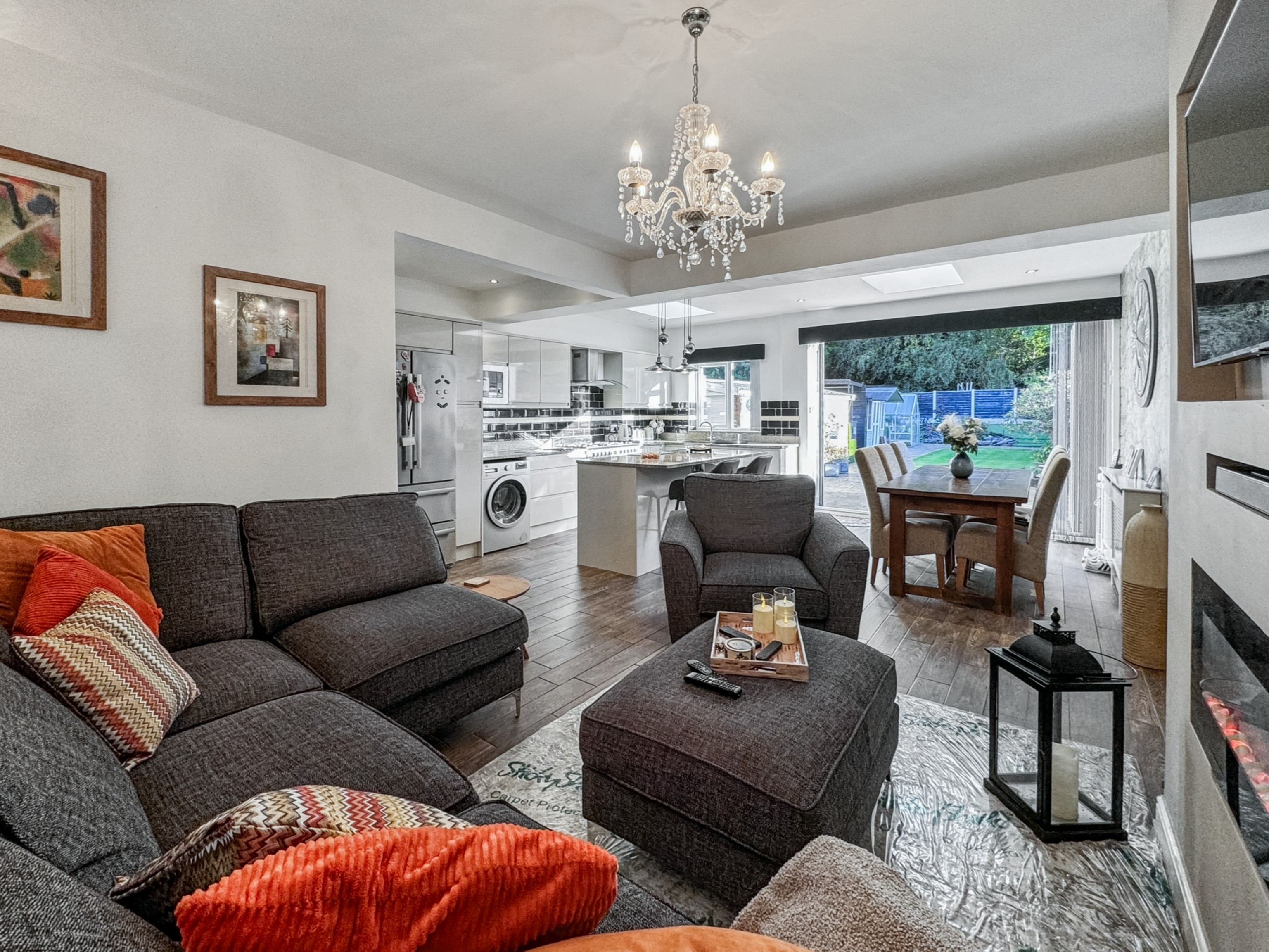 This beautifully presented three-bedroom semi-detached home combines modern living with thoughtful design, making it an excellent choice for families and professionals alike. At its heart lies a contemporary fitted kitchen and dining area, flowing effortlessly into a stylish lounge where bi-fold doors open directly onto the garden, creating a seamless connection between indoor comfort and outdoor living. A further separate lounge offers a versatile space, perfect as a cosy retreat, a playroom, or a home office, while the convenience of a downstairs WC enhances everyday practicality.