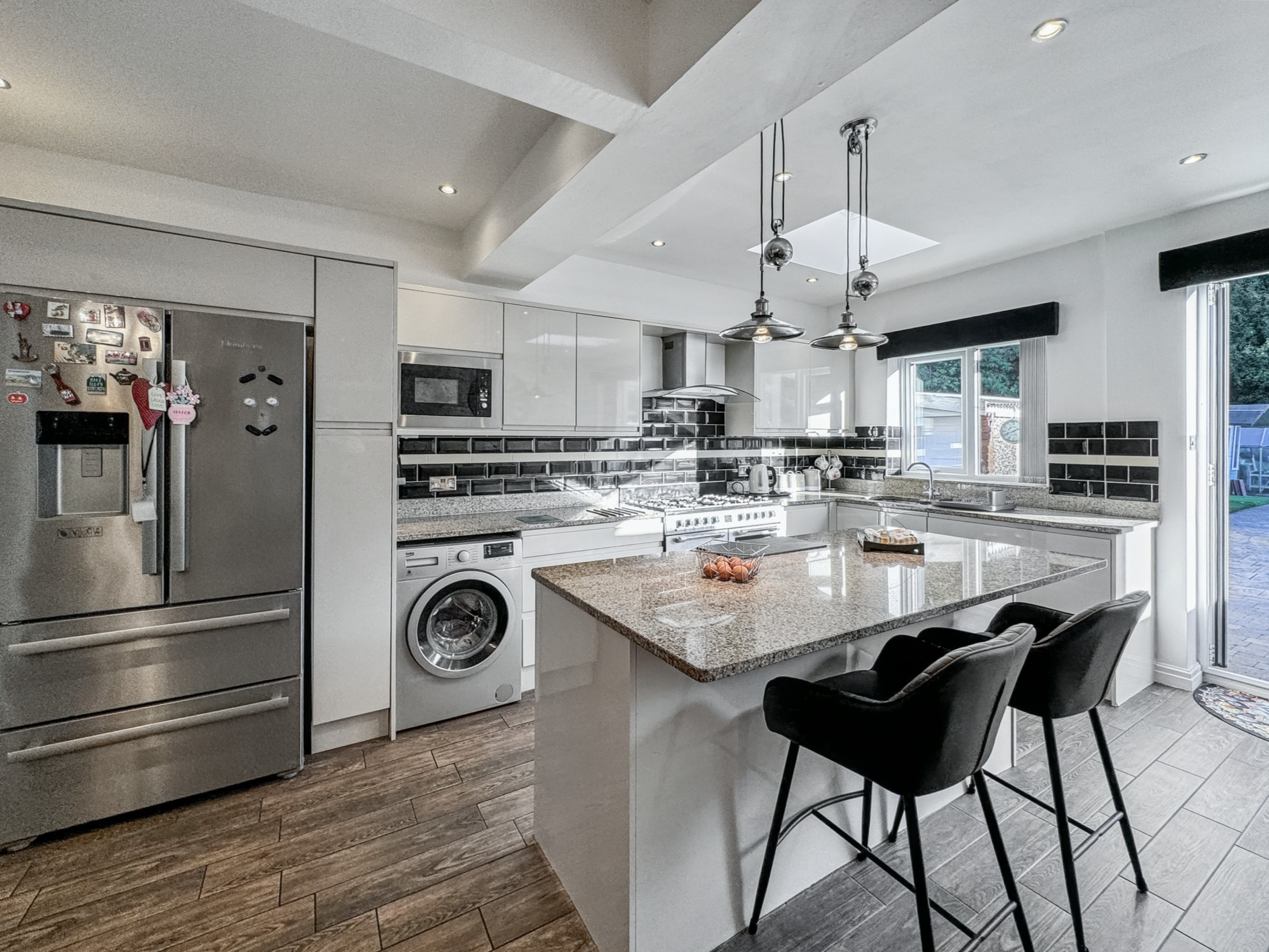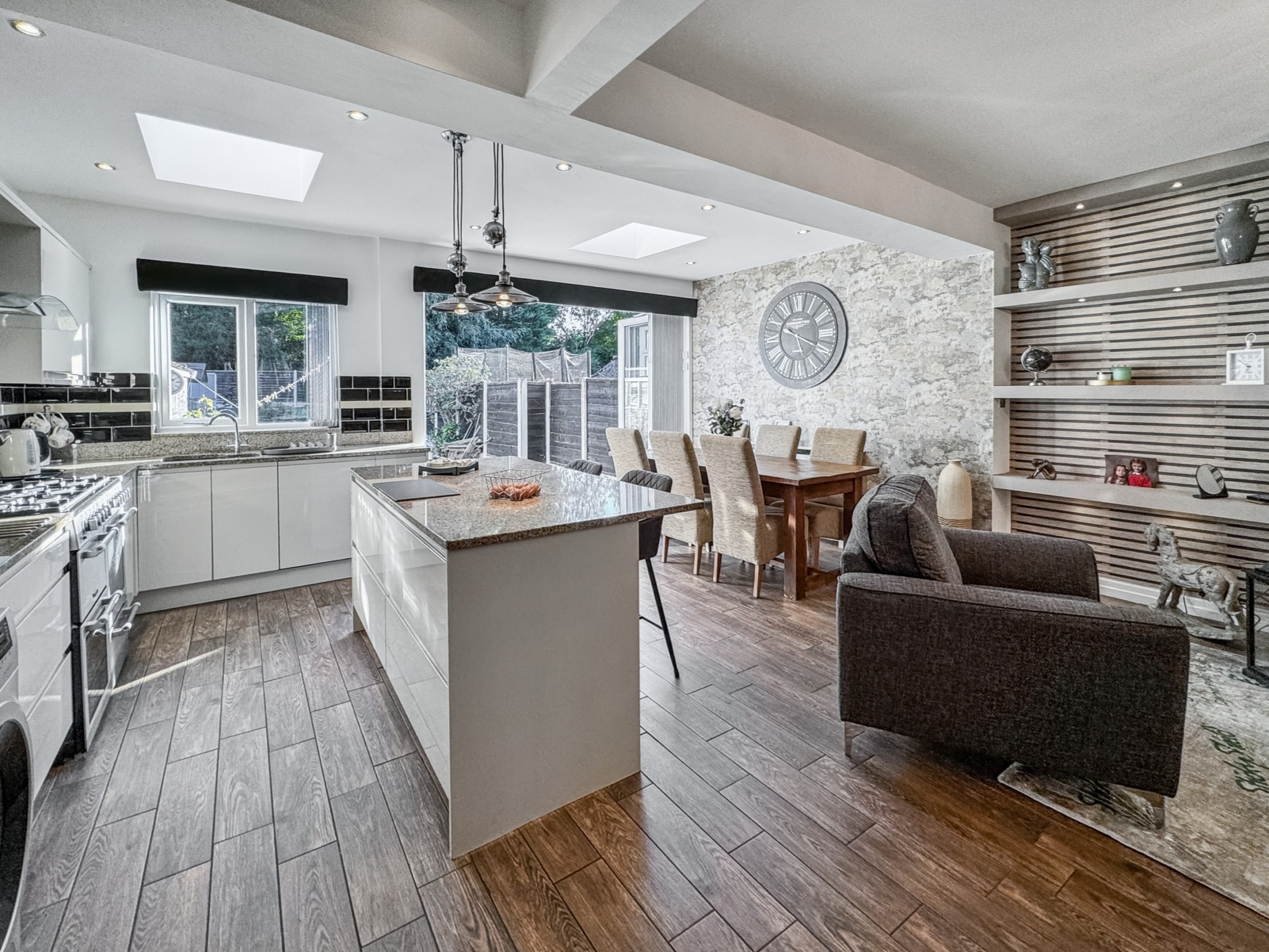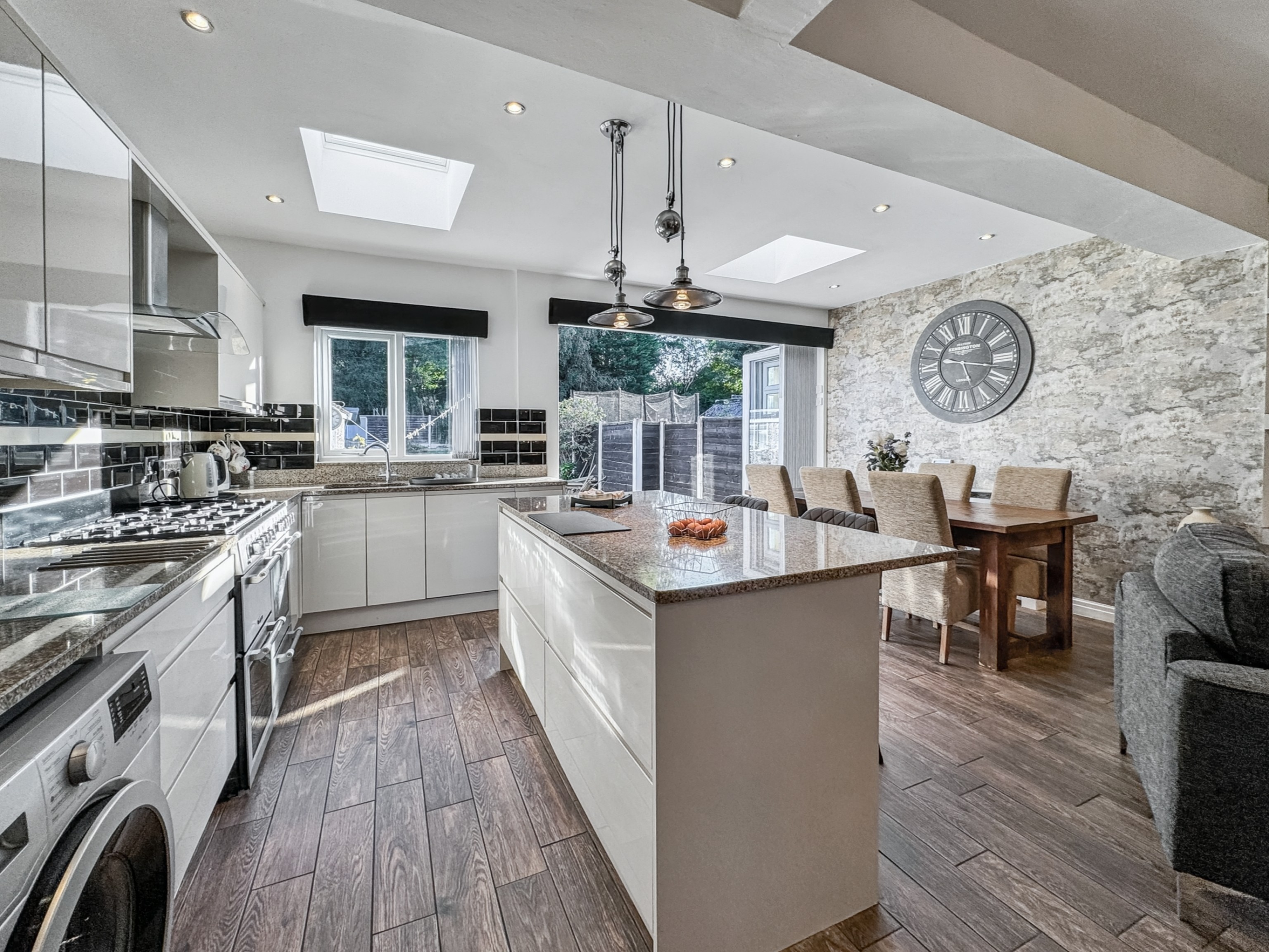 This beautifully presented three-bedroom semi-detached home combines modern living with thoughtful design, making it an excellent choice for families and professionals alike. At its heart lies a contemporary fitted kitchen and dining area, flowing effortlessly into a stylish lounge where bi-fold doors open directly onto the garden, creating a seamless connection between indoor comfort and outdoor living. A further separate lounge offers a versatile space, perfect as a cosy retreat, a playroom, or a home office, while the convenience of a downstairs WC enhances everyday practicality.