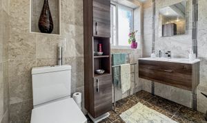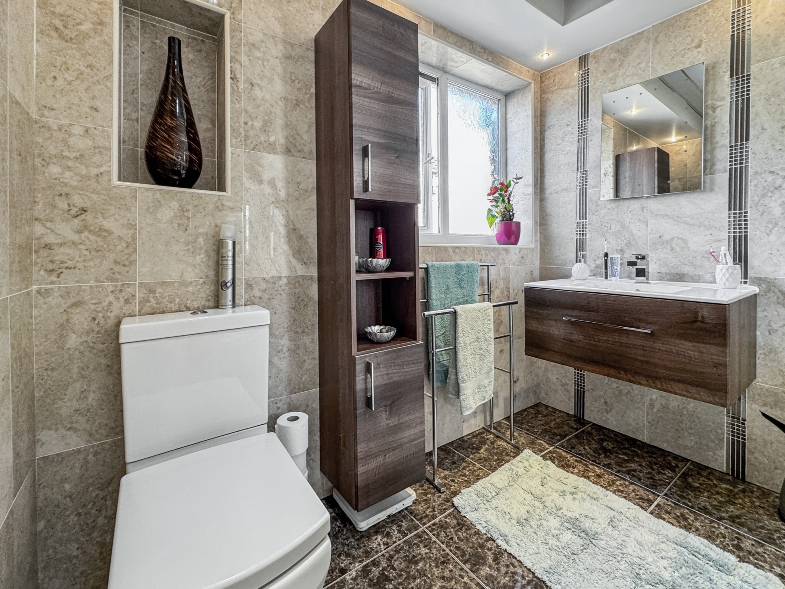 Upstairs, three generously proportioned bedrooms provide ample space for rest and relaxation, complemented by a well-appointed family bathroom. Each room is filled with natural light, enhancing the sense of space and warmth throughout the home.