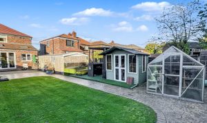 The property also benefits from a large, well-maintained garden, ideal for children, pets, or entertaining guests during the warmer months. A garage and a spacious driveway, accommodating multiple vehicles, add to the home’s practicality and appeal.