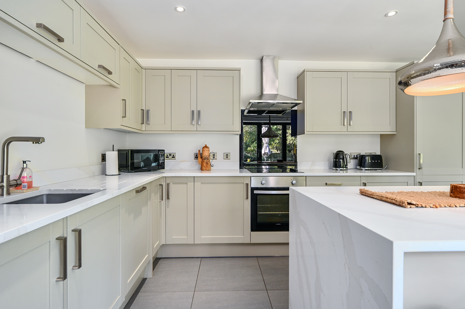 - Stylish open-plan kitchen/living room with Quartz worktops, built-in appliances and bi-folding doors to the garden