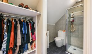 Upstairs, the property offers four generously sized double bedrooms. Two enjoy en-suite facilities, with the principal bedroom further enhanced by a private dressing area. A stylish family bathroom serves the remaining bedrooms.