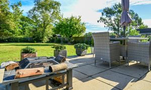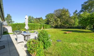 The property enjoys a beautifully matured and generous rear garden, providing an excellent space for both relaxation and entertaining. A spacious patio area directly adjoins the rear of the house, making it an ideal spot for outdoor dining or social gatherings. Beyond the patio, a large, well-maintained lawn offers ample space for children to play or for family activities. To the side of the house, there is a substantial timber shed, providing useful storage for garden equipment or outdoor furniture. The garden benefits from a high degree of privacy, backing onto woodland and creating a peaceful and secluded setting that complements the rural charm of the property.
