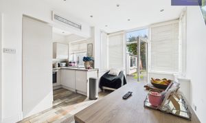 Flowing seamlessly from the lounge is the spacious dining kitchen, a hub of the home where meals can be prepared and enjoyed in comfort. This well-designed space offers ample room for a dining table, making it ideal for both casual family meals and formal dining occasions. The kitchen also features direct access to the garden, providing a seamless indoor-outdoor lifestyle for the enjoyment of residents.