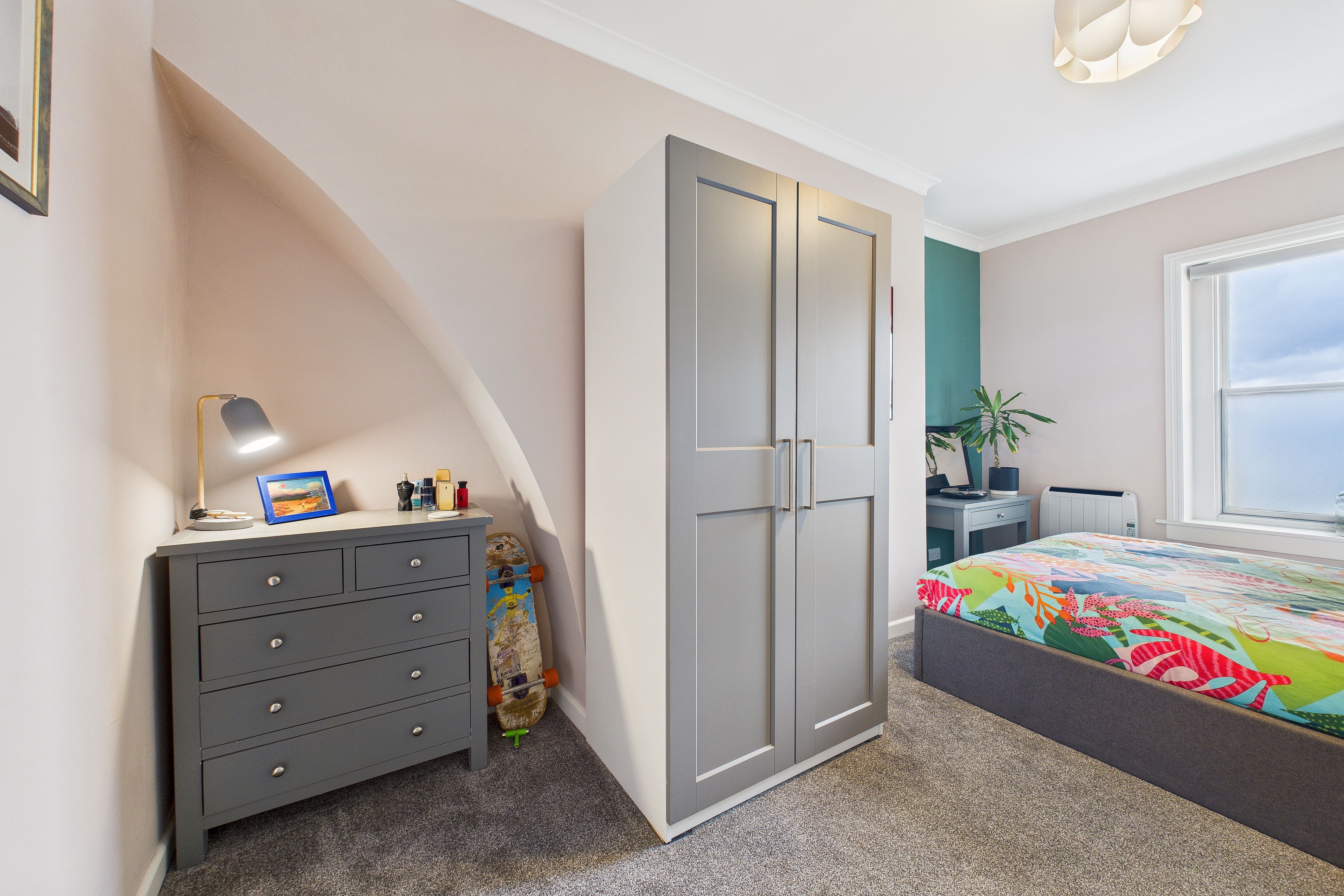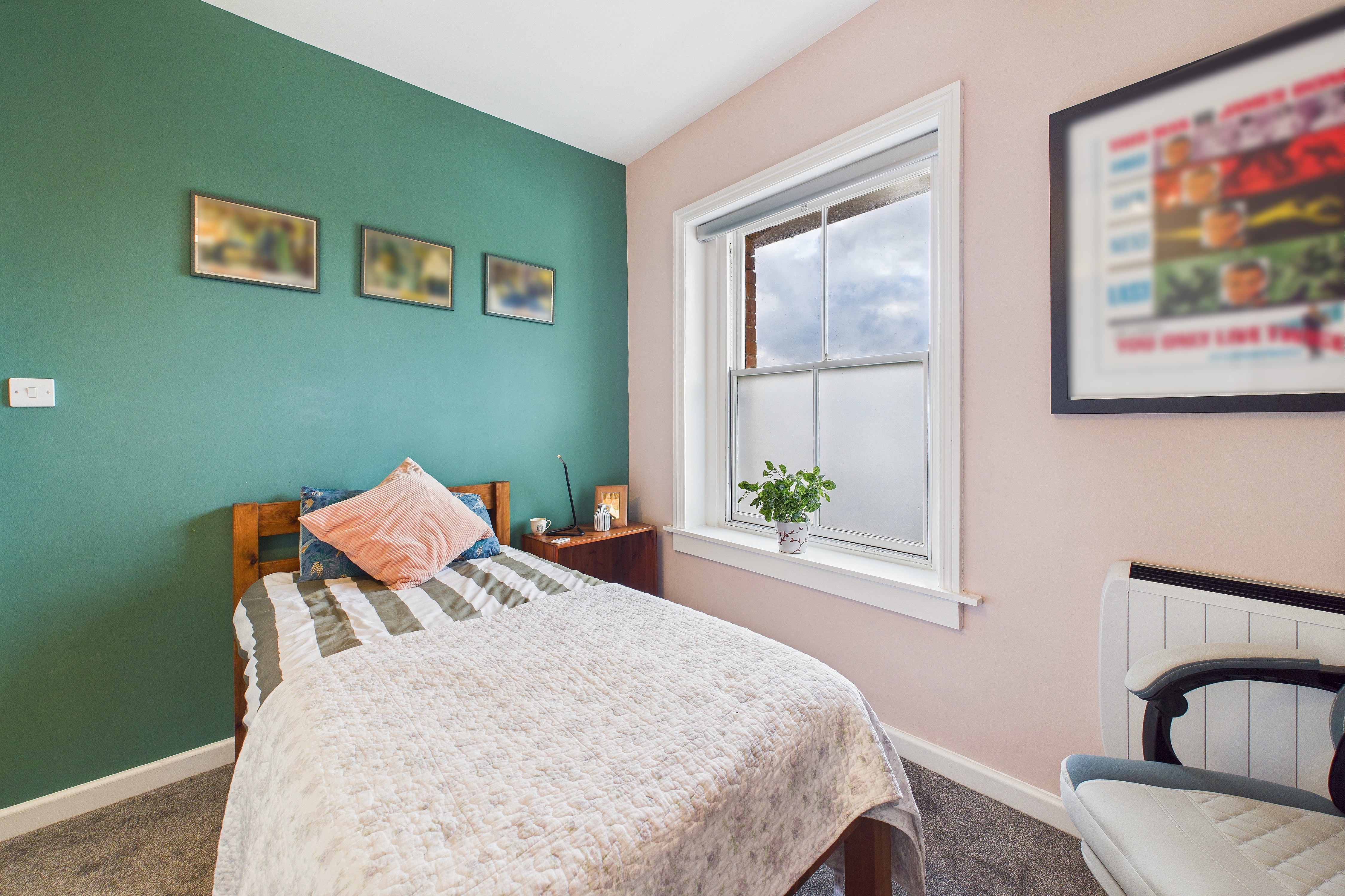 There is no garden but People’s Park is a 30 second walk away and there is an allocated parking space at the front included with the sale, a lovely addition to a town property of this type.
