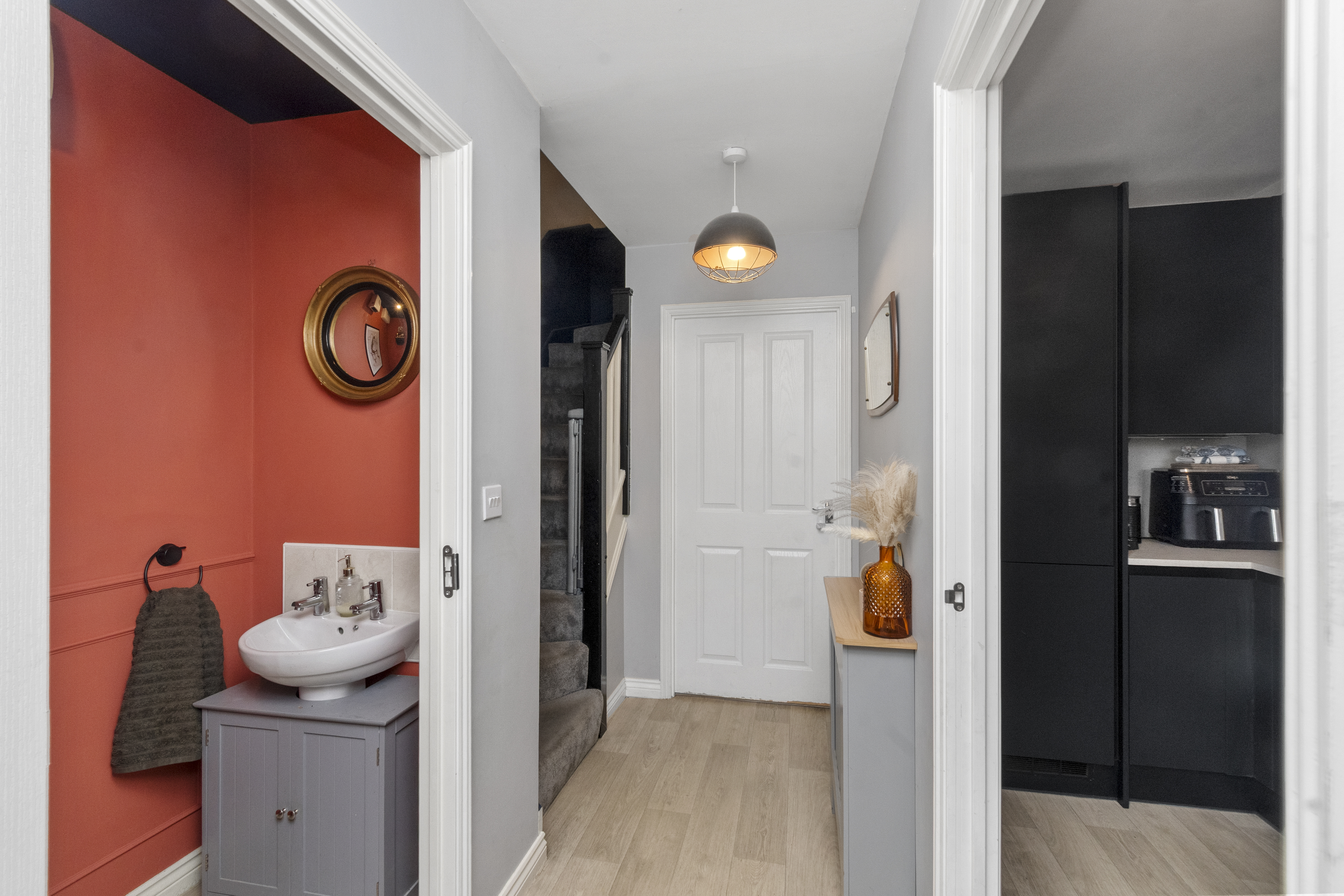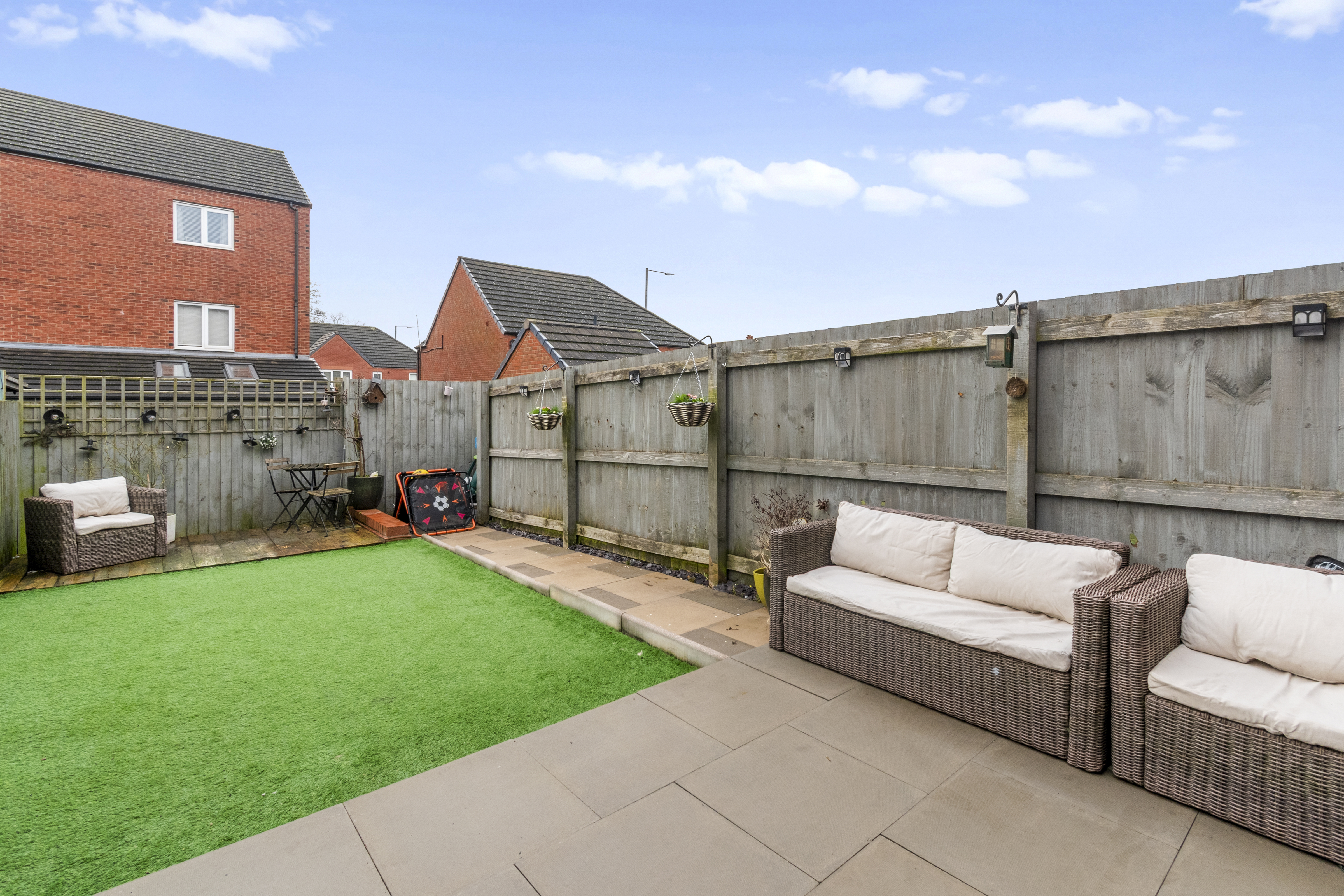 This stunning three-bedroom townhouse is positioned within a highly sought-after development in Eccleston, offering an exceptional opportunity for families and professionals seeking a modern, move-in-ready home in a popular residential setting. The property boasts two allocated parking spaces, conveniently situated within a private residents’ car park, ensuring parking is never an issue. Upon entering, you are greeted by a welcoming hallway that leads to a ground floor WC, providing added convenience for day-to-day living. The modern fitted kitchen, installed in recent years, features a stylish, contemporary finish with quality appliances and ample storage, making it a pleasure for any home chef. The open-plan lounge and dining area creates a fantastic social and living space, perfect for entertaining or relaxing with family, and benefits from patio doors that offer direct access to the rear garden and the private car park beyond. Upstairs, the first floor comprises two well-proportioned bedrooms, both tastefully decorated to a high standard, alongside a sleek, modern family bathroom fitted with quality fixtures and fittings. The impressive top-floor master bedroom provides a peaceful retreat, featuring a generous en-suite bathroom (ideal for privacy and comfort) and plenty of space for additional furnishings or a dressing area. Throughout the property, the décor is tasteful and contemporary, allowing any buyer to move straight in without the need for further work. The layout has been thoughtfully designed to maximise space and natural light, creating a bright and welcoming atmosphere in every room. Located within a well-regarded development, the property is ideally placed for access to local amenities, reputable schools, and excellent transport links, making it an attractive choice for those who value both convenience and community. With its combination of modern finishes, practical features, and a highly desirable location, this townhouse represents a rare opportunity to secure a quality home in Eccleston. Early viewing is highly recommended to fully appreciate the space, style, and comfort this wonderful property has to offer.