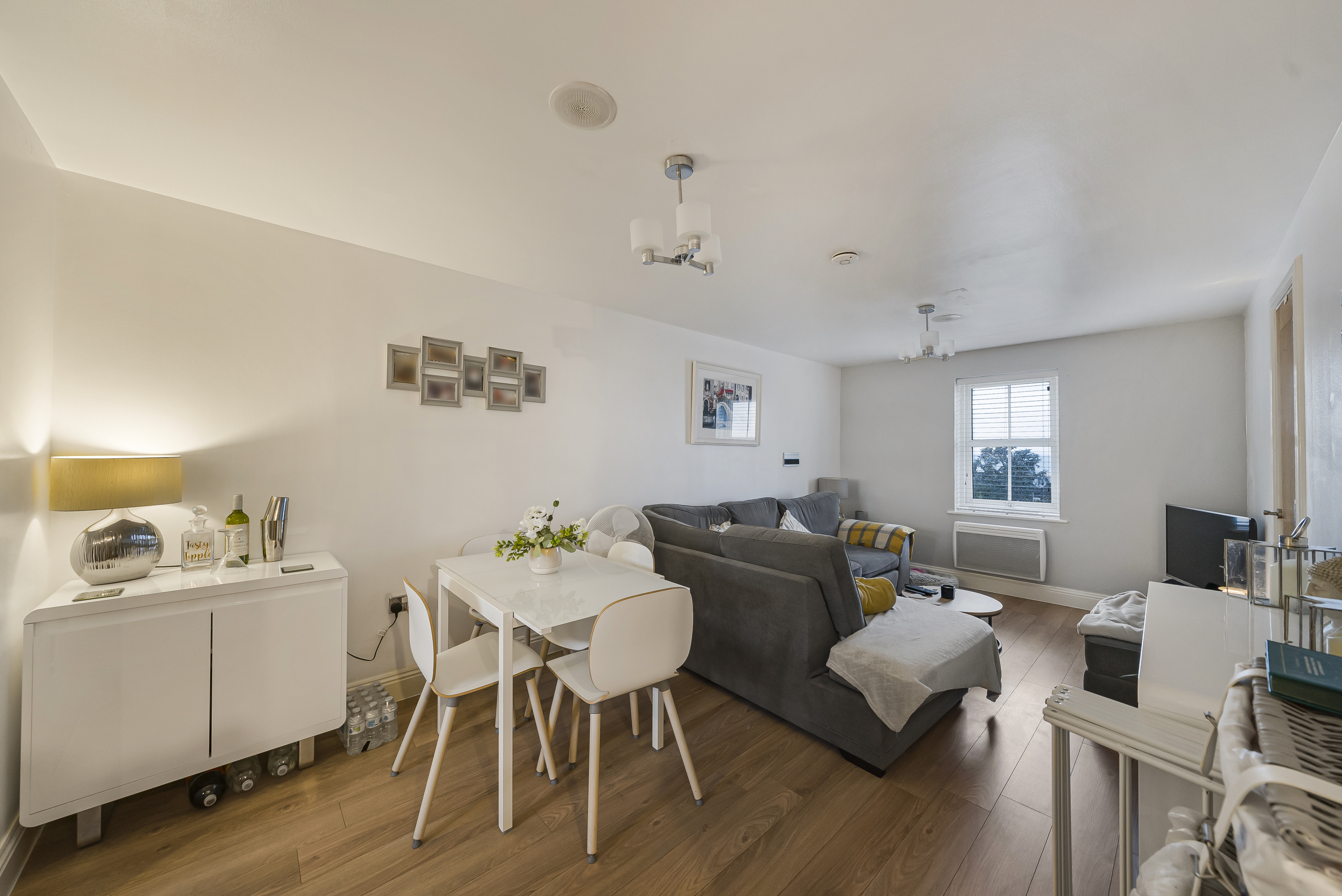 Featuring built-in storage and wood-effect laminate flooring.