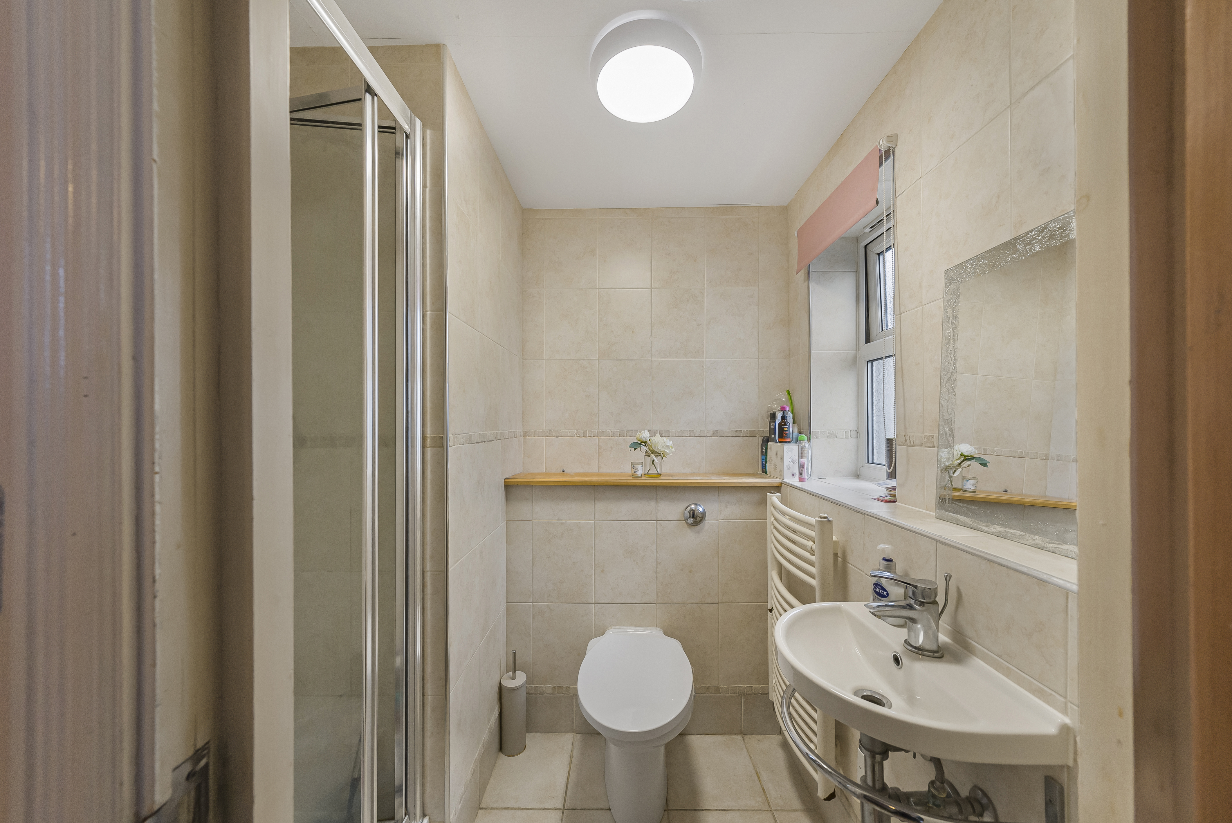En-Suite Shower Room: A modern three-piece suite with a tiled shower cubicle.