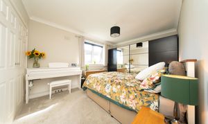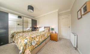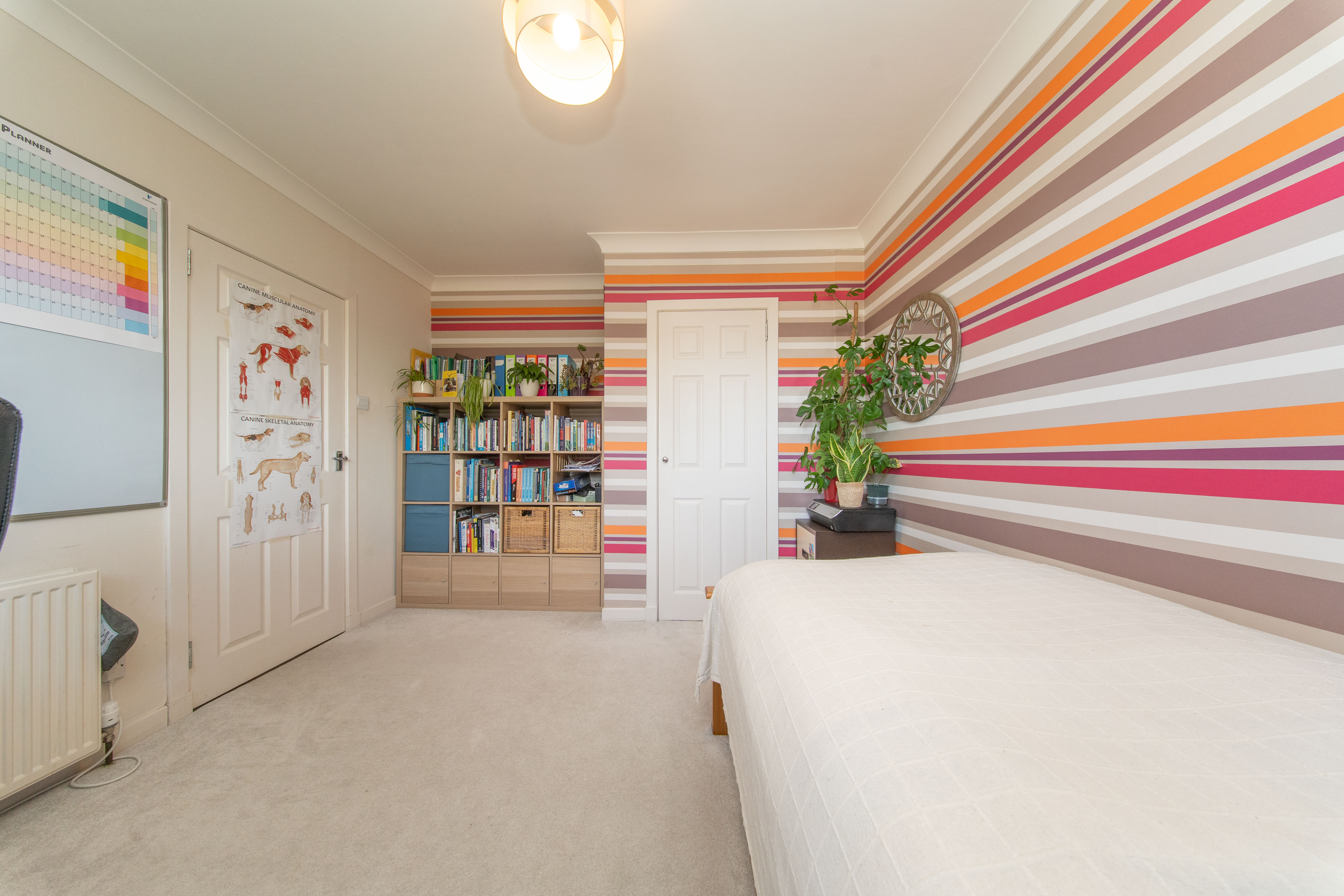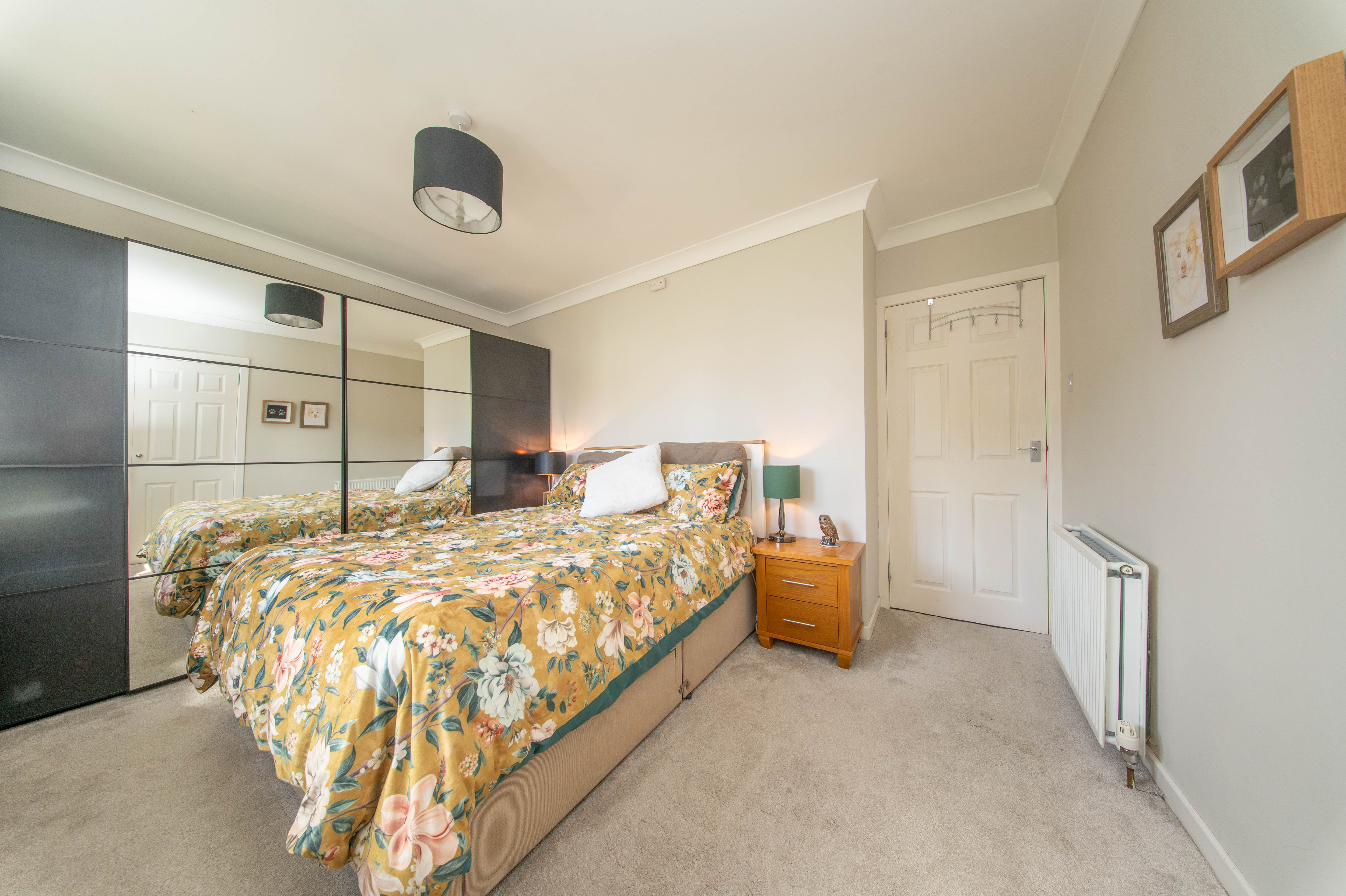 4.105m x 3.068m (13’06” x 10’00”) up to the wardrobes. This stylish room has a sumptuous carpet to the floor and neutrally painted walls. Windows to the front of the property allow in lots of natural light and a ceiling light complements this. The modern wardrobes provide lots of storage space and will be included in the sale. There is also a double fronted integrated cupboard for further storage. A radiator and power points are all included