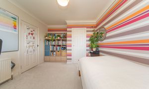 3.167m x 3.138m (10’05” x 10’05”) There is great space in this room which has been decorated with one feature wall, neutral tones to the remaining walls and a carpet to the floor. Rear facing windows allow in lots of natural light and is complemented by a ceiling light. A radiator and power points are also provided