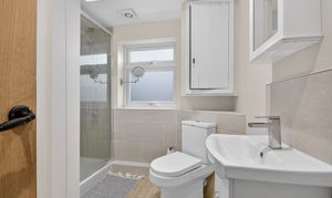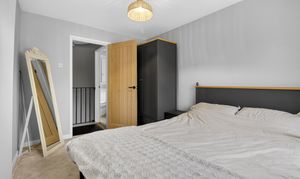 To the first floor, the property offers a well-proportioned double bedroom complete with fitted wardrobe storage, alongside a well-appointed bathroom fitted with a corner bath and shower over.