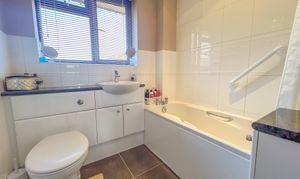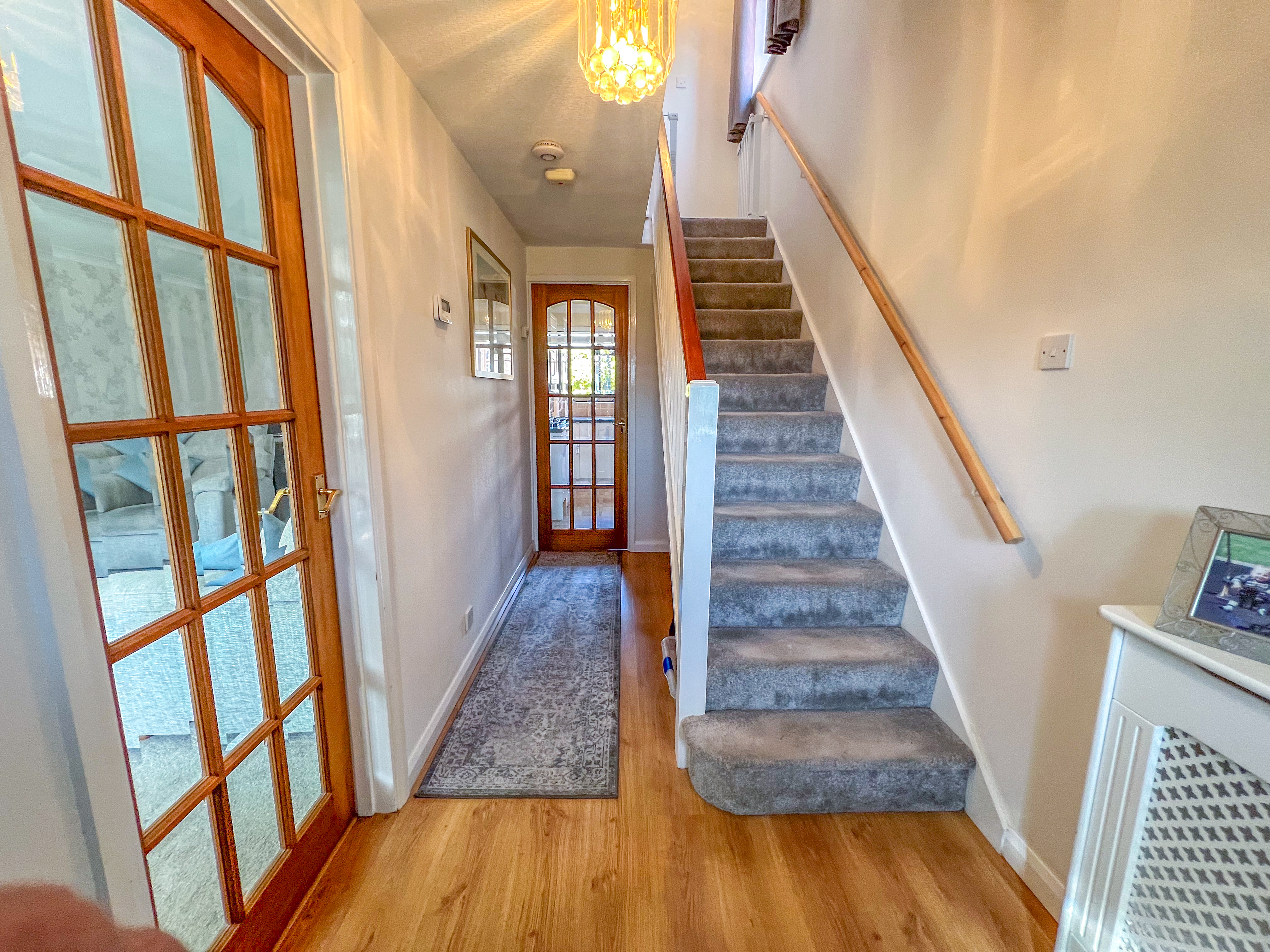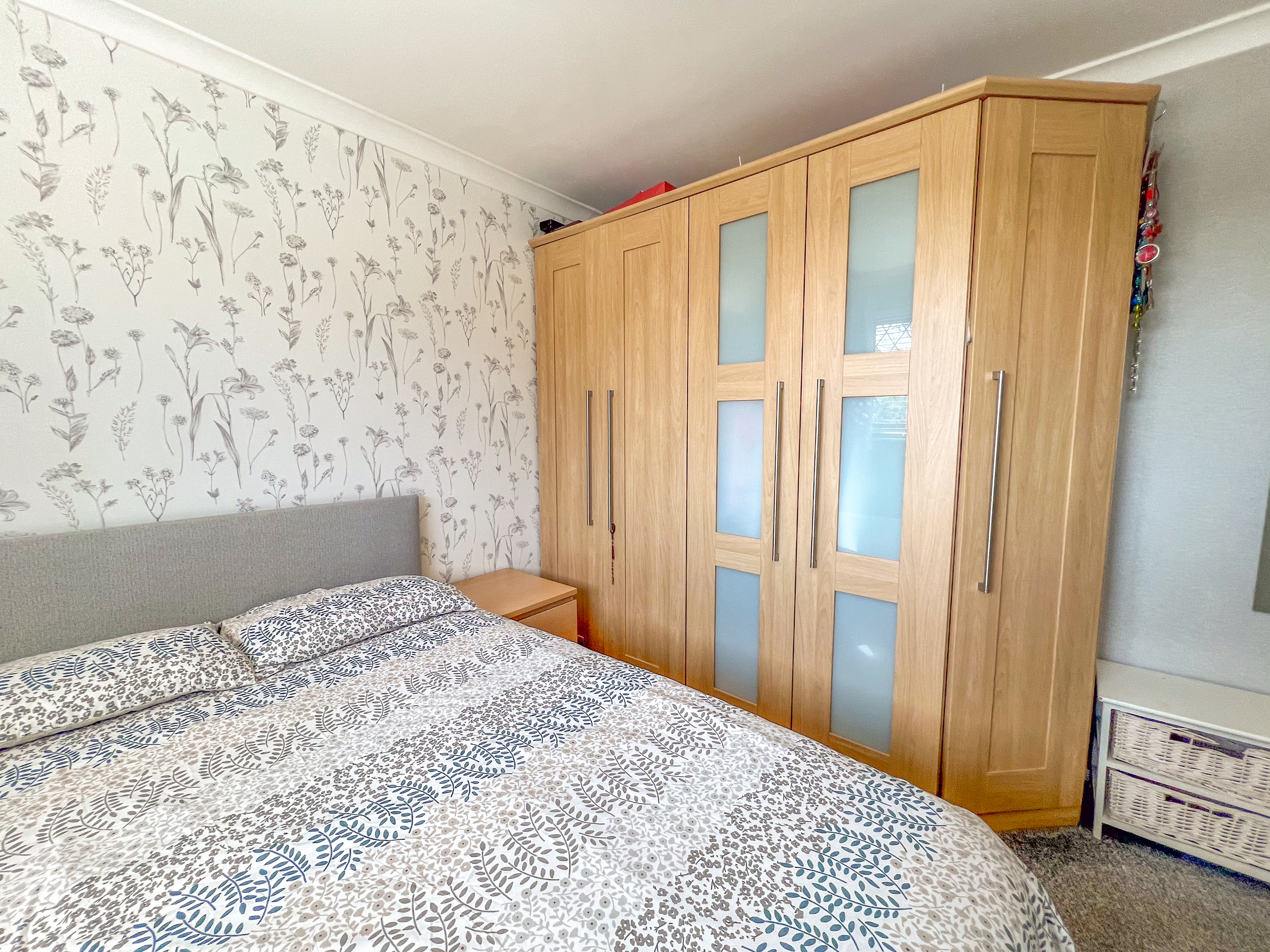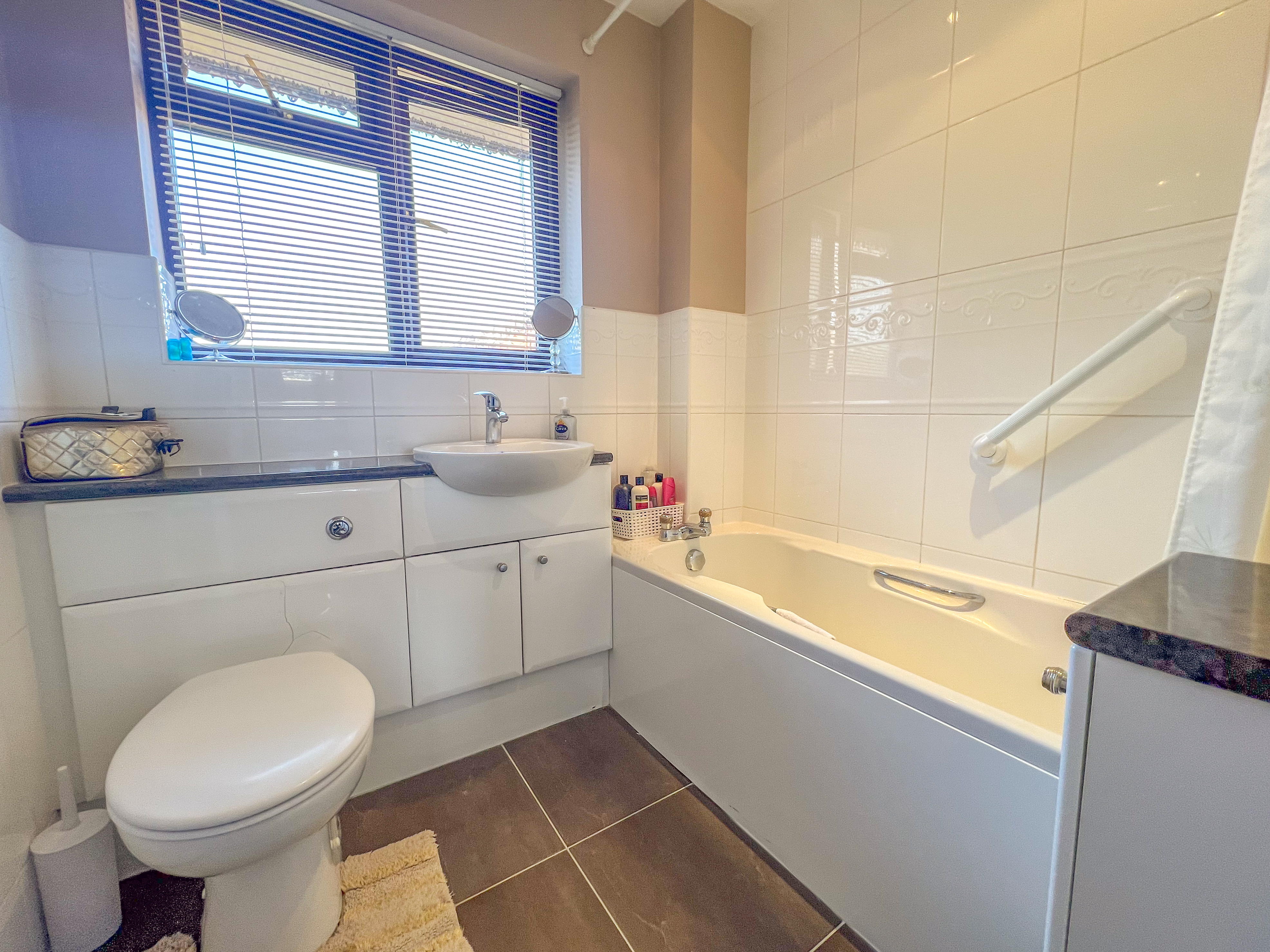 Upstairs, the home continues to impress with three well proportioned bedrooms. The two double rooms both feature built-in wardrobes, offering ample storage without compromising on floor space. The family bathroom is fitted with a clean white suite, providing a fresh and functional finish to the first floor.