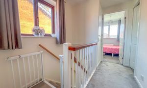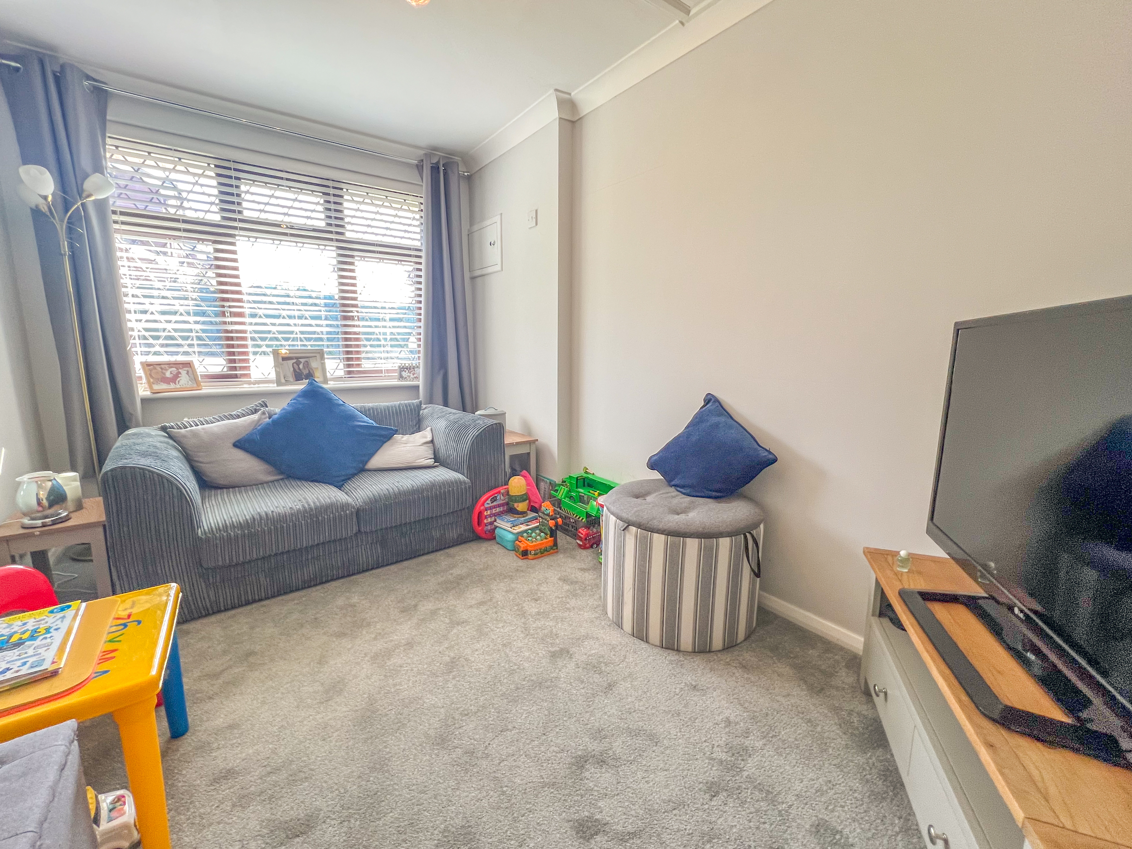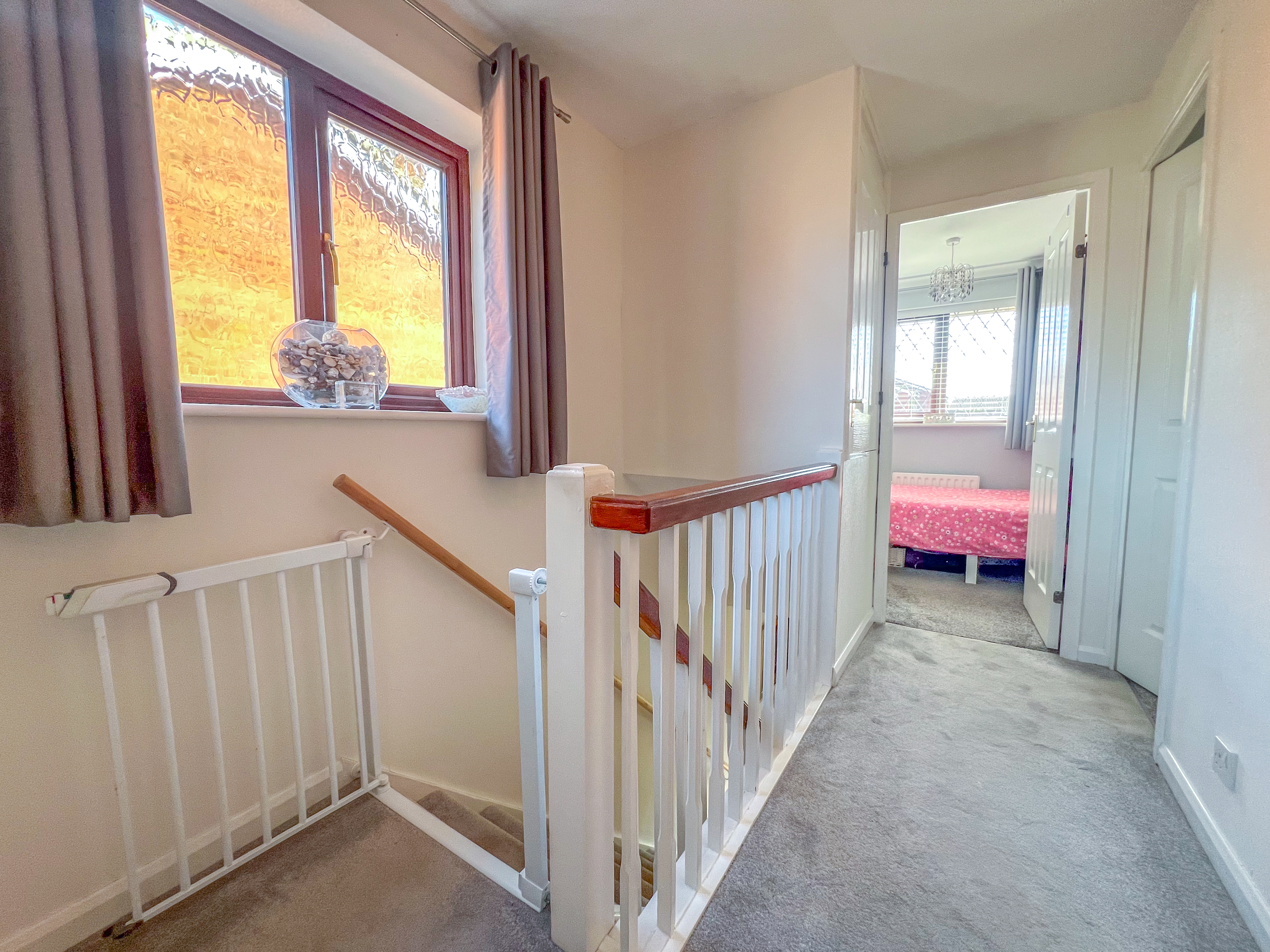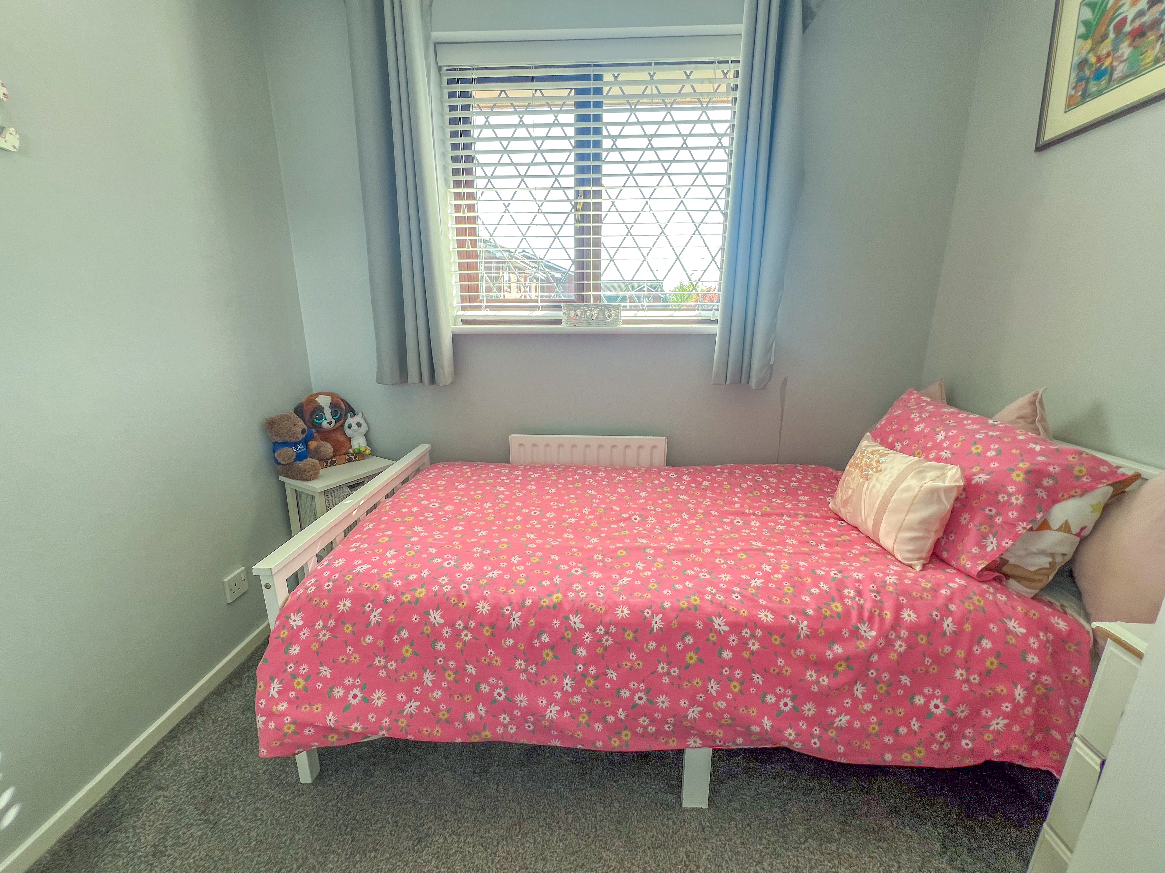 Upstairs, the home continues to impress with three well proportioned bedrooms. The two double rooms both feature built-in wardrobes, offering ample storage without compromising on floor space. The family bathroom is fitted with a clean white suite, providing a fresh and functional finish to the first floor.