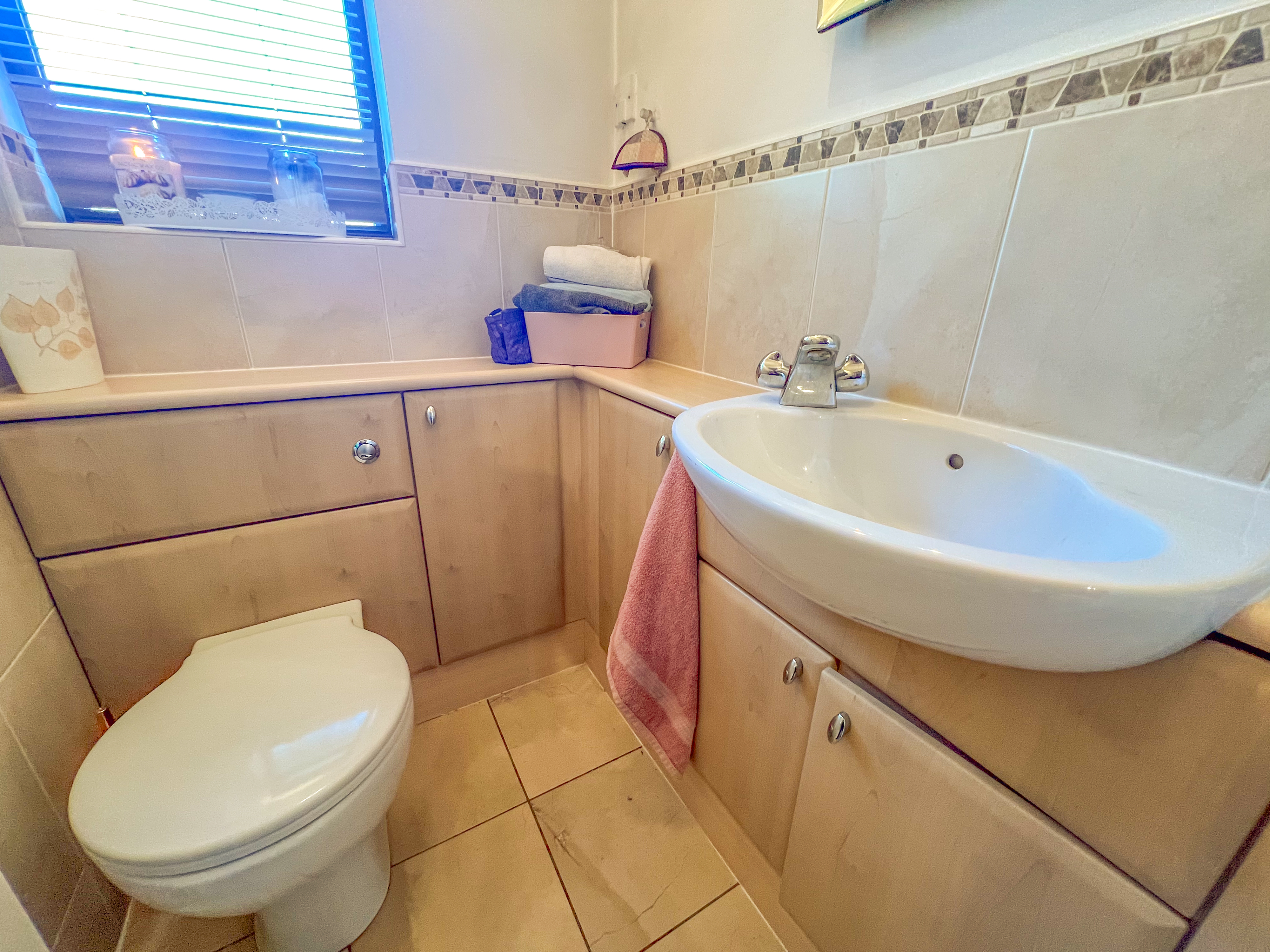 The garage has been cleverly converted to enhance the ground floor layout, now offering a versatile room that could serve as a fourth bedroom, home office, or playroom. This conversion has also allowed for the inclusion of a practical utility area, helping to keep the main kitchen space clear and organised. A guest cloakroom completes the ground floor accommodation.