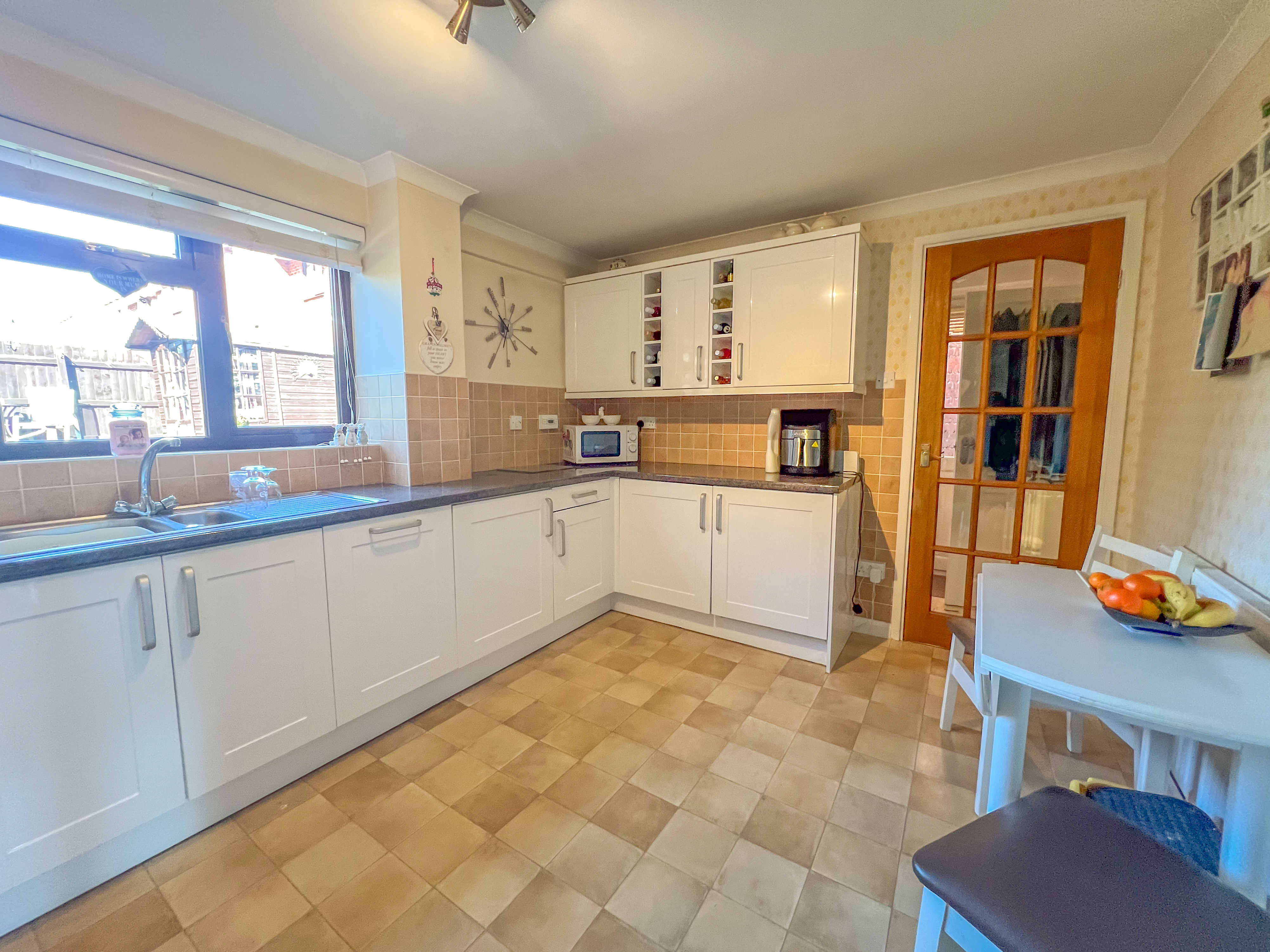At the heart of the home lies a modern kitchen, thoughtfully designed with both style and functionality in mind. This is a space made for cooking and gathering, with contemporary units and worktops offering plenty of room to prepare meals and enjoy culinary creativity.