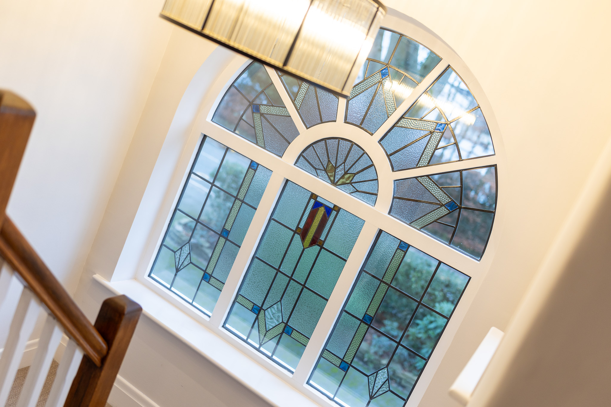 There’s plentiful kerb appeal, and period charm immediately apparent. Successive residents have respected the age and heritage of the house, which is a truly lovely home. There is a smart and generous hardstanding driveway leading to an attractive, late Arts and Crafts, open storm porch with tiled floor and a stunning, hardwood and stained-glass front door. Above this is an impressive arched, stained-glass window. This frontage offers a warm welcome as well as parking for several cars and a neat lawned area. This beautiful, and cherished, home exemplifies the character beloved in early twentieth-century homes. To the rear elevation is a generous private garden with several areas of seating space and lots of sunny spots. Not especially high maintenance, the garden is nonetheless attractive and welcoming and is not overlooked at all.