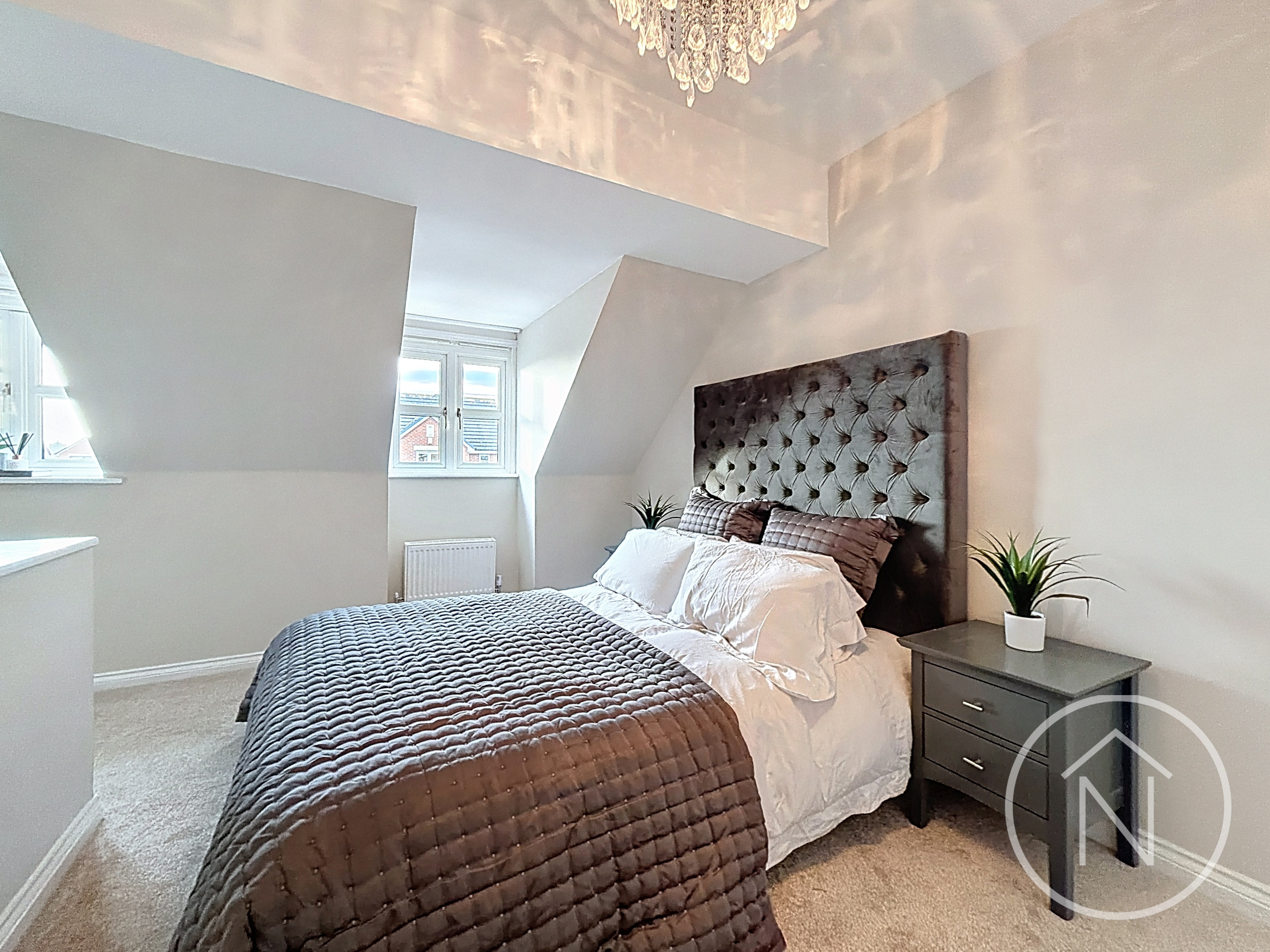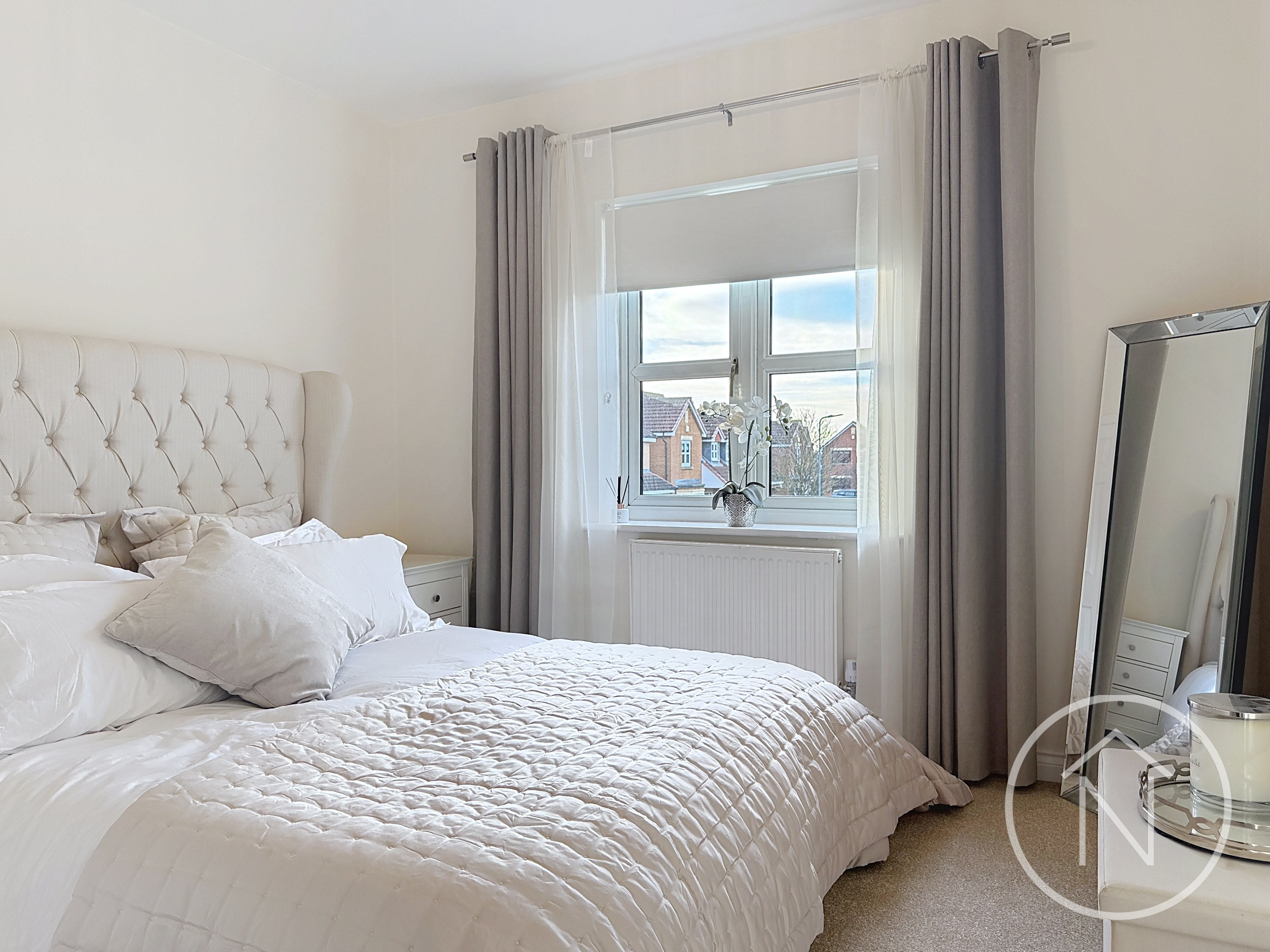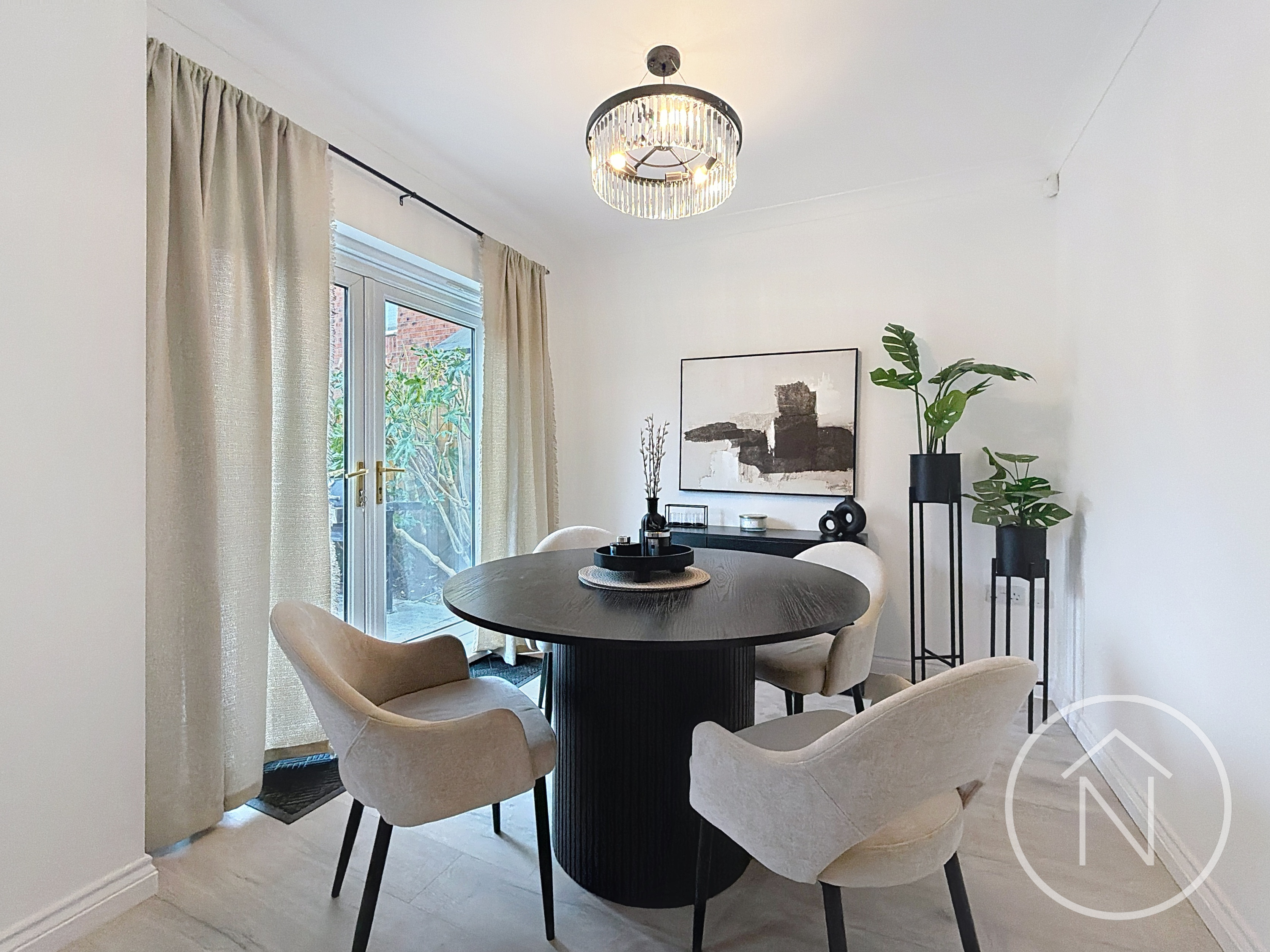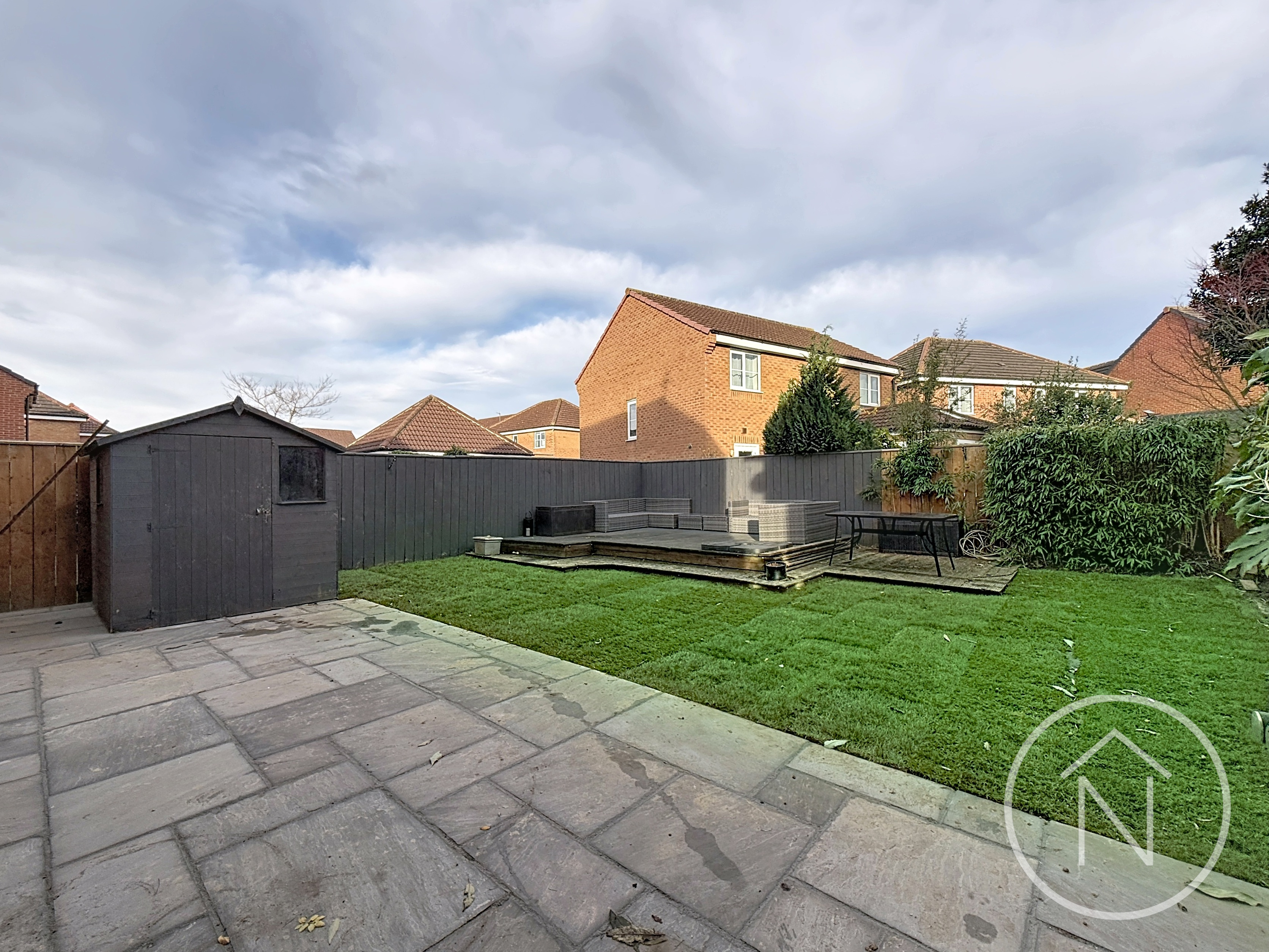 Further enhancing this property’s appeal is the generous outdoor space. The well-maintained rear garden features a lush lawn, a paved patio for alfresco dining, a decked seating area for relaxation, and a practical storage shed. The front garden provides an attractive approach, while spacious off-road parking ensure convenience for multiple vehicles. French doors from the kitchen/dinerprovide access to the garden, making this home perfect for entertaining family and friends. Modern lighting fixtures, a minimalist design palette, and thoughtful storage solutions throughout add to the property’s turnkey appeal. This outstanding detached house successfully combines contemporary design, comfort, and practicality, offering an ideal setting for modern family living. Early viewing is highly recommended to fully appreciate the quality and space on offer.