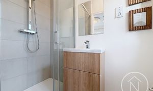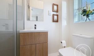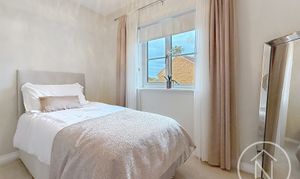 Upstairs, four bedrooms are thoughtfully designed with modern finishes, plush carpeting, and elegant lighting fixtures. The principal bedroom benefits from built-in wardrobes, and an en-suite bathroom featuring contemporary fixtures. Additional bathrooms throughout the home showcase minimalist designs, stylish vanity units, and ample natural light, offering comfort and sophistication for every member of the household. Versatile spaces include a well-appointed home office with built-in storage and a bright, airy atmosphere - ideal for remote work or study.