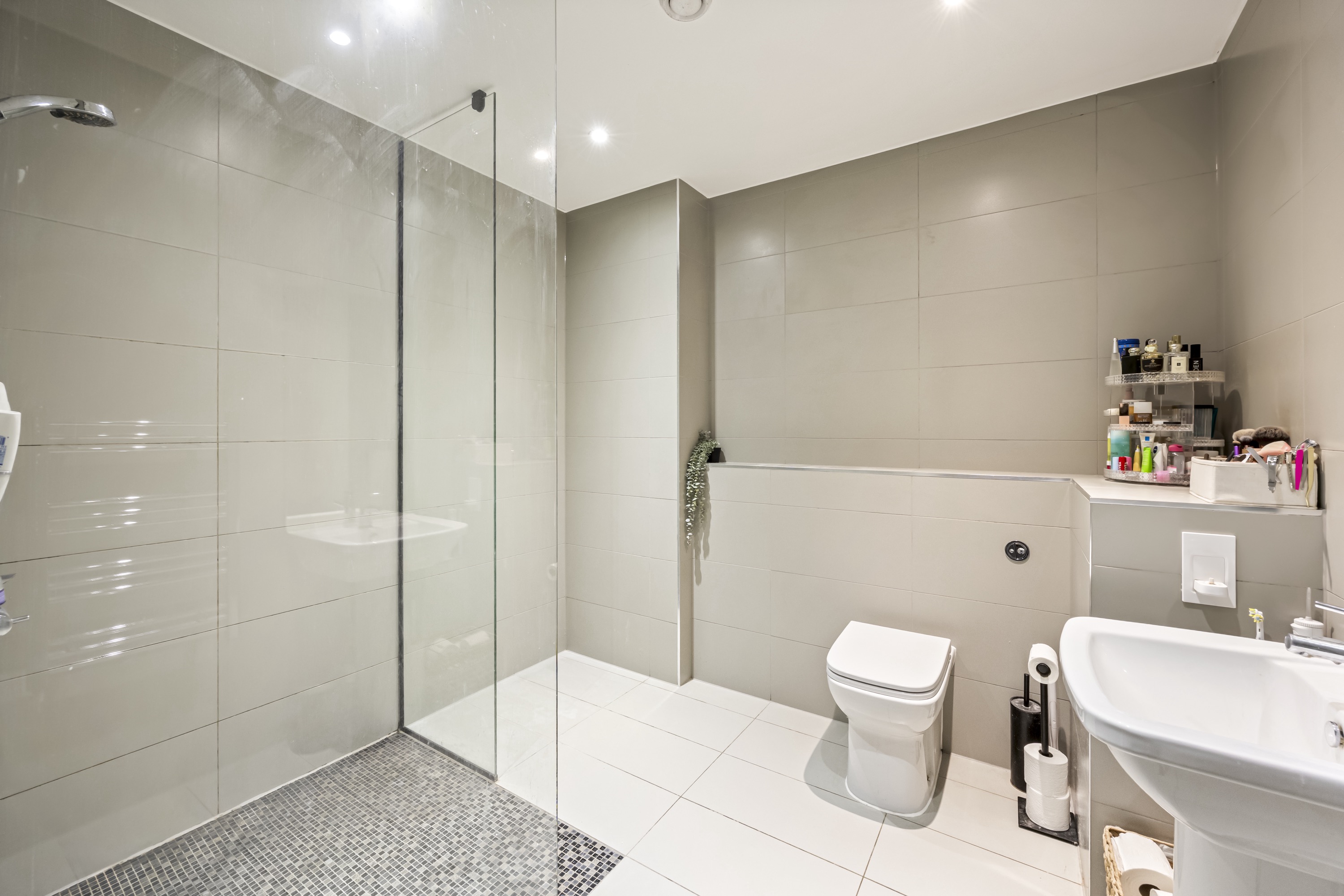 The two double bedrooms overlook the South-facing front aspect whilst serviced by a sleek full-tiled shower room featuring a walk-in shower, heated towel rail, vanity mirror and all essentials.