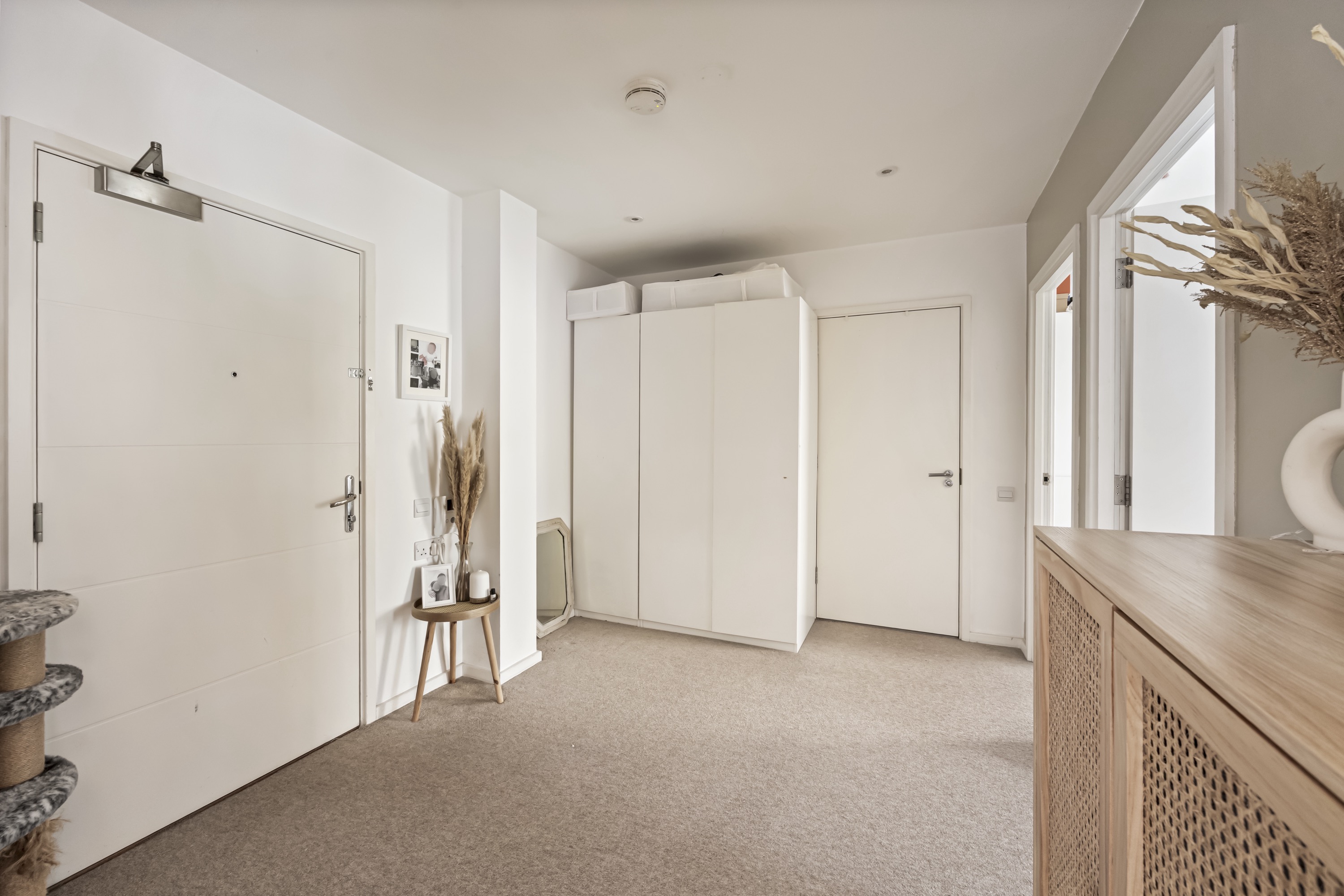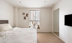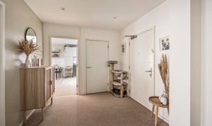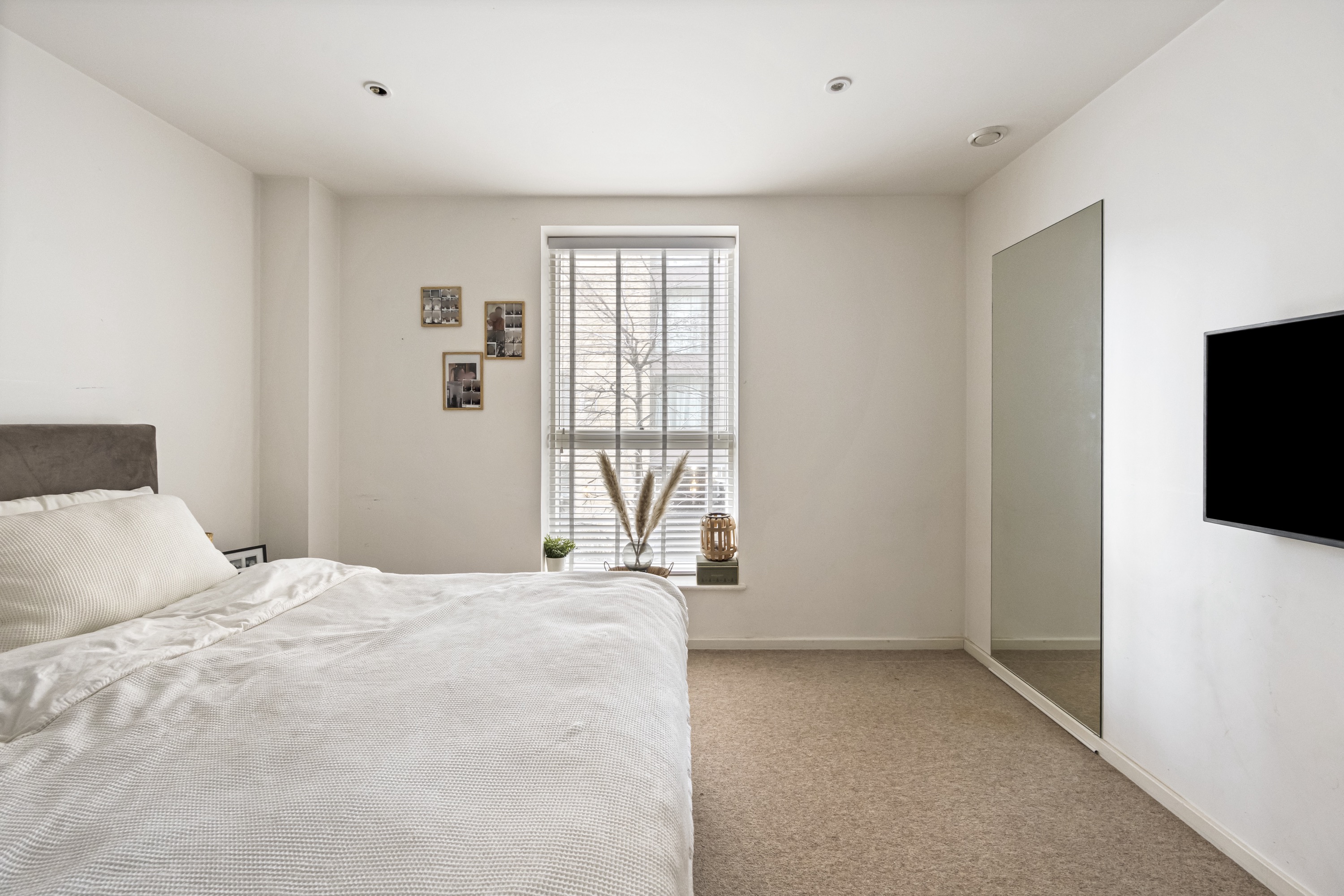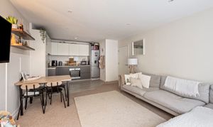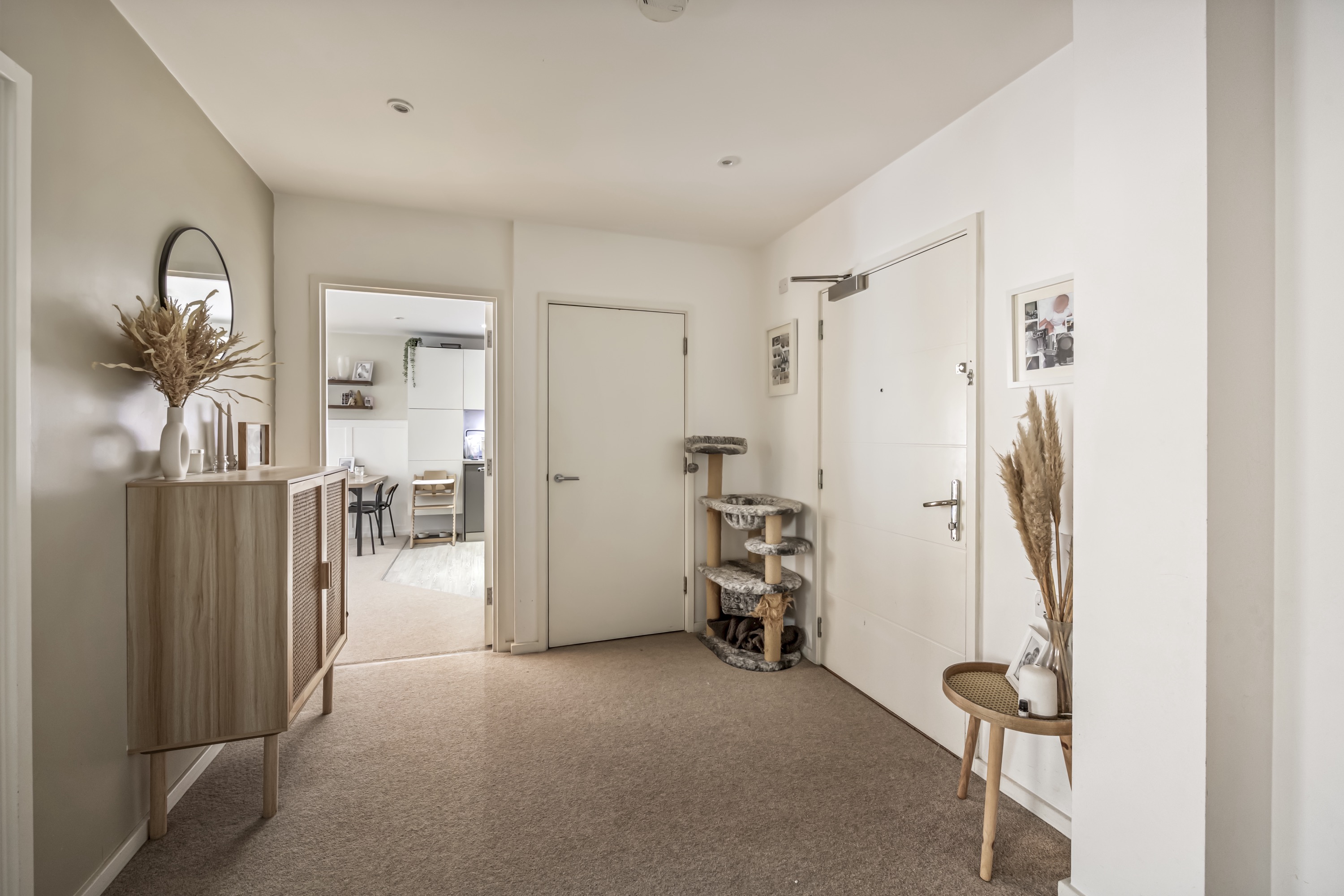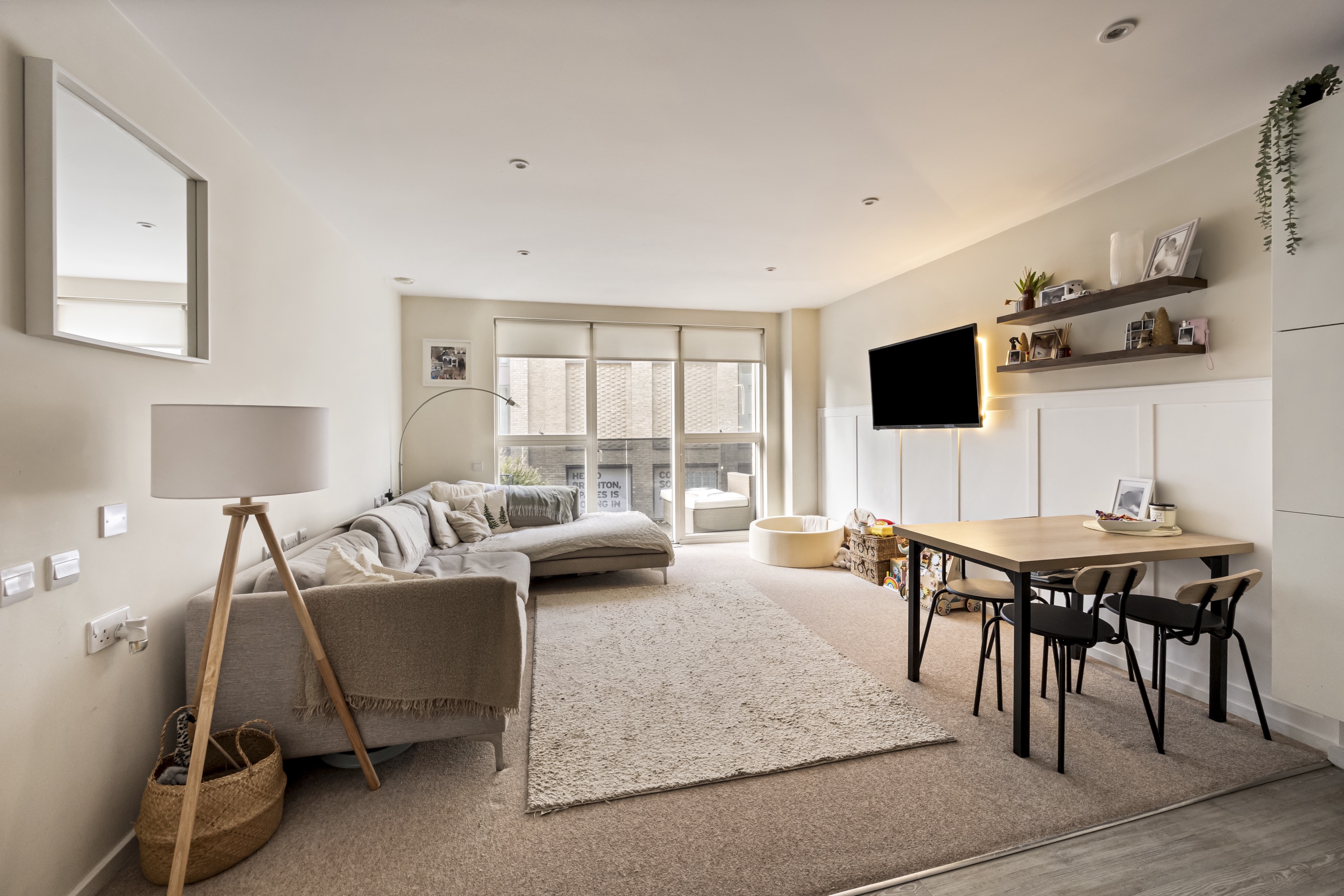 Upon entry, residents are greeted by the spacious hallway providing access to all rooms as well as a handy storage cupboard for shoes and coats. Heading right, the open-plan kitchen / living area expands into a bright and sociable space with near full width / height windows allowing natural light to flow through - the South-facing balcony follows with space for a table and chairs. The kitchen itself is incredibly well-equipped with a variety of wall and base units, plenty of countertop surface and a range of integrated appliances.